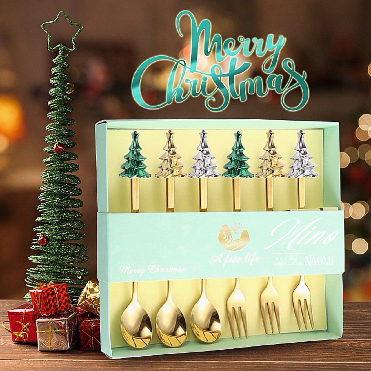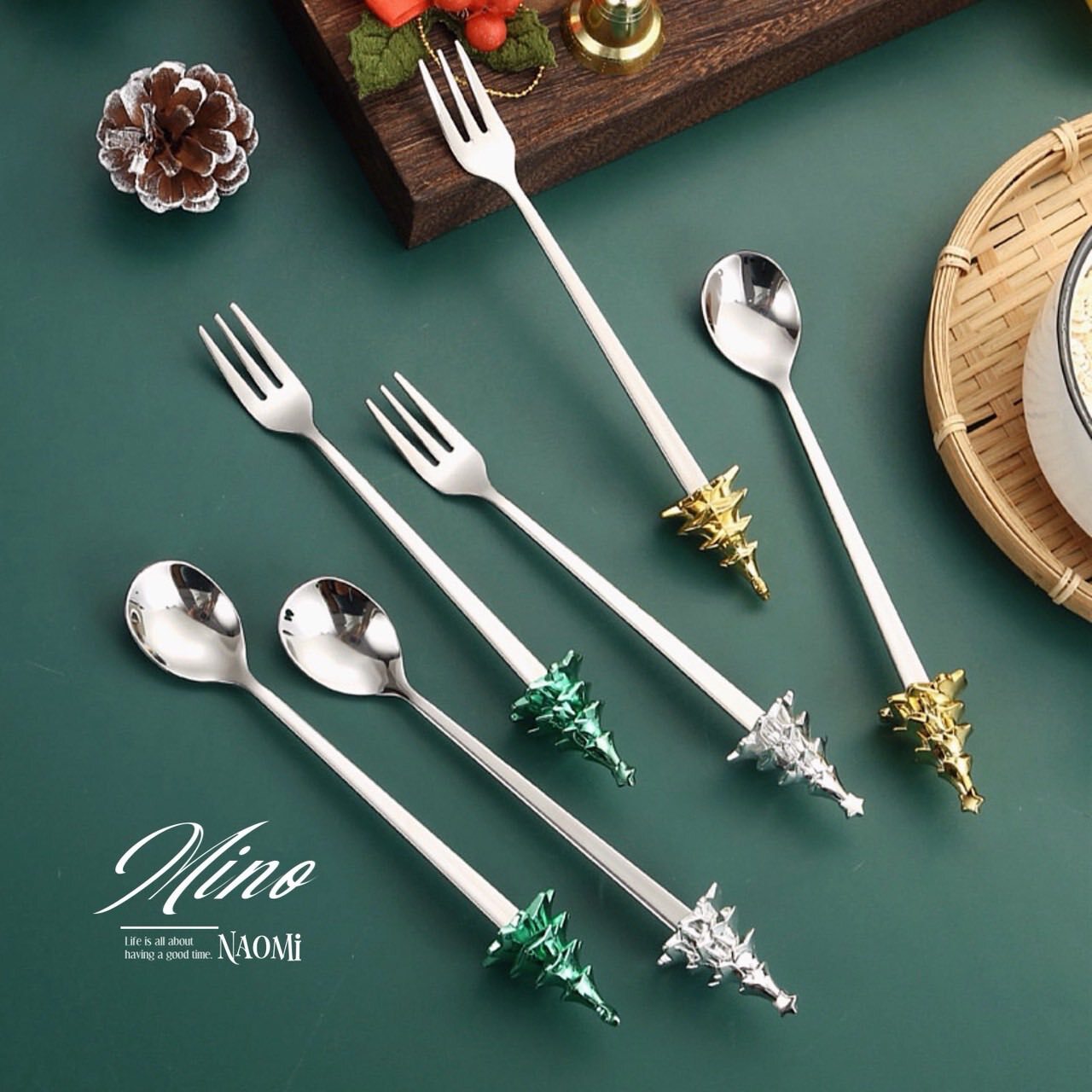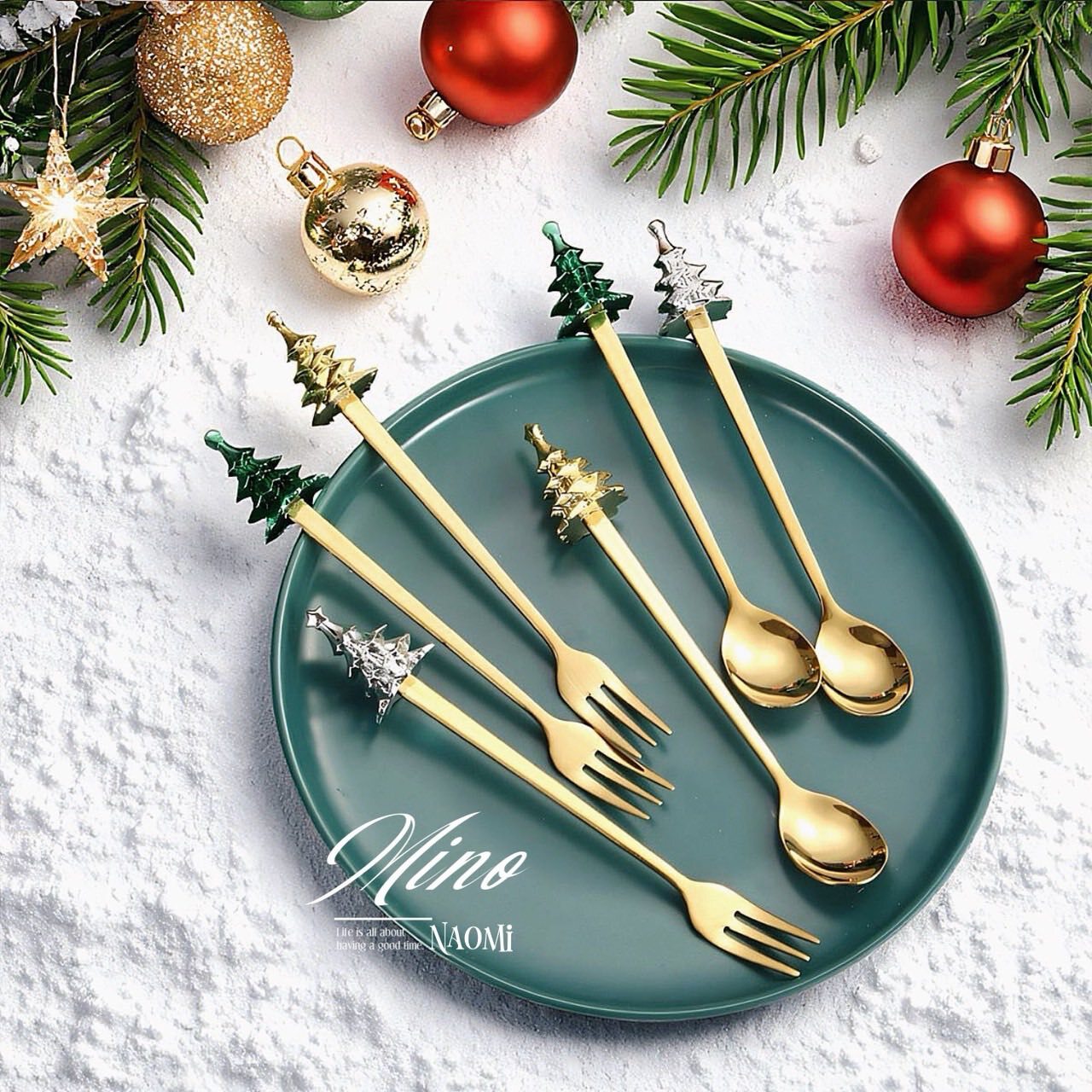 B03《🎄聖誕樹餐具勺叉6入套裝|輕奢風甜品叉咖啡勺組》
