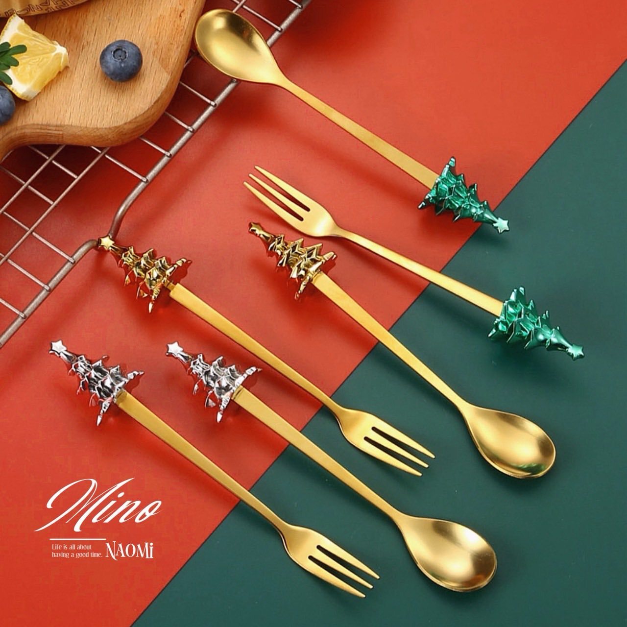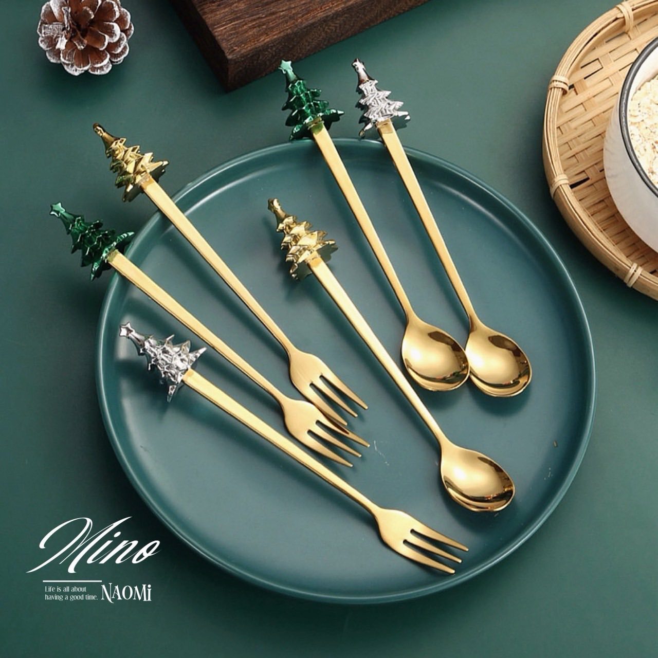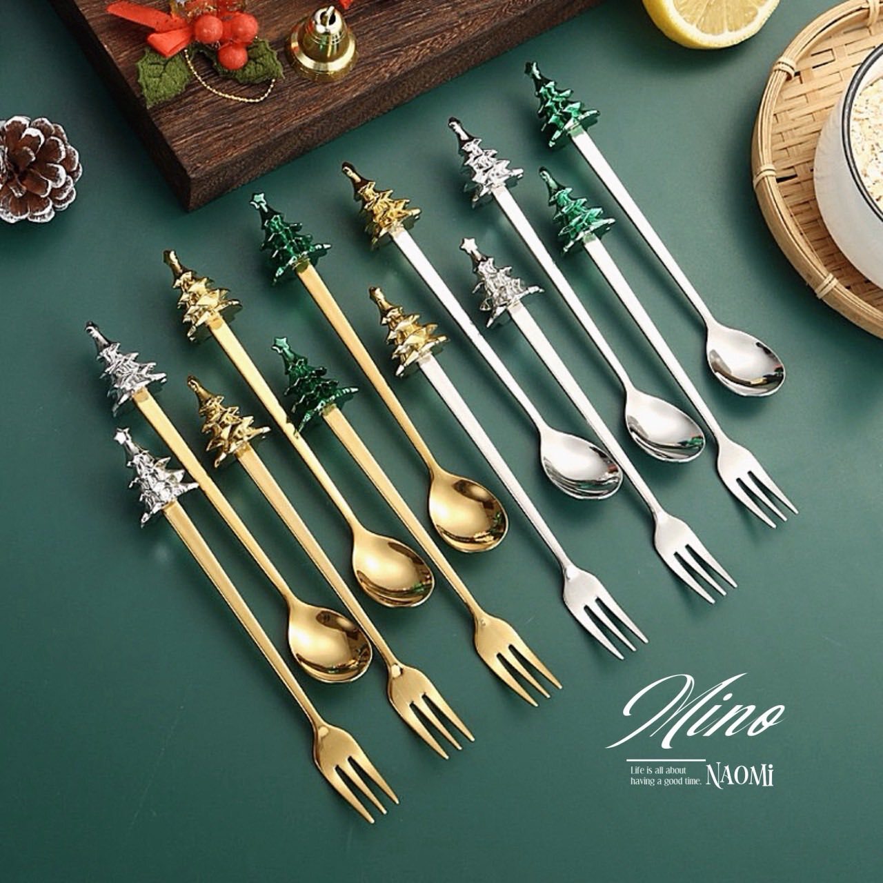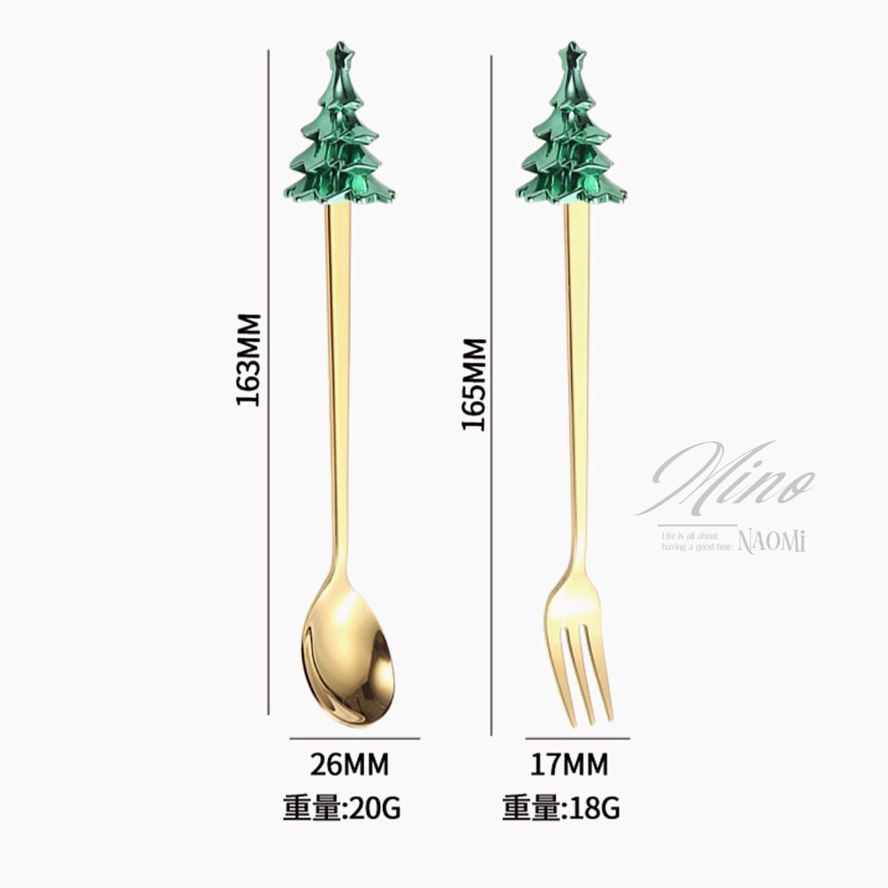 B03《🎄聖誕樹餐具勺叉6入套裝|輕奢風甜品叉咖啡勺組》