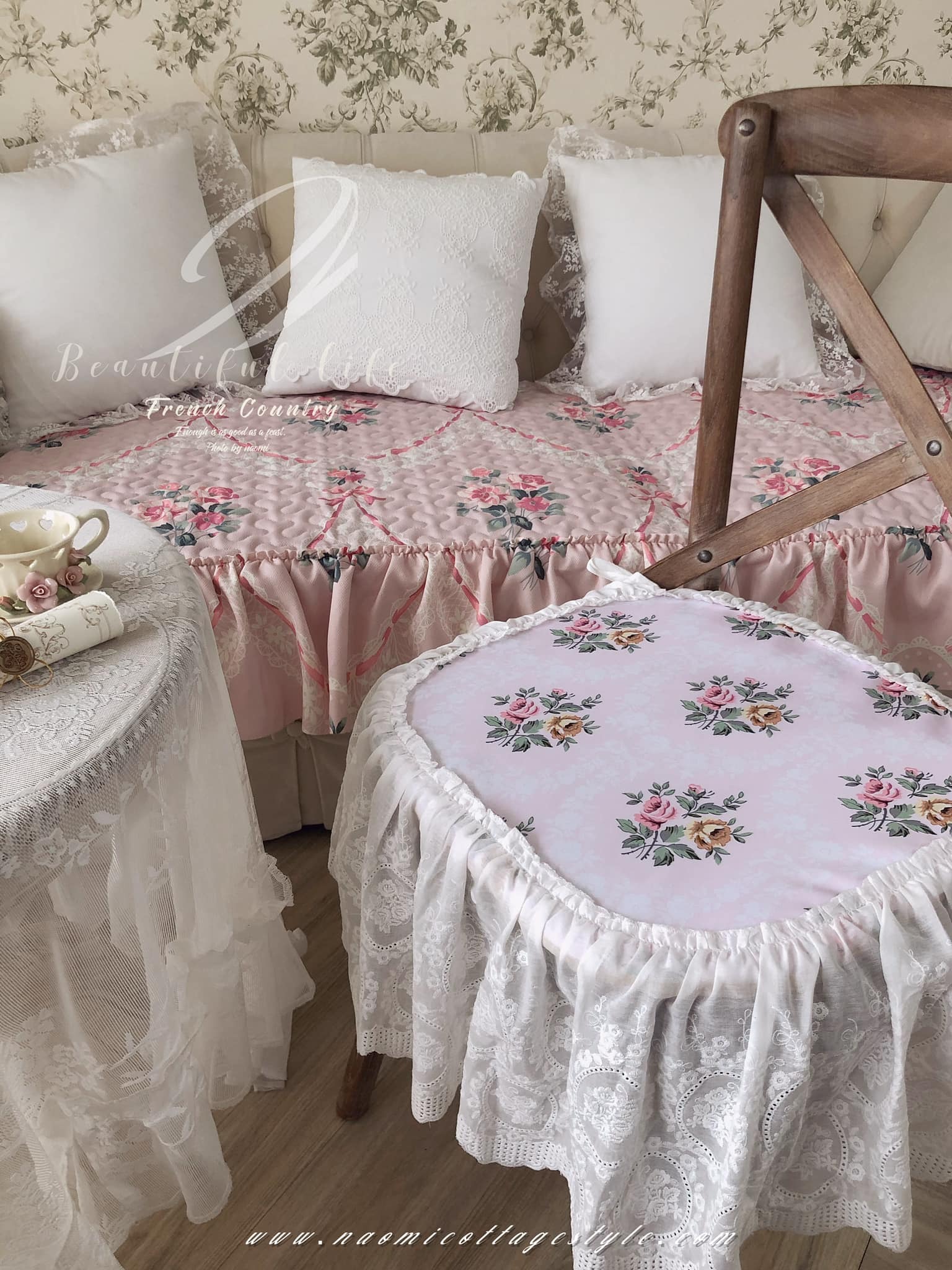 面料採用舒適柔軟且耐磨抗皺材質製作,夏天不悶熱,冬天溫暖為四季皆可使用的材質,墊子後也有止滑設計。夢幻花色再搭配荷葉邊下擺設計,讓整體更顯精緻。也有同款花色抱枕套可以加購搭配唷。