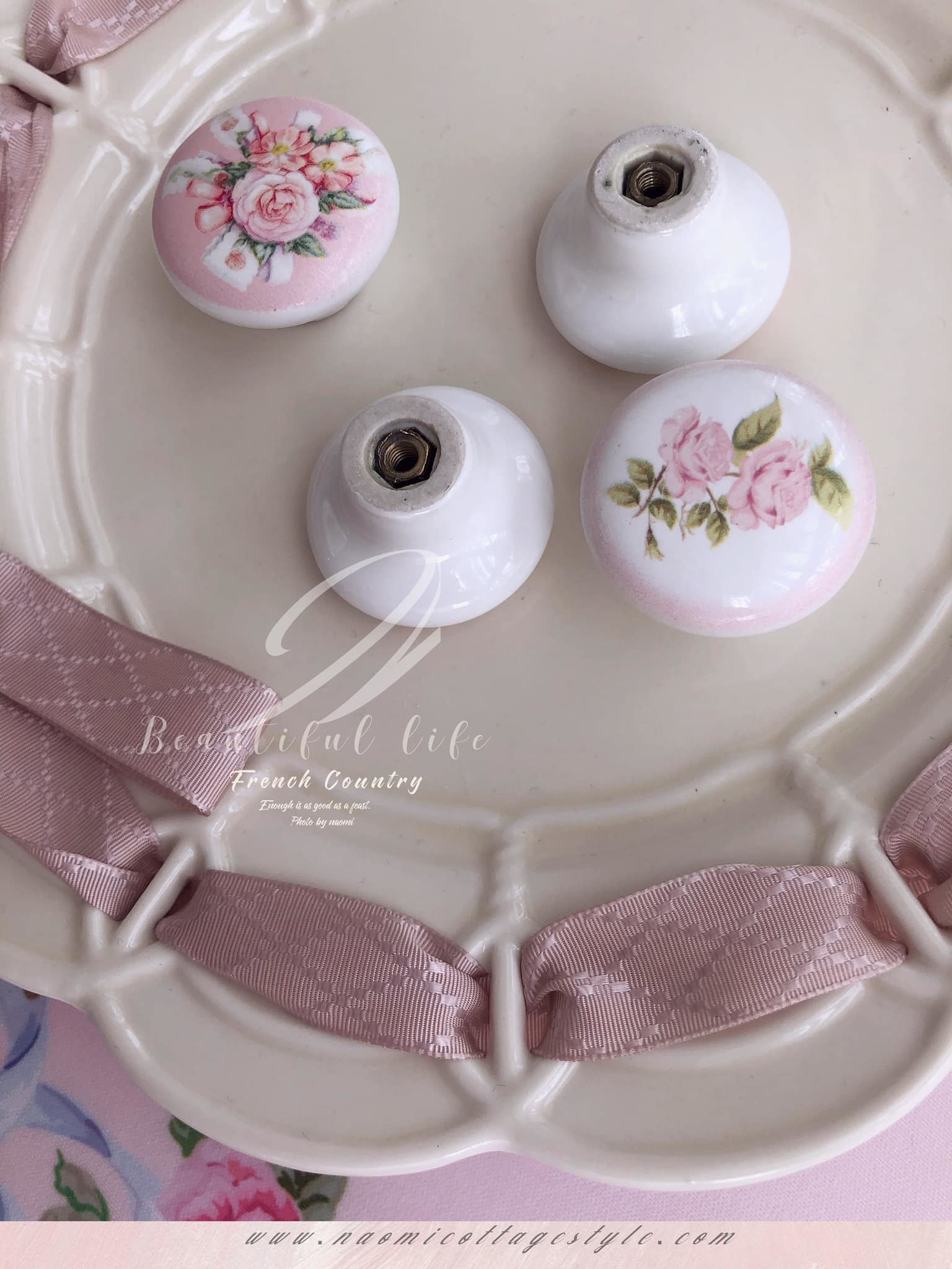 🌹鄉村玫瑰陶瓷門櫃單孔拉手、把手