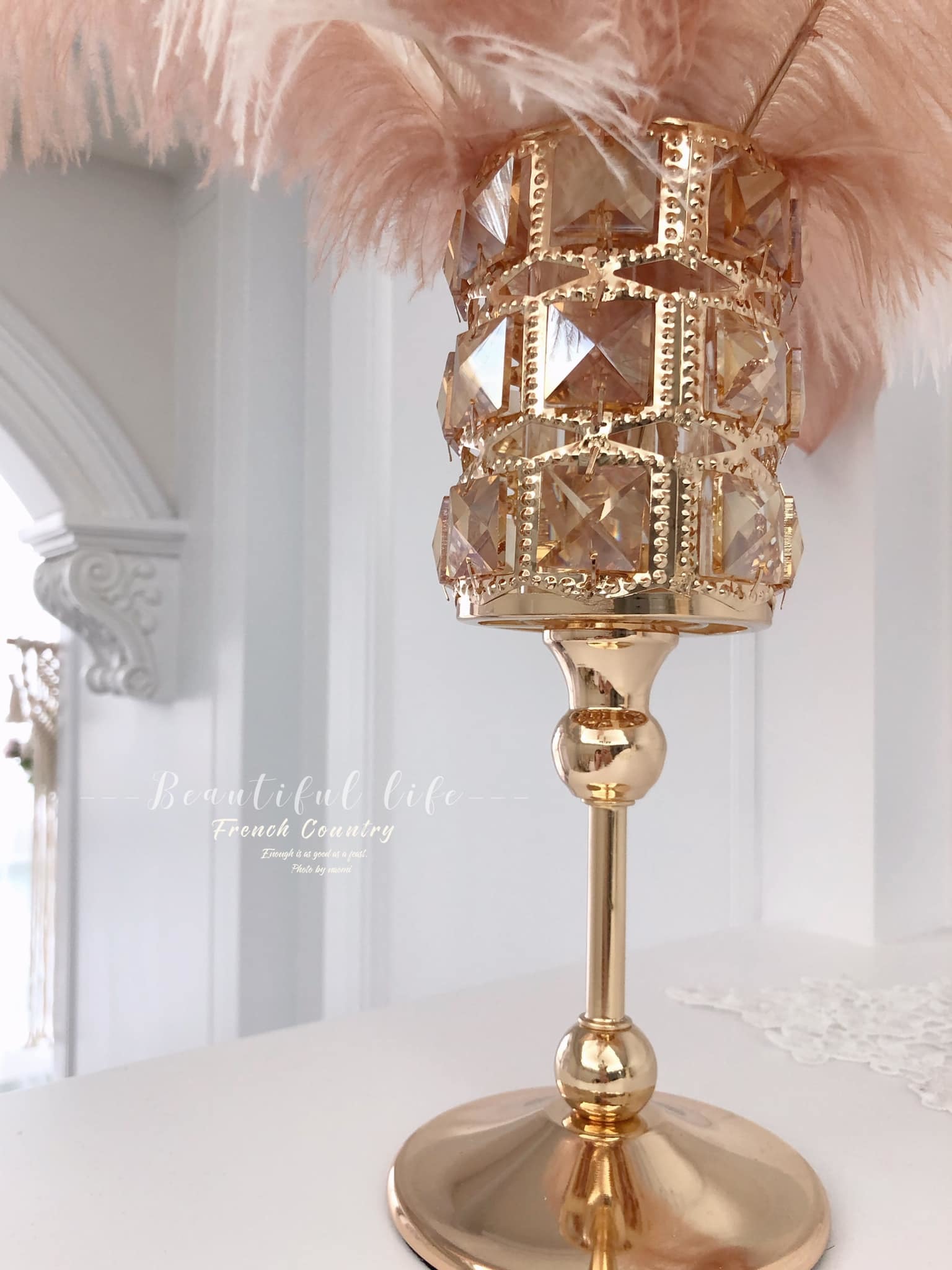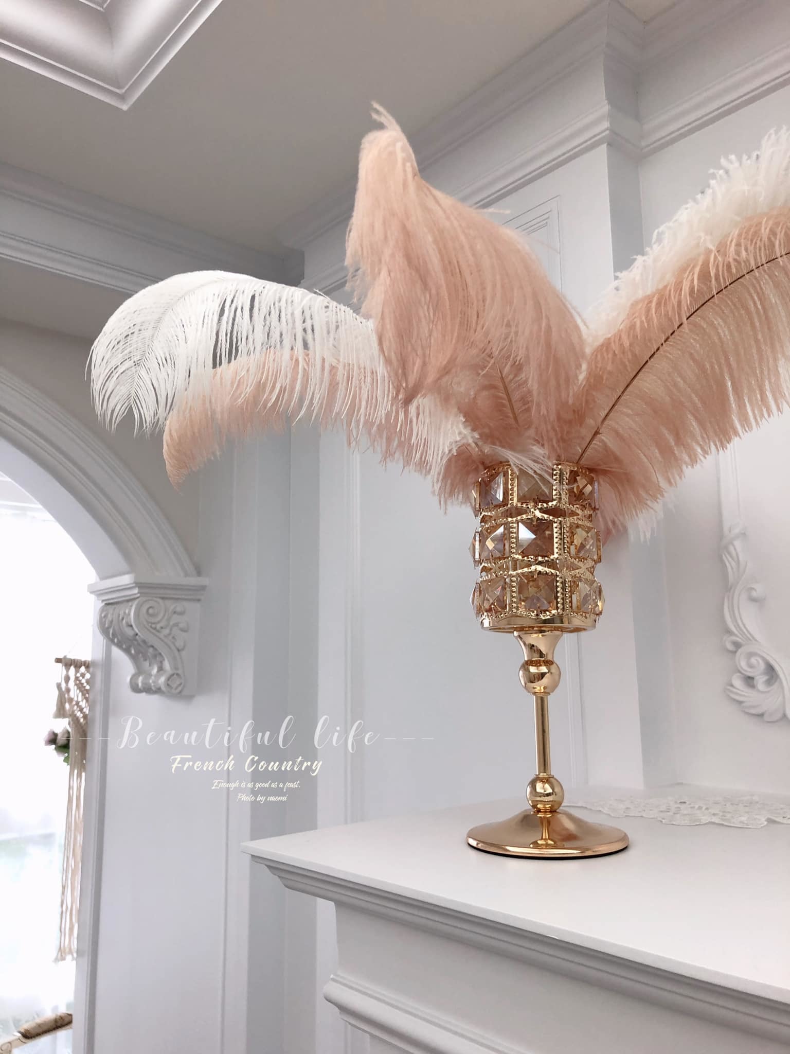 歐式金色浪漫燭台、裝飾羽毛擺飾架、