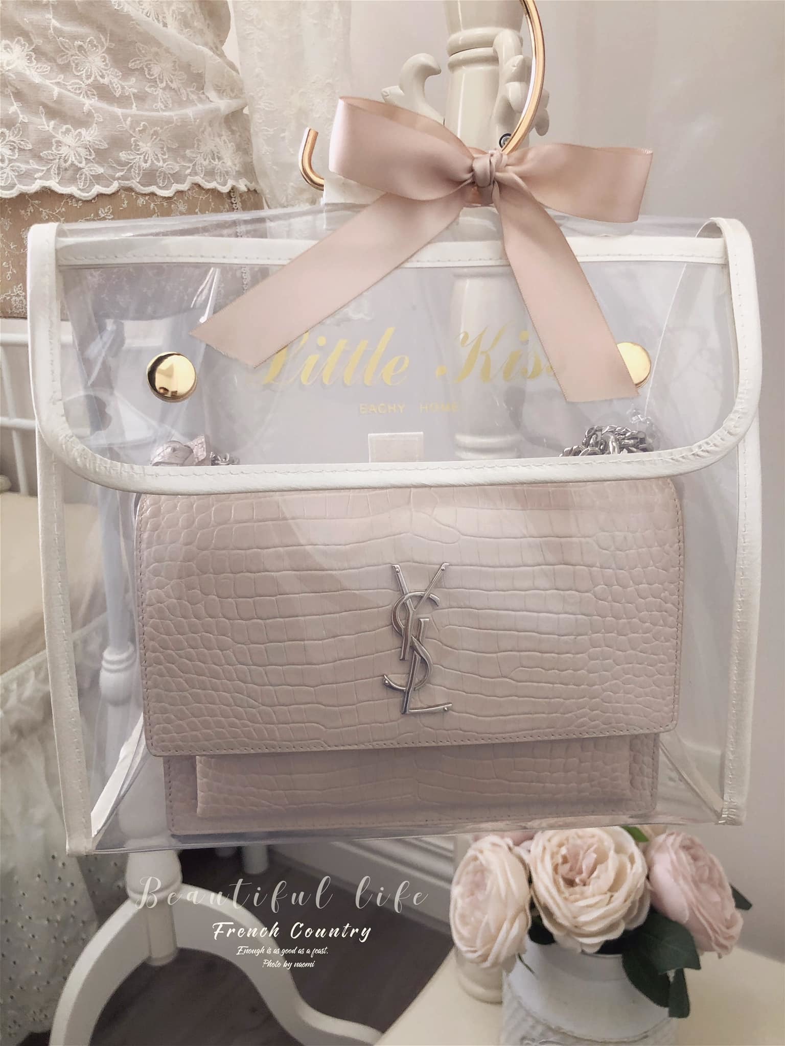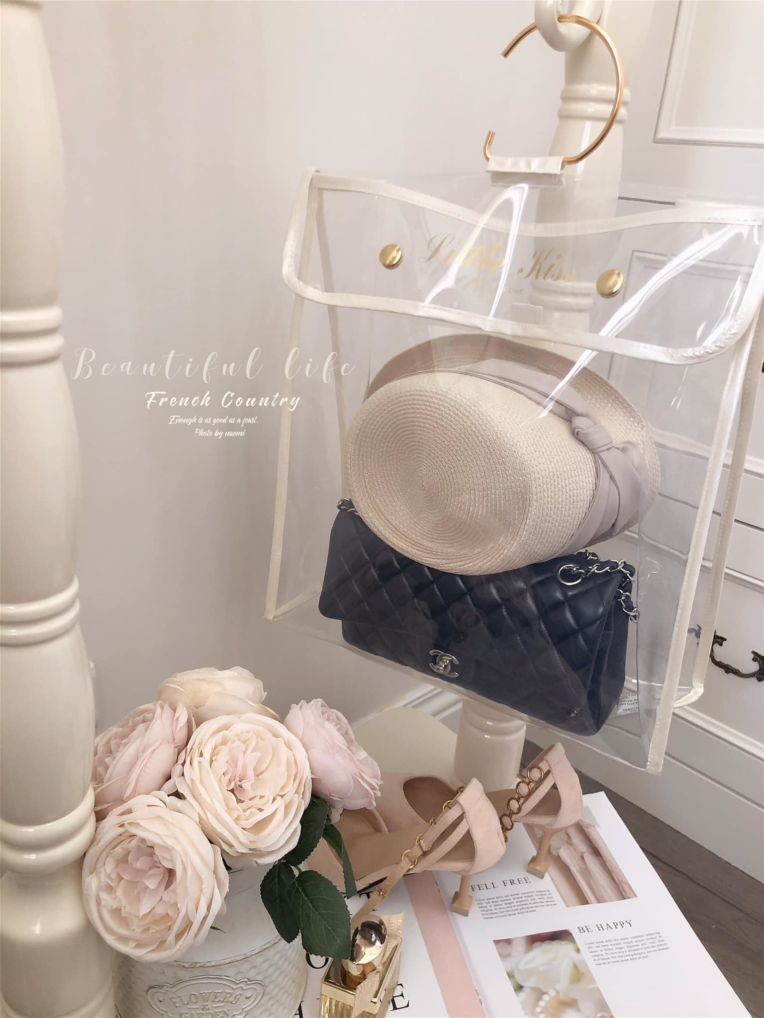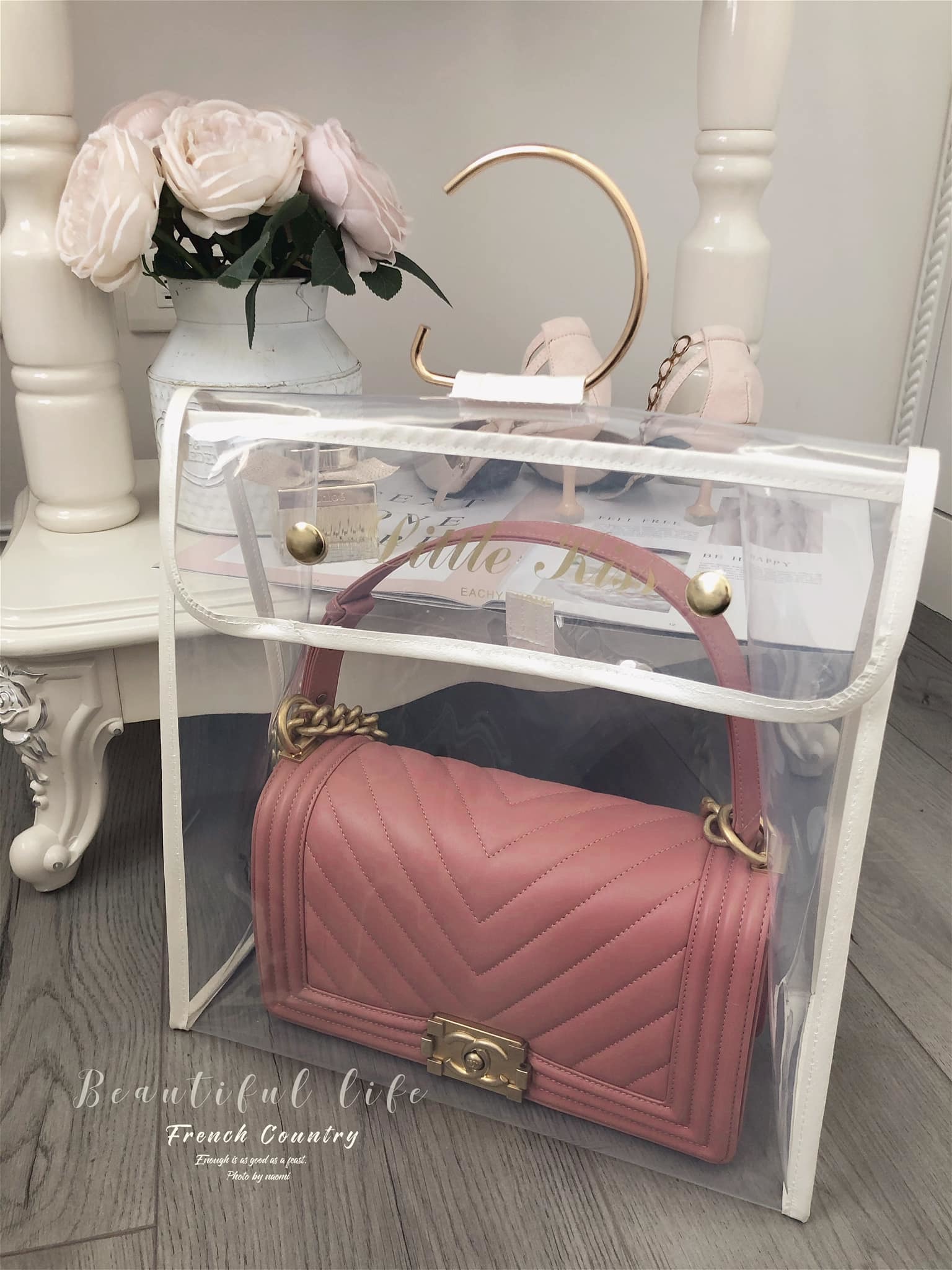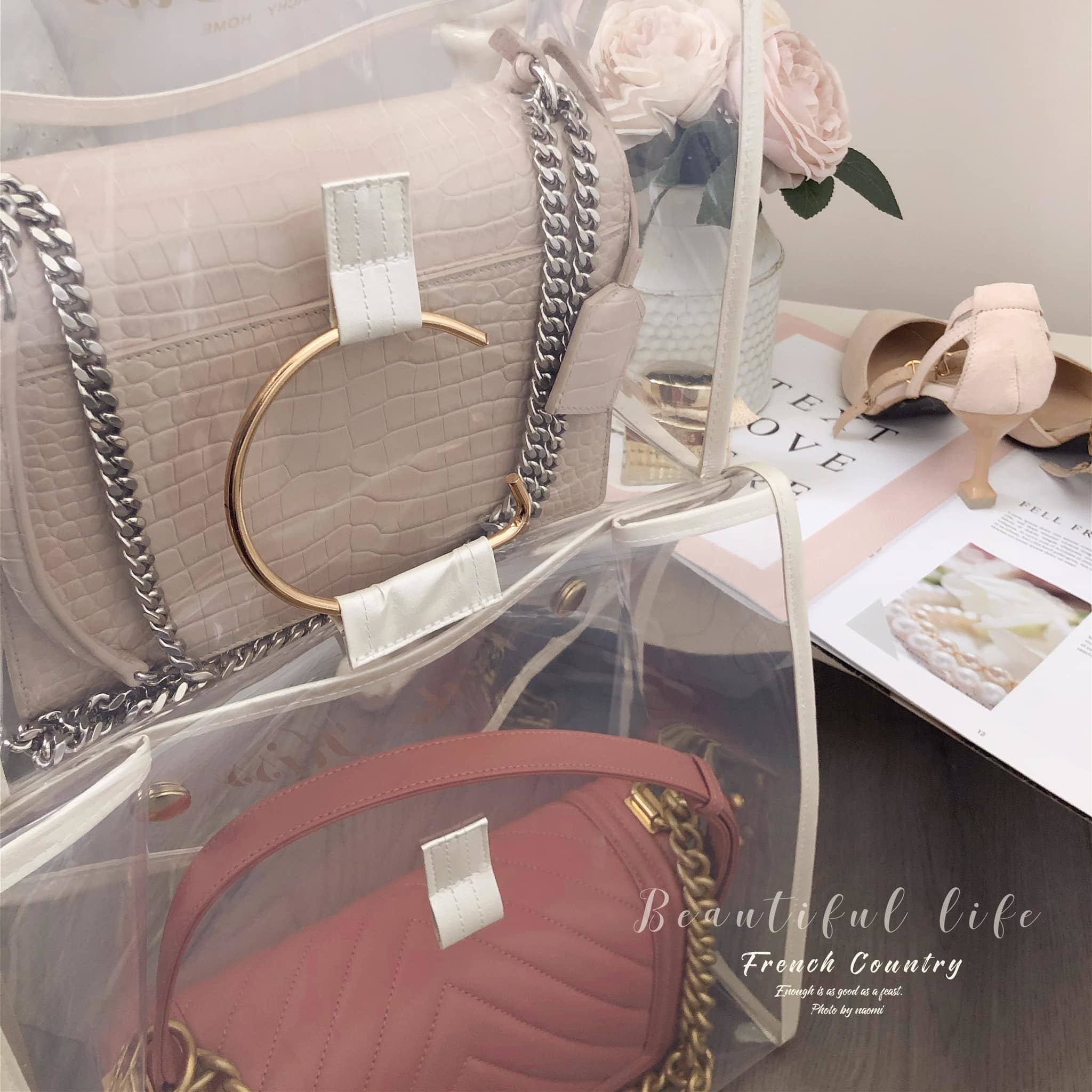 這應該是最好看的防塵袋了吧,白色系的皮革包邊有著珍珠白的光澤。提袋設計也讓收納袋有更多的收納方式,收納後可以直接放儲物櫃或吊掛著。透明EVA材質厚實耐用,找包也一目瞭然。