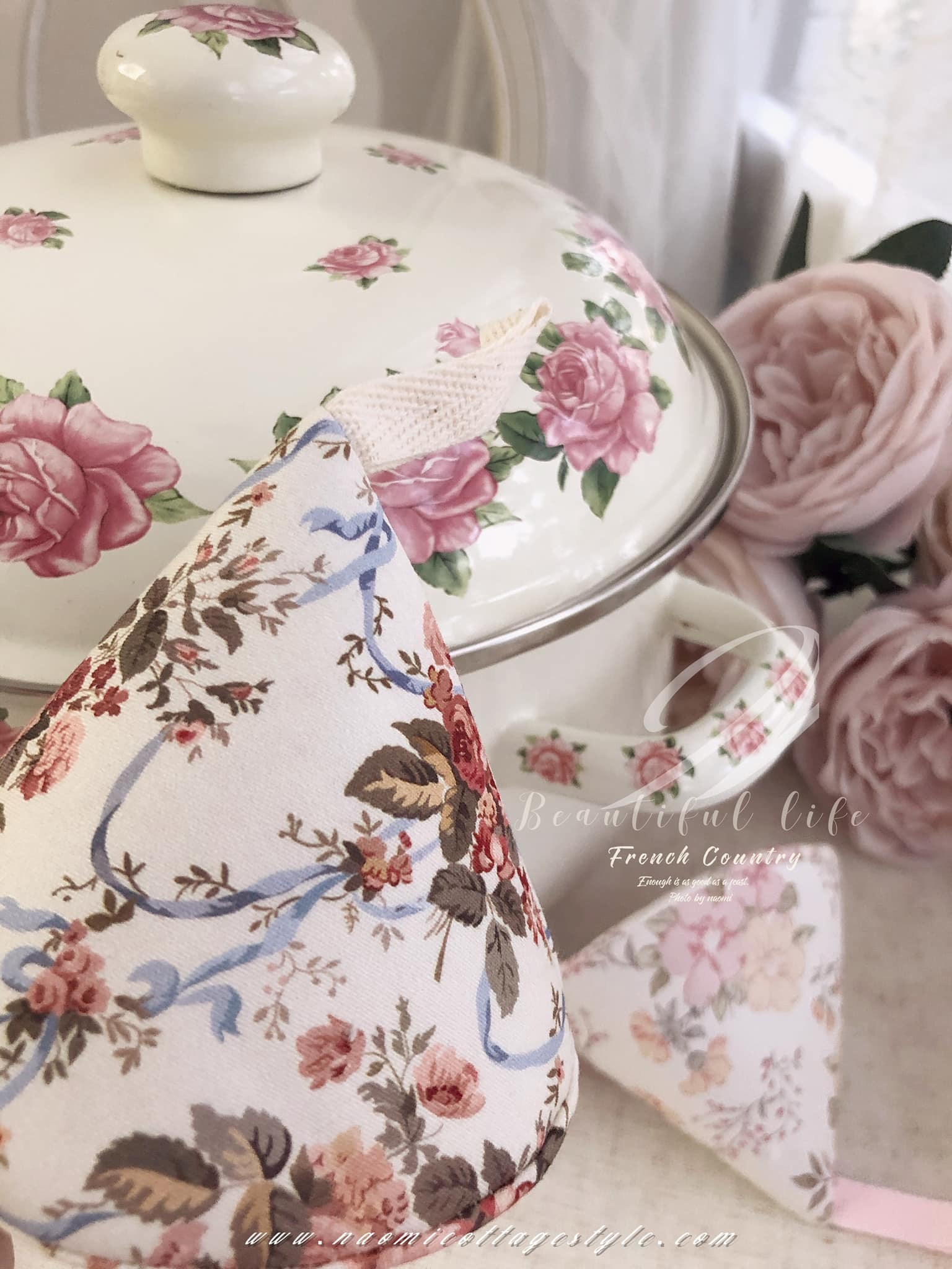 🌹玫瑰碎花附吊耳隔熱套、鍋帽