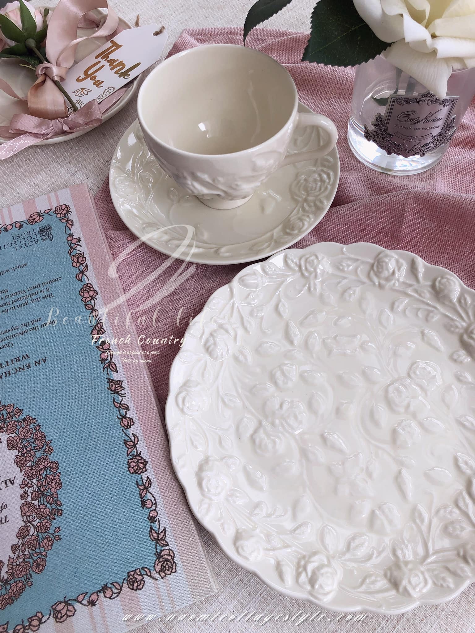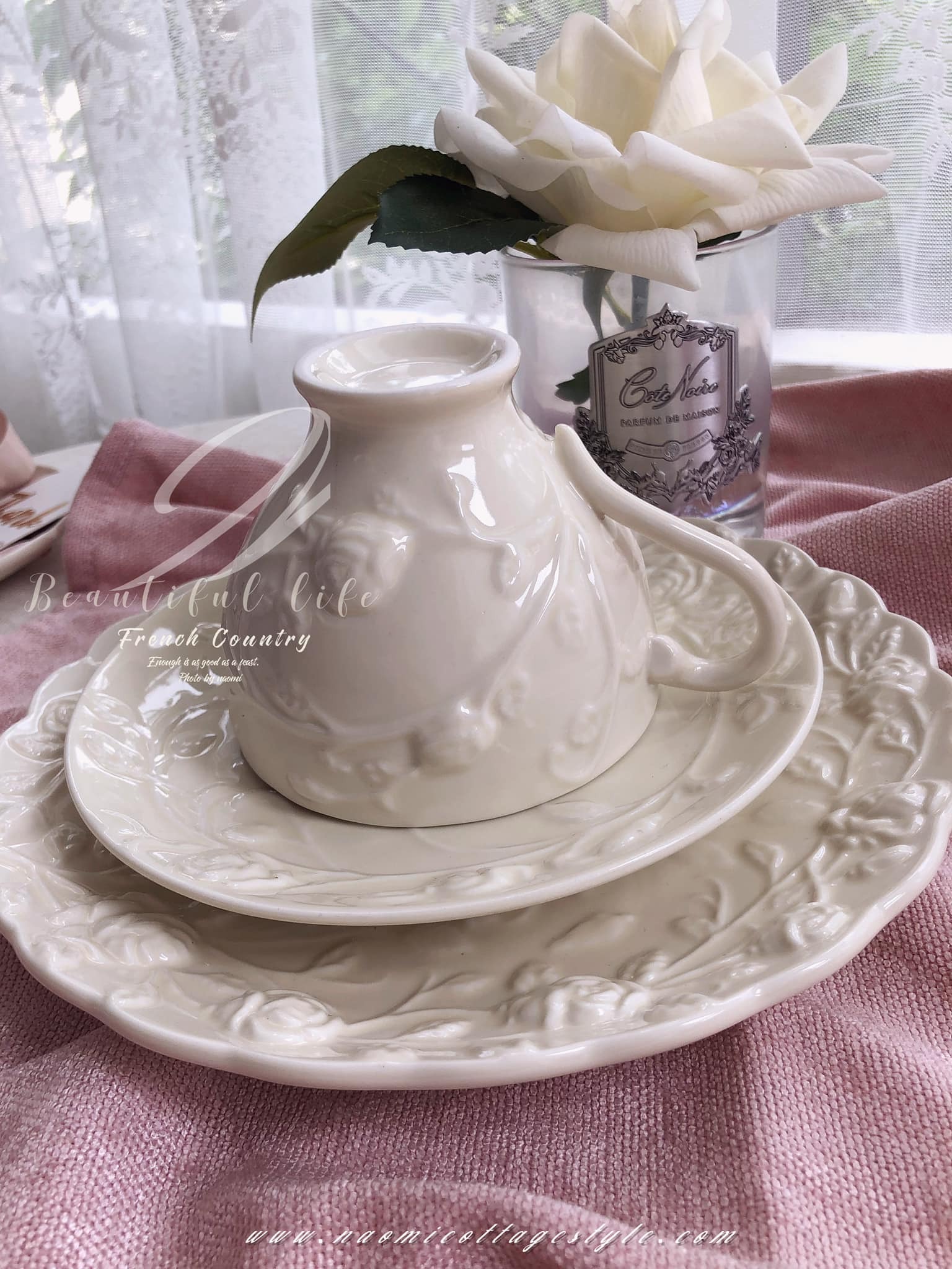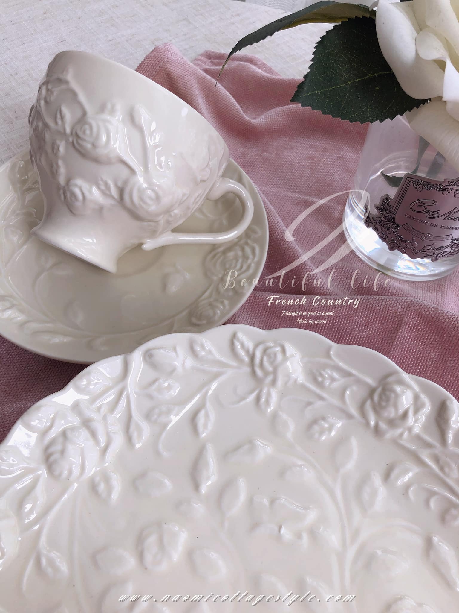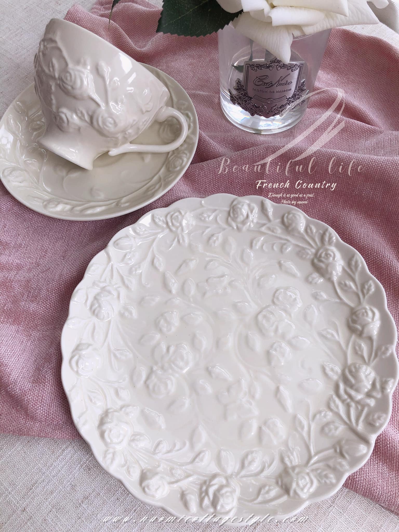 ✔️瓷質奶油白顯得輕柔,享受優雅的午茶甜點時光🍮拍照的時候玫瑰浮雕特別立體,優雅的呈現在畫面上💕