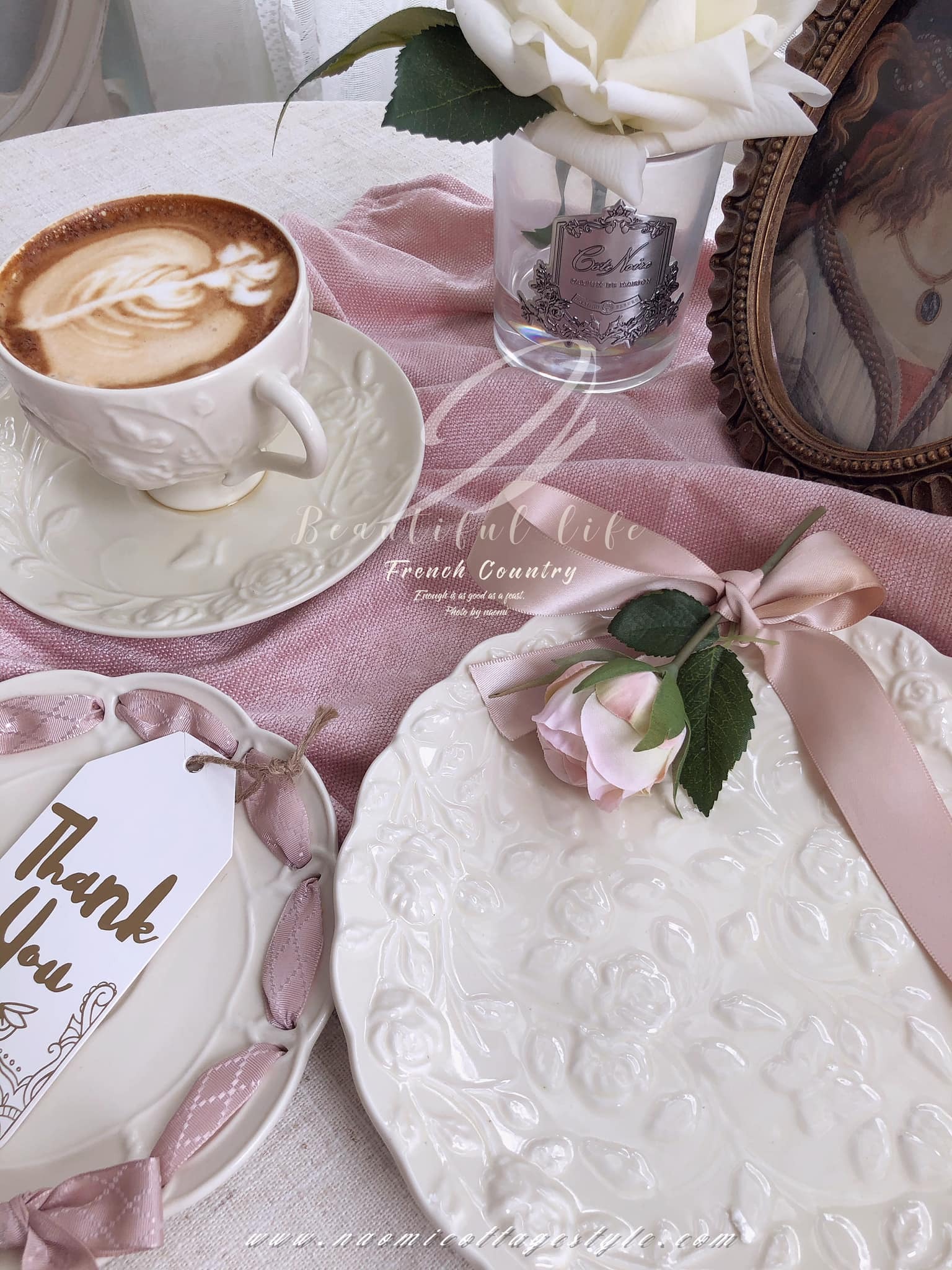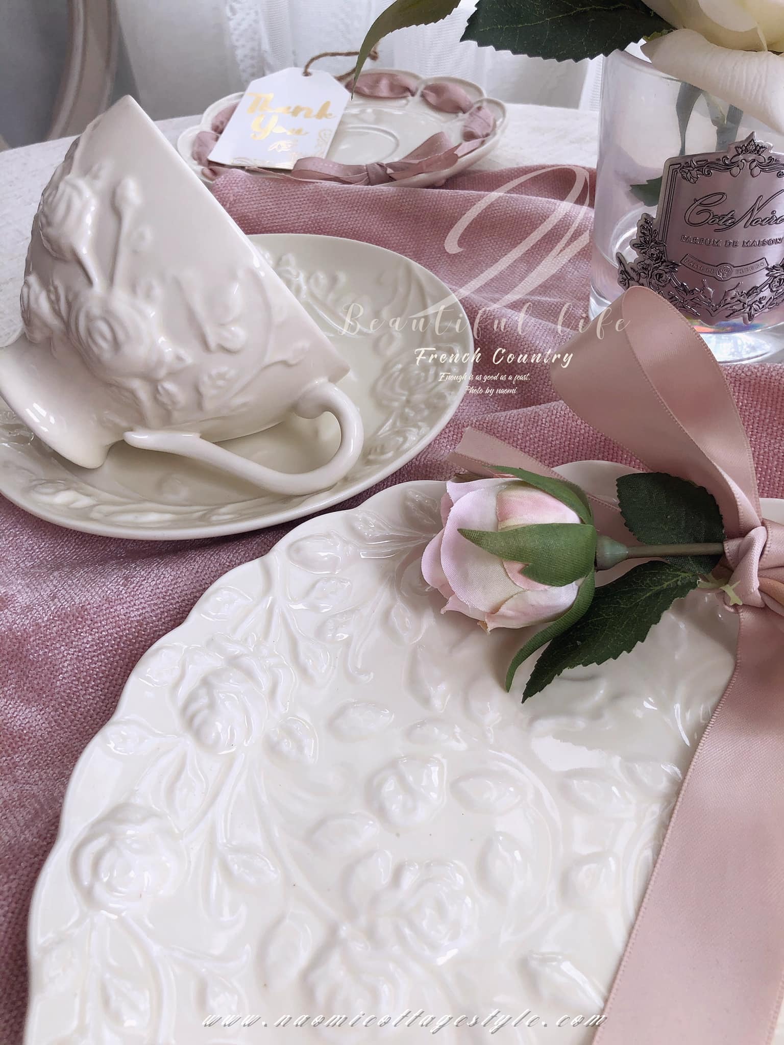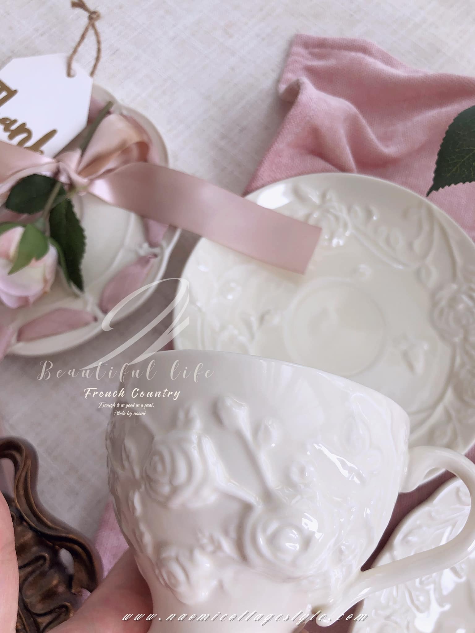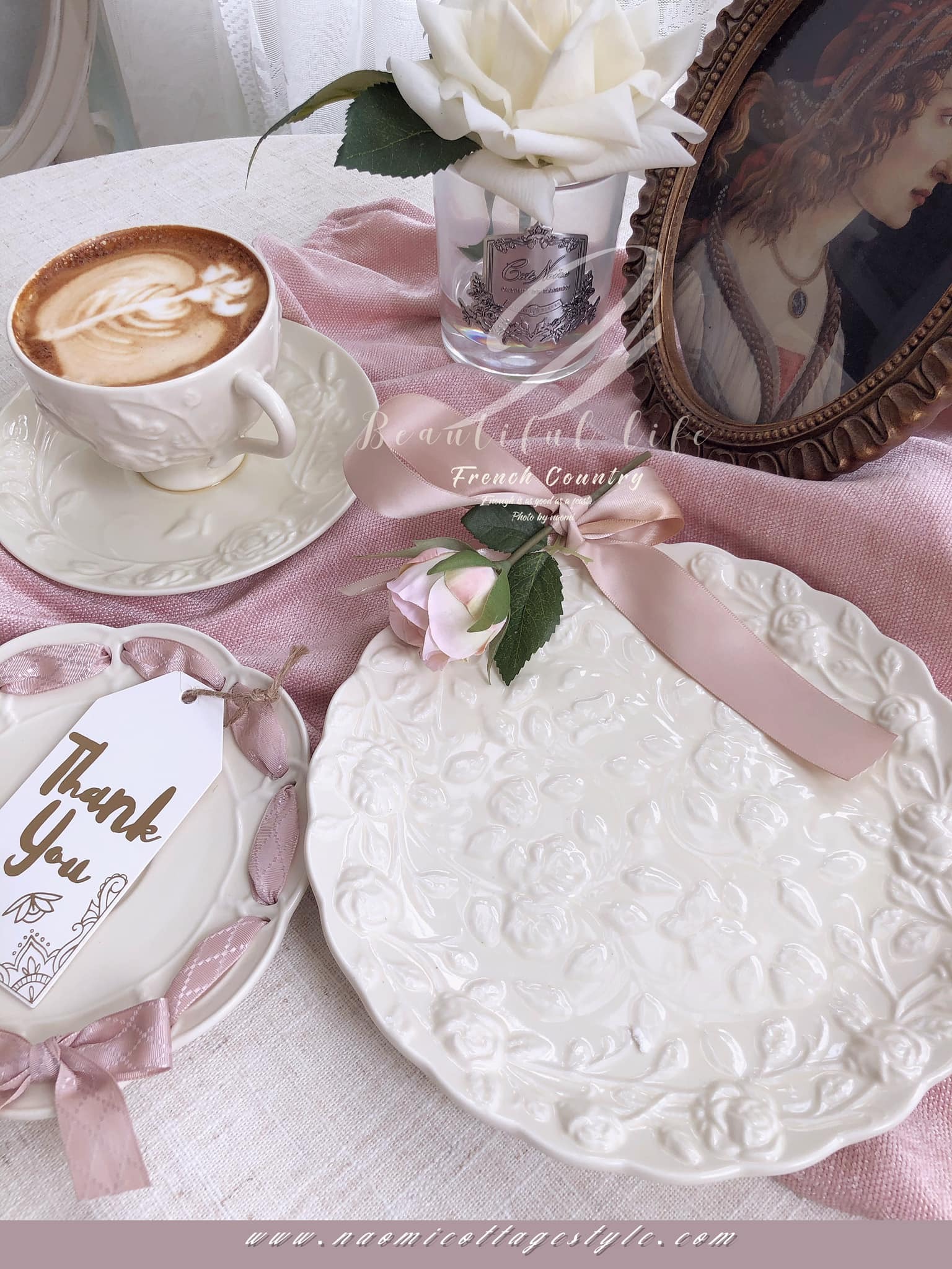 ✔️瓷質奶油白顯得輕柔,享受優雅的午茶甜點時光🍮拍照的時候玫瑰浮雕特別立體,優雅的呈現在畫面上💕