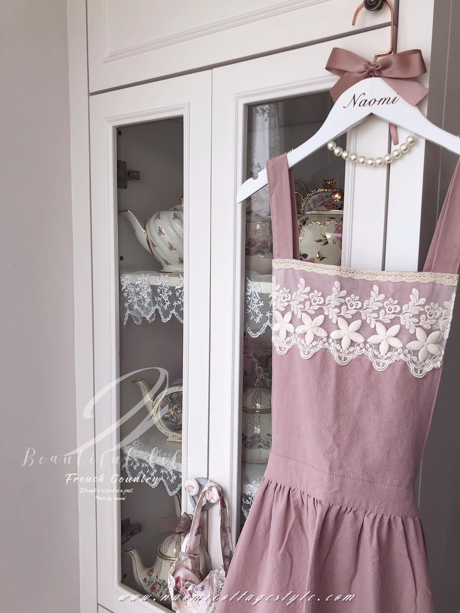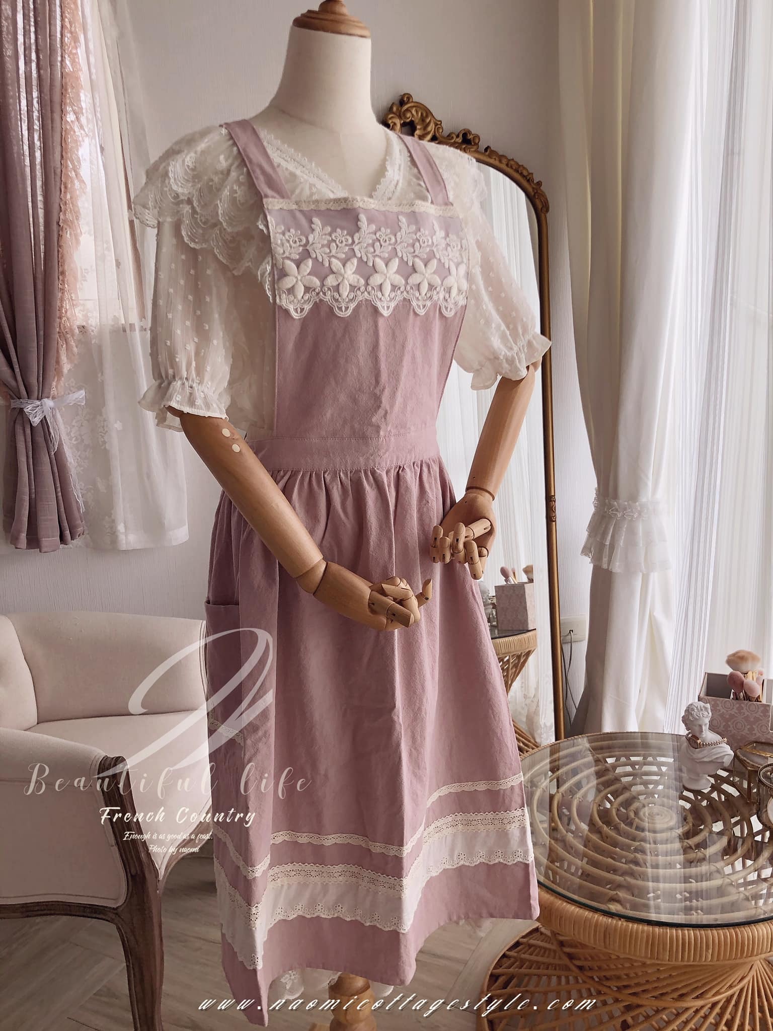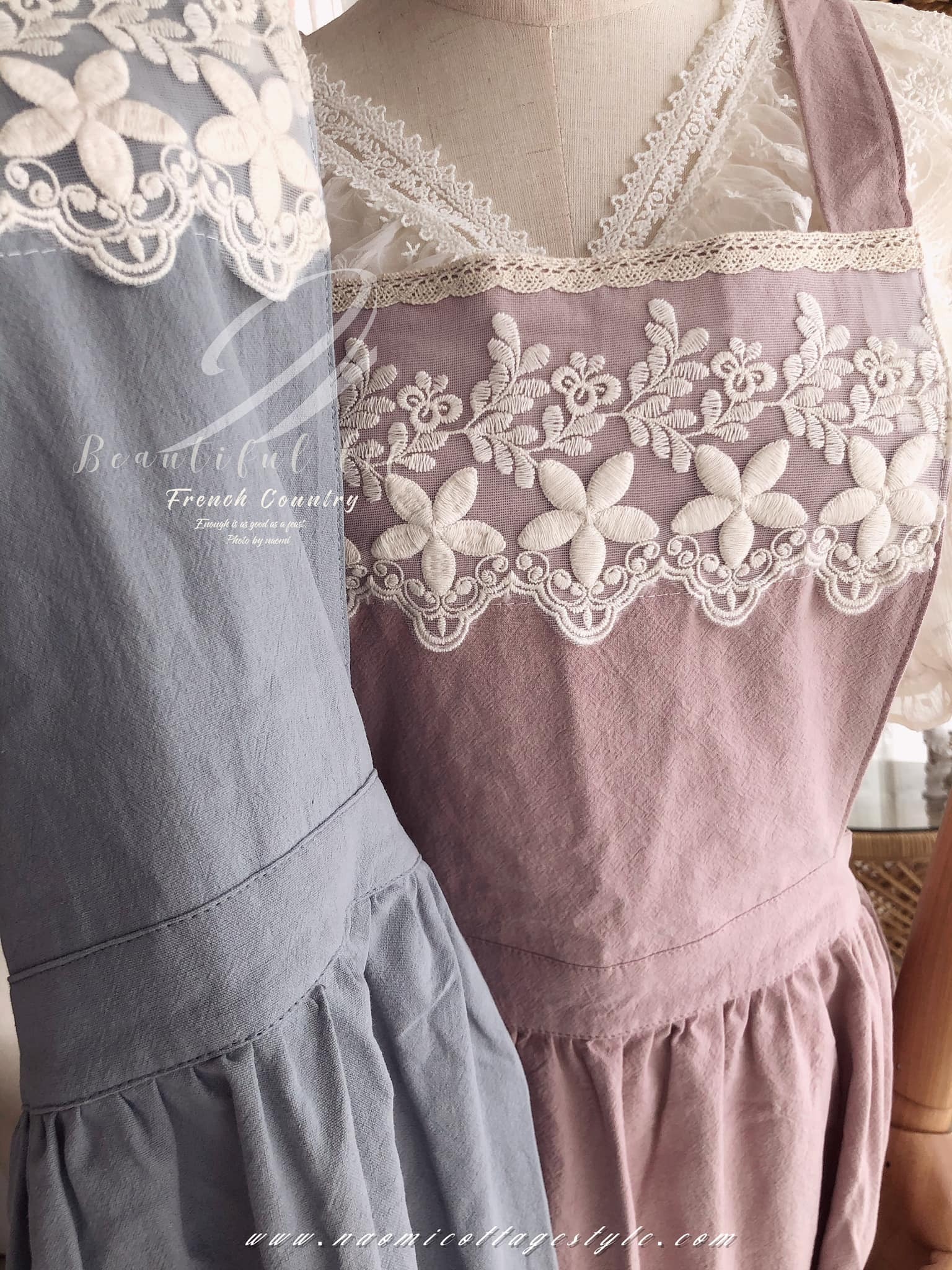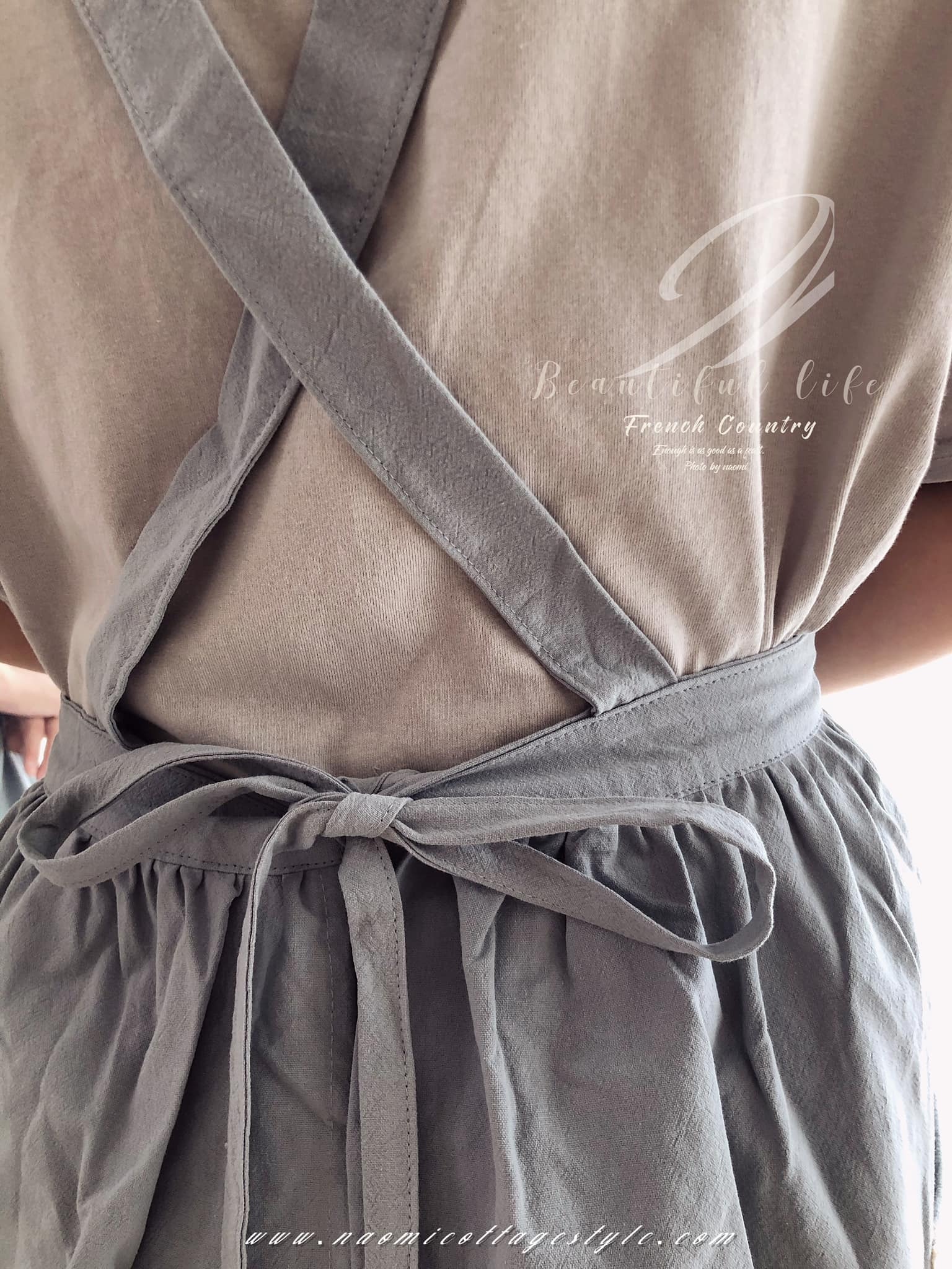 法式加長棉質蕾絲圍裙、口袋工作裙