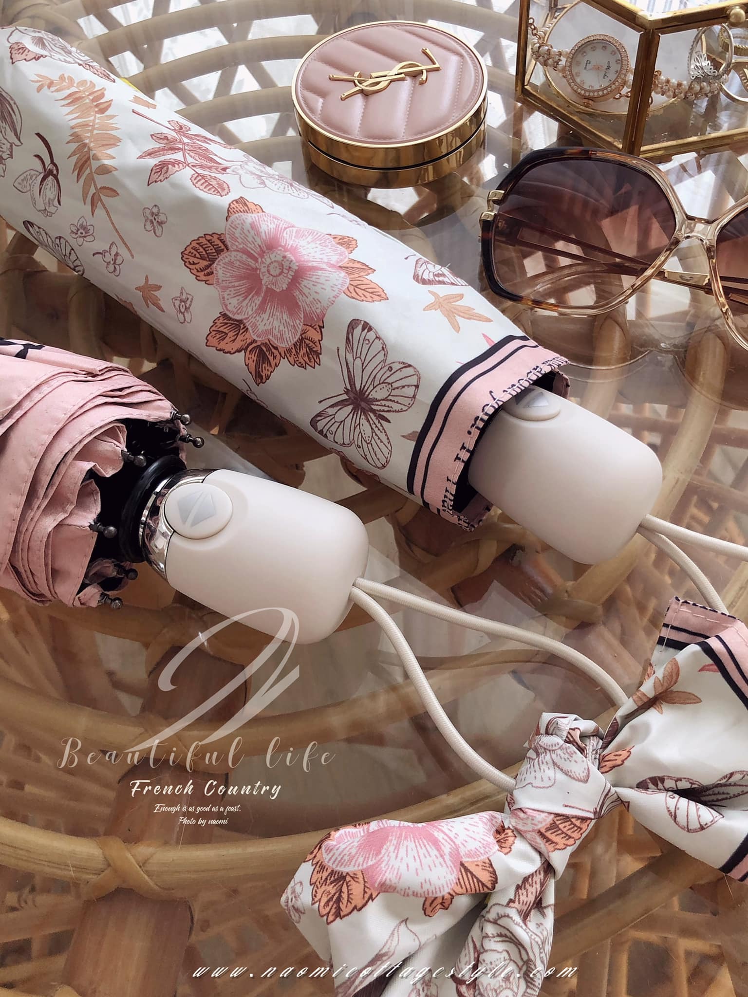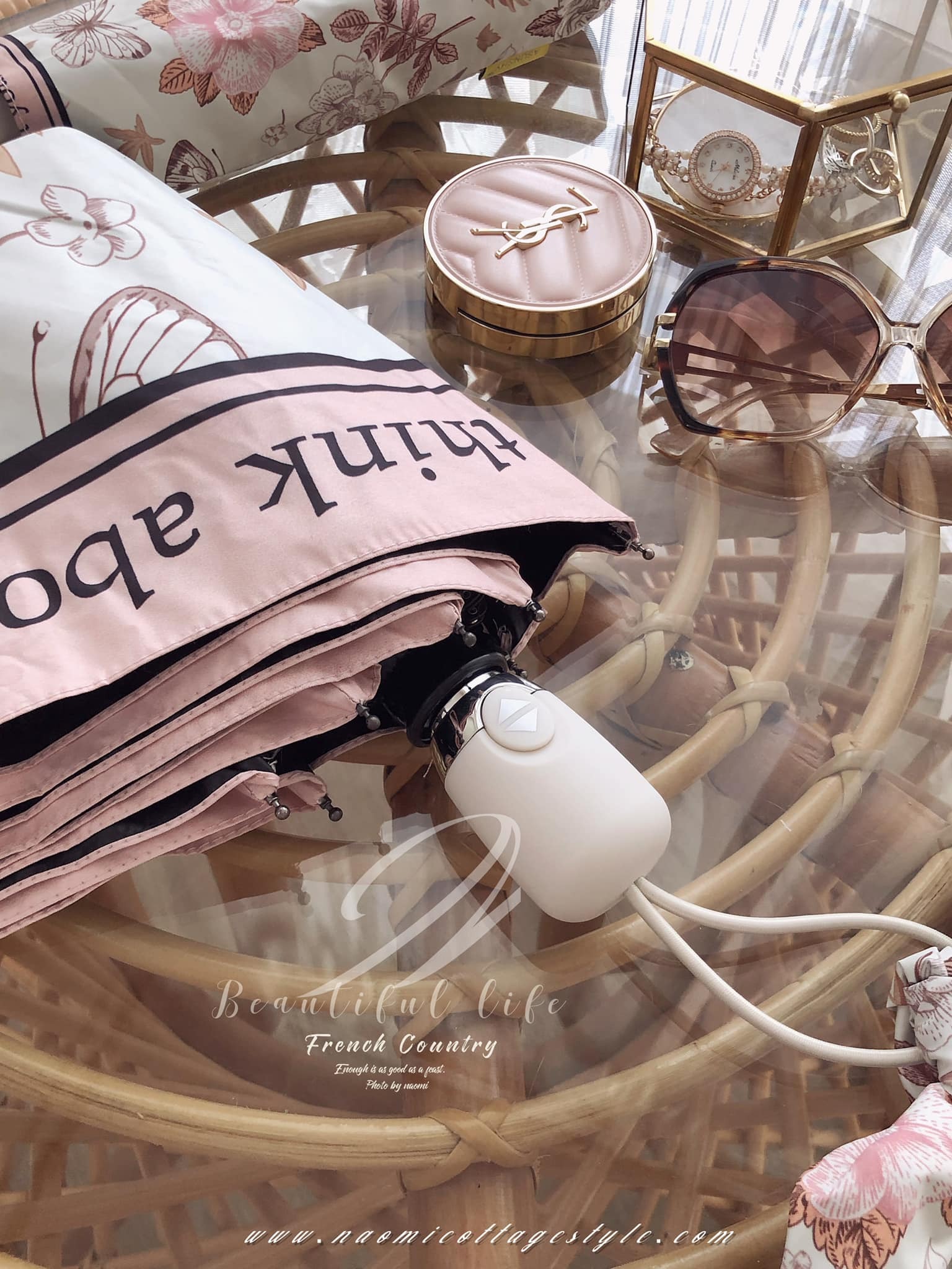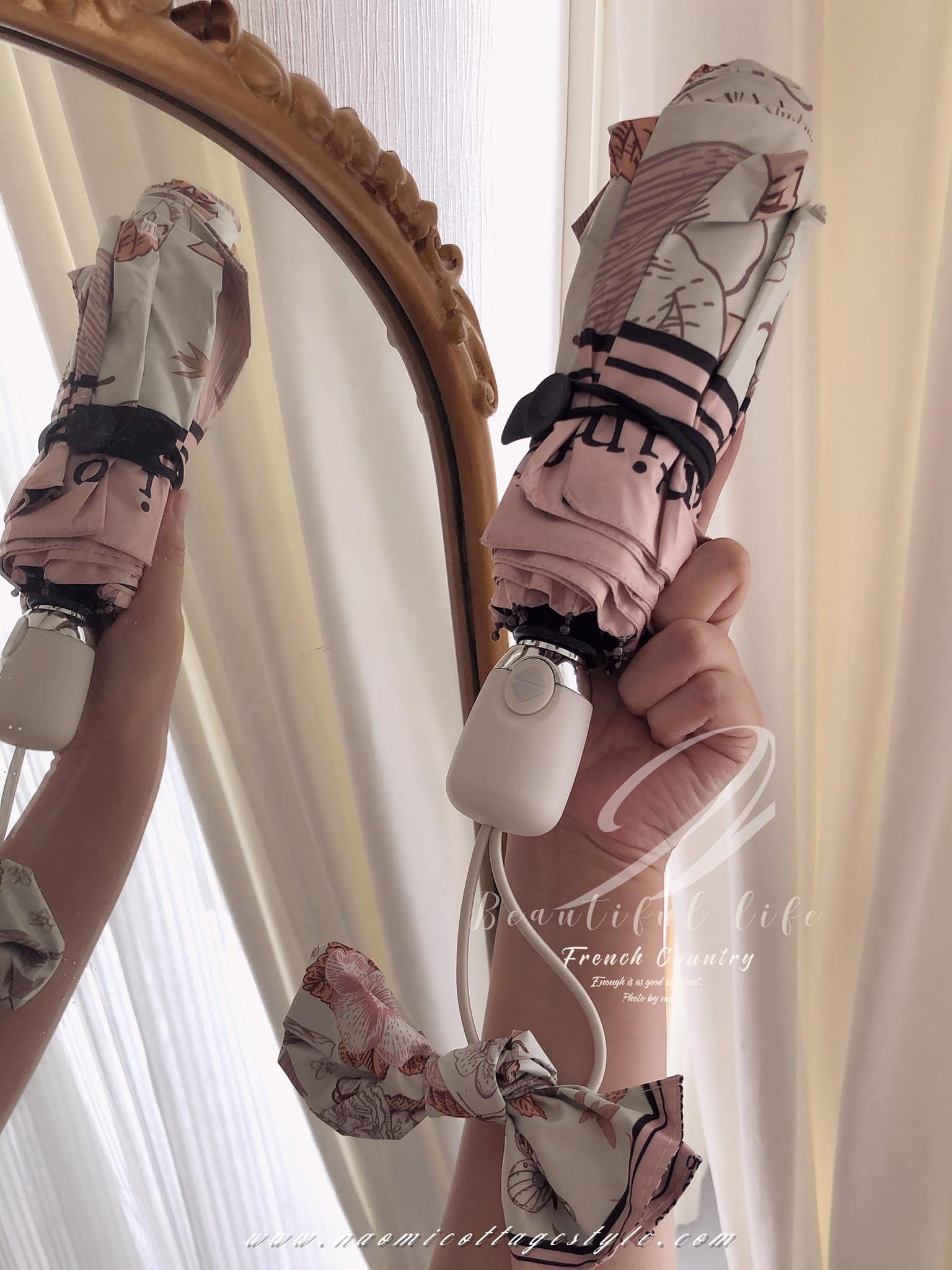 傘款設計上很有質感,手把磨砂設計,傘面邊緣英文風格設計濃濃浪漫風情✨底色是米白色的,很高級復古、優雅、浪漫。這款 #防曬抗UV的漂亮晴雨傘  真的很美~~傘把的地方是傘袋打結上去變成蝴蝶結裝飾,精緻可見。傘內黑膠塗層,高溫的戶外活動,撐傘降溫很多。