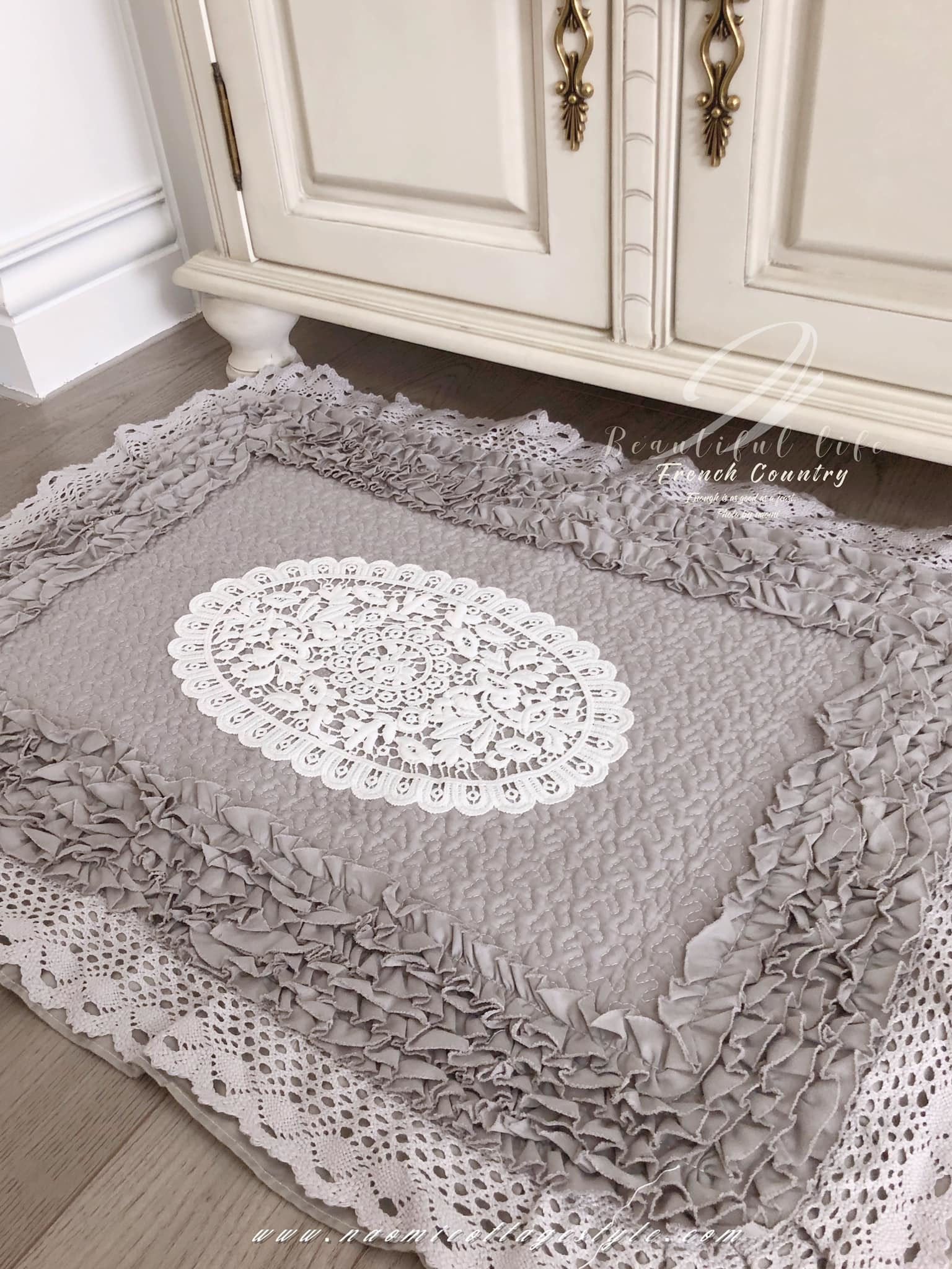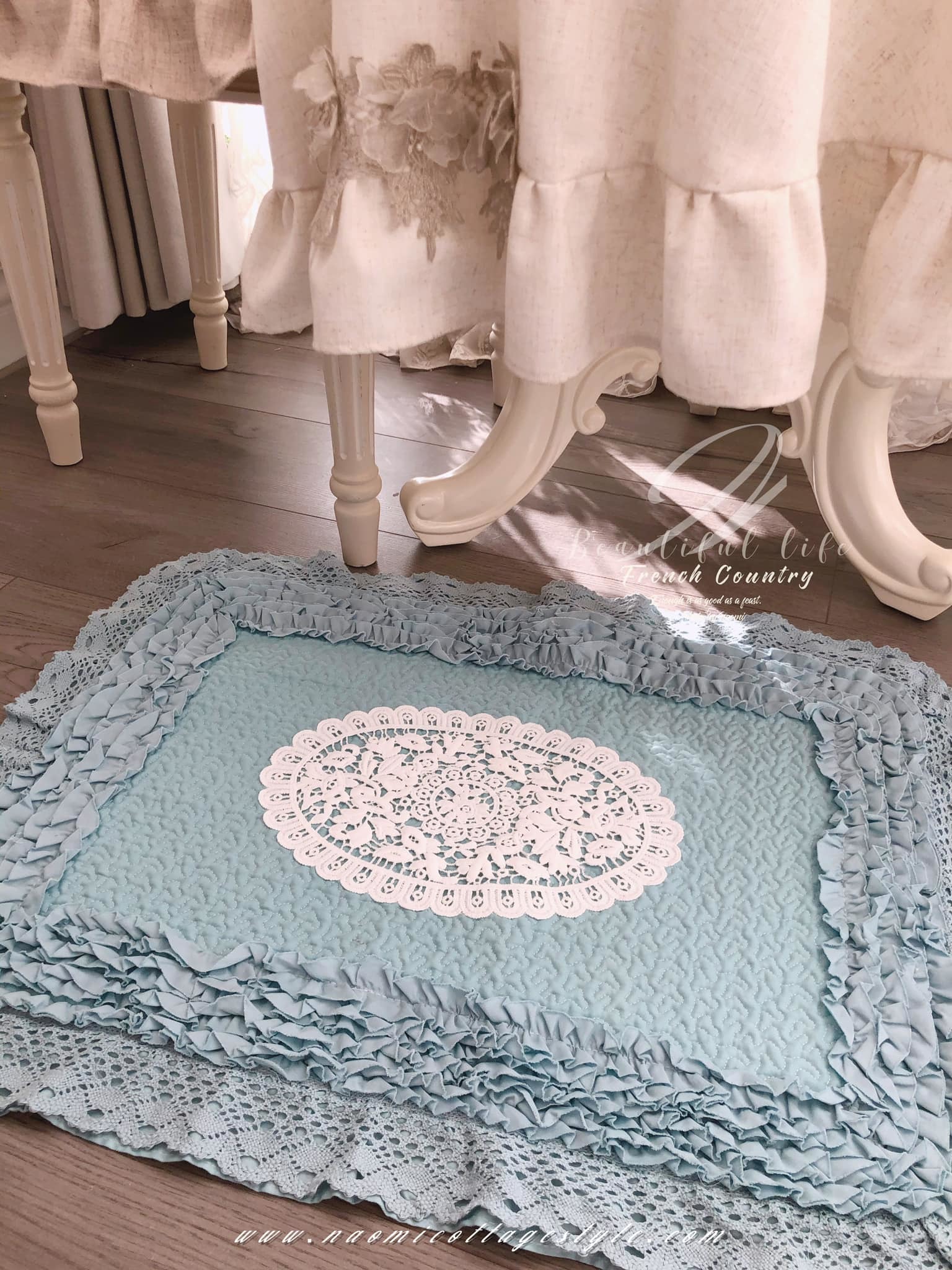 🌹木耳花邊純棉止滑蕾絲貼花地墊