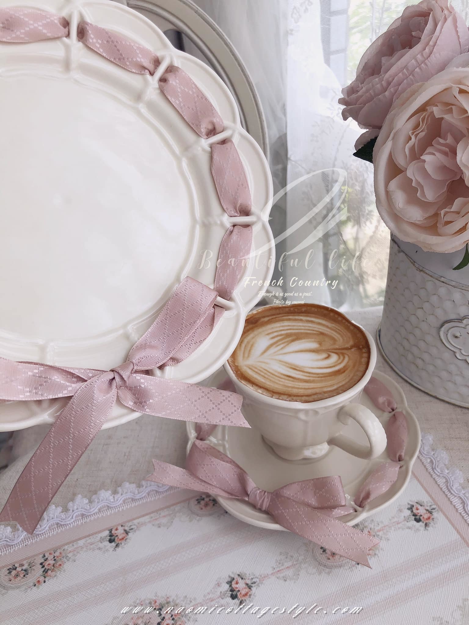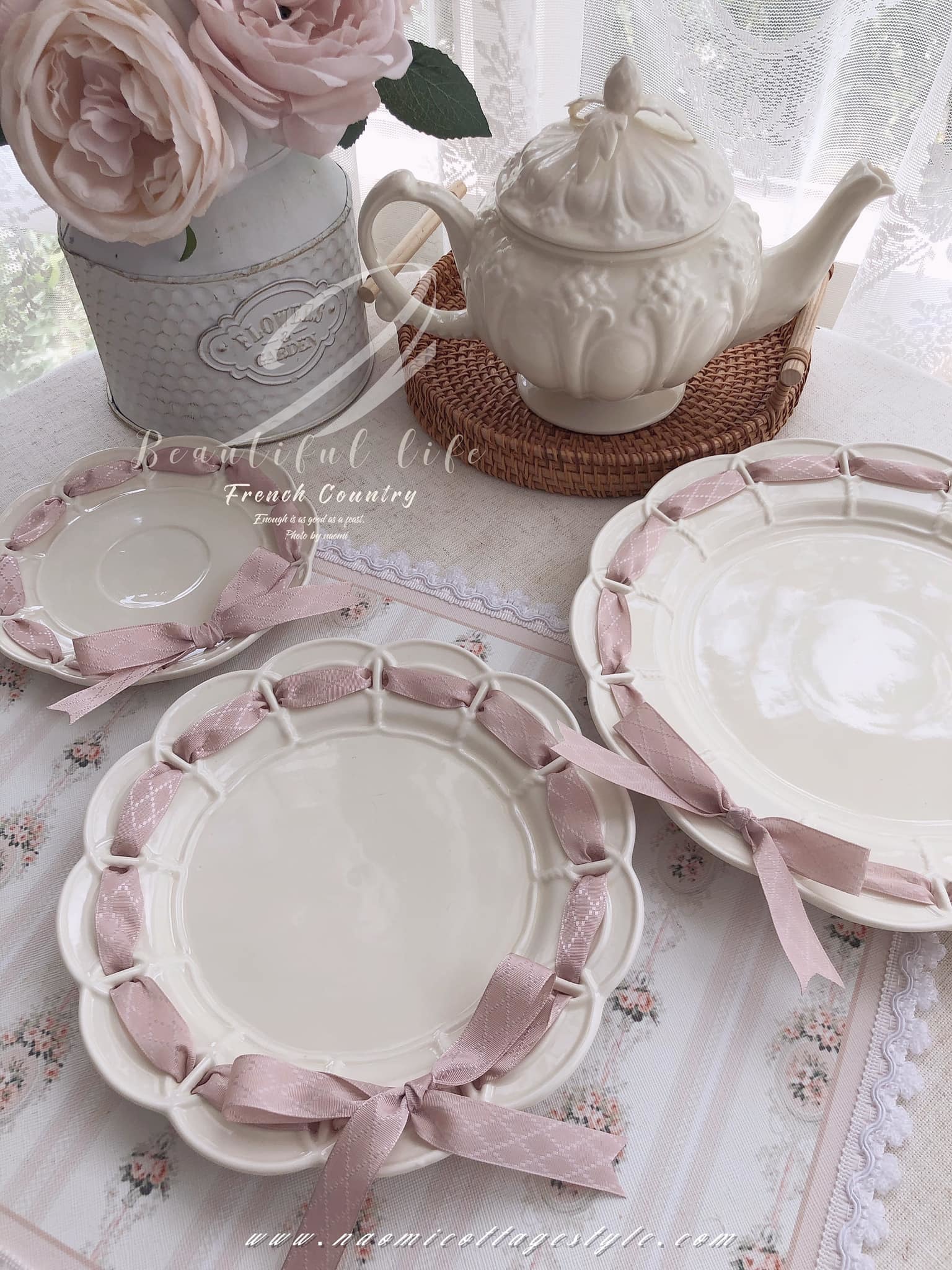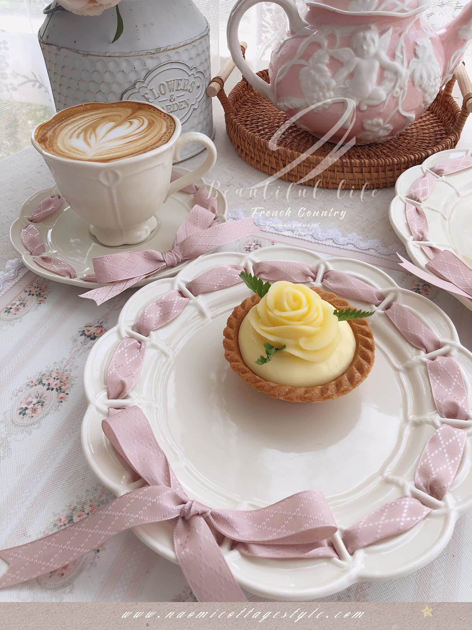 瓷質奶油白顯得輕柔,簍空花邊繫上緞帶的完美結合,享受優雅的午茶甜點時光🍮