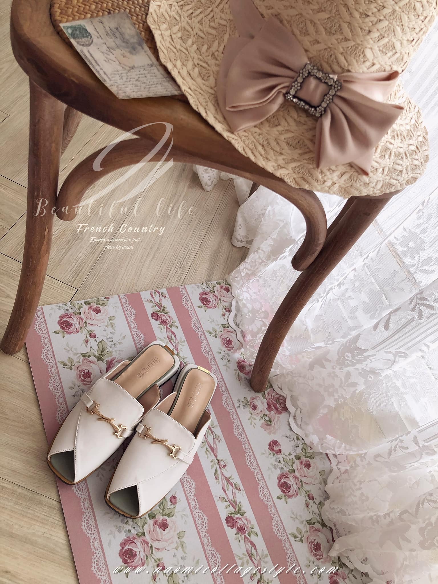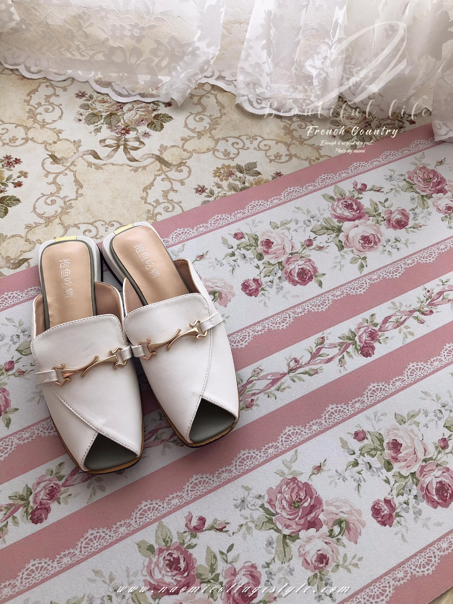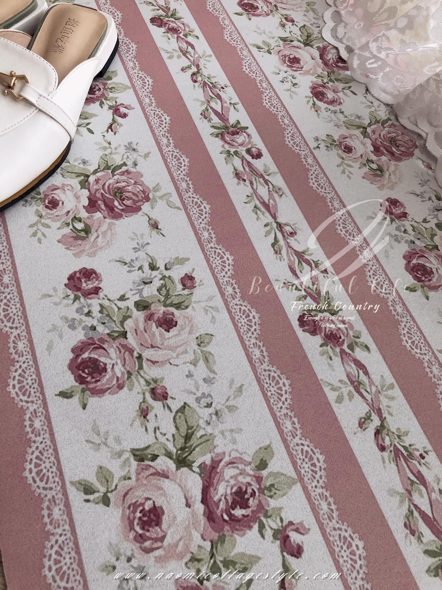 這次的新款花色很漂亮共2款:粉蕾絲很夢幻浪漫,綠圖騰很復古,實體顏色像橄欖綠,很有復古氣息。踩起來的觸感也很好,是稍有厚度的,地墊背部止滑。這材質吸水,很適合放廚房手槽或浴室、浴缸前,髒了可做清洗的軟墊材質。