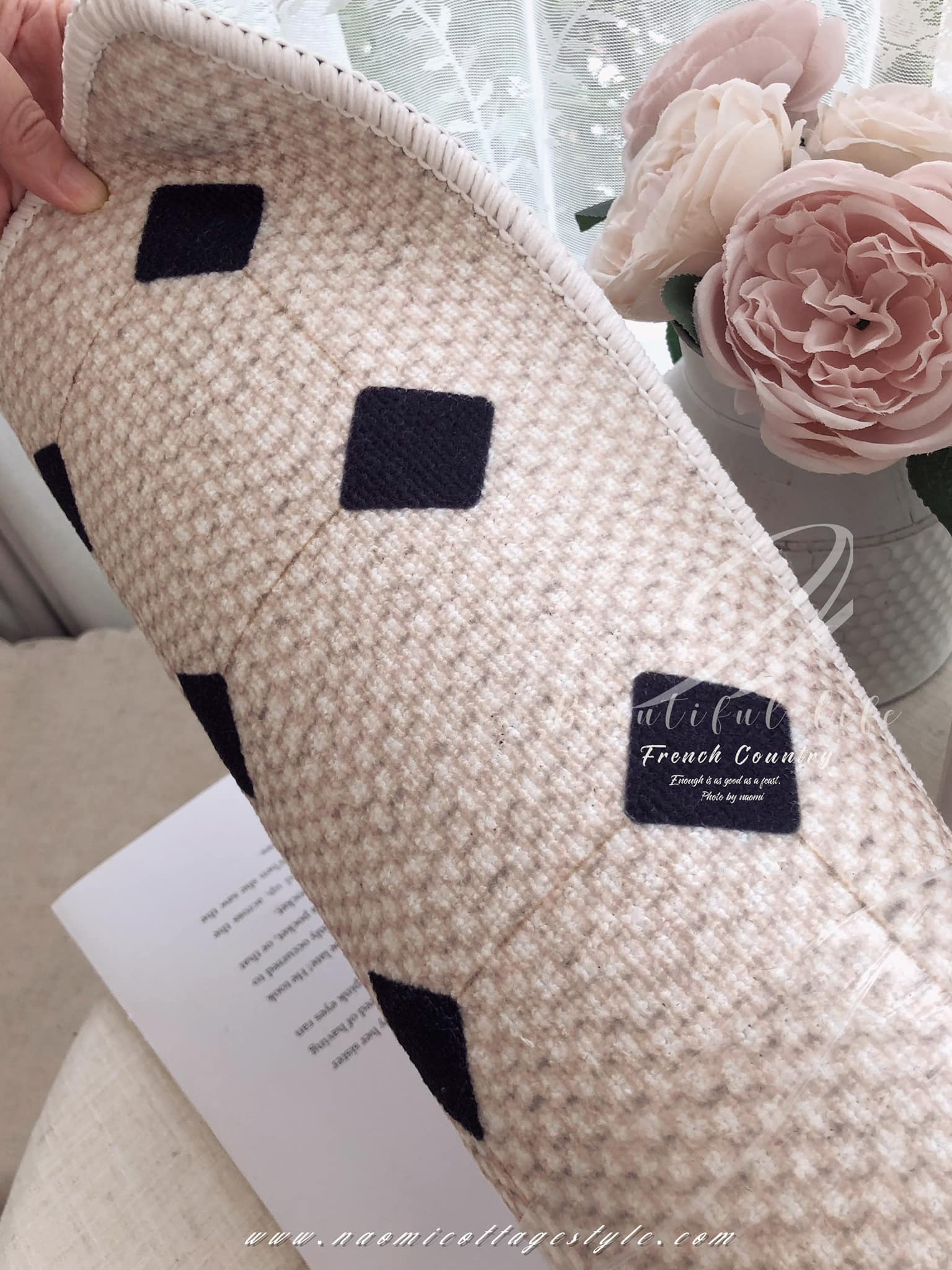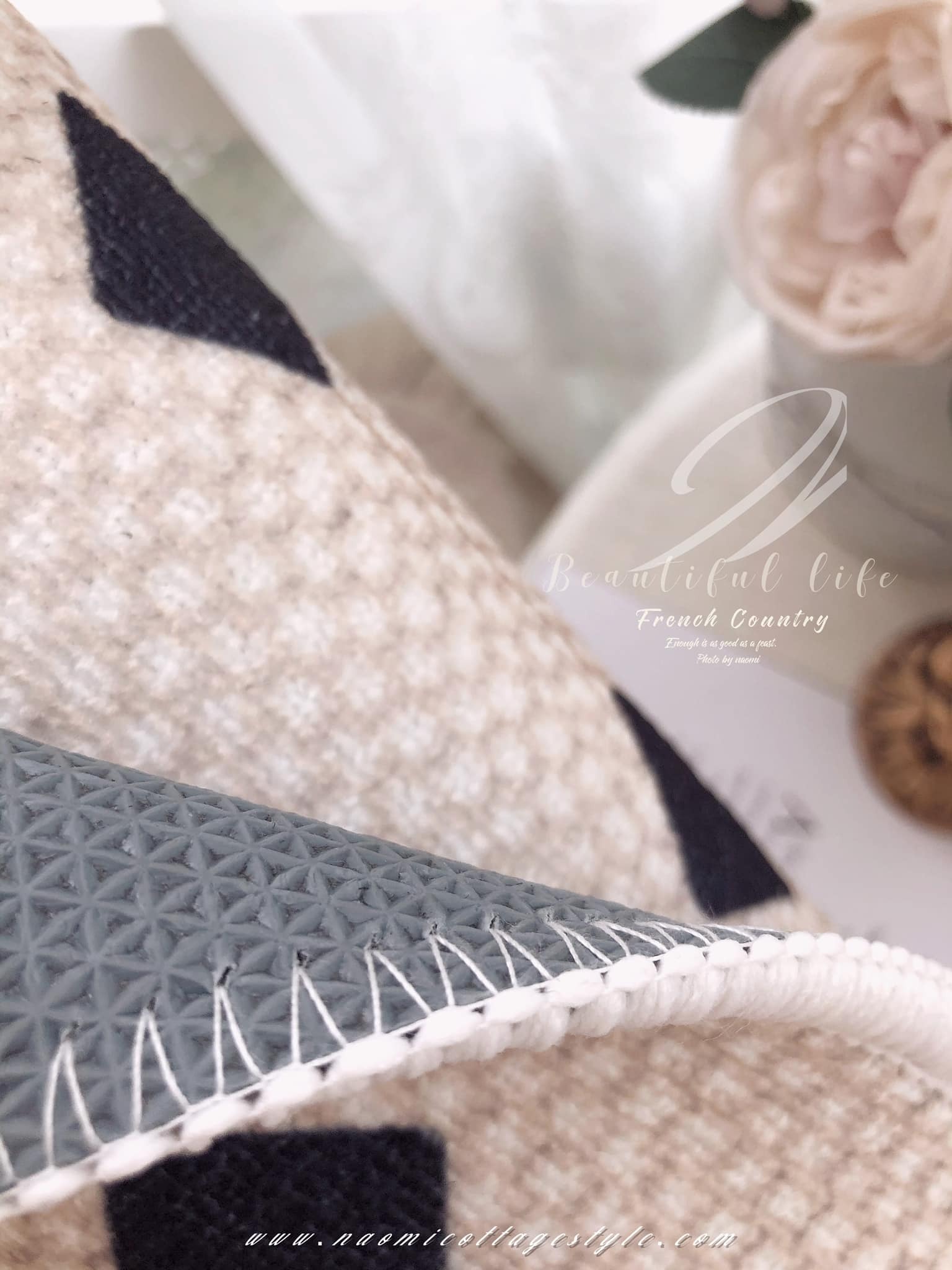 長條形狀放在窗邊、床邊、沙發前點綴空間都很適合,尤其長條型較為大型地墊清理容易。緊實的圈絨+手工包邊特別顯溫柔,踩起來的觸感很好,圈絨材質不易藏灰塵,細部圖樣呈現交織紋路,四周手工縫線包邊不脫線讓地墊鋪地更是平整不翹邊,是稍有厚度的,背面為環保TPR止滑,緊貼地面耐磨防滑。💡 注意:此地墊是仿舊風格交織紋路,有大有小的灰色紋路不是髒掉唷!(如圖所示)