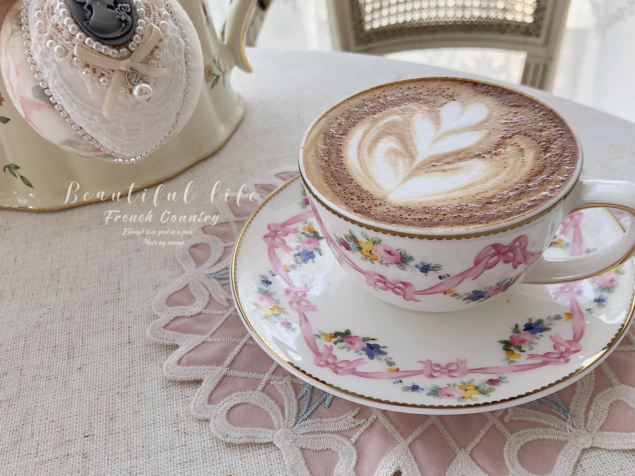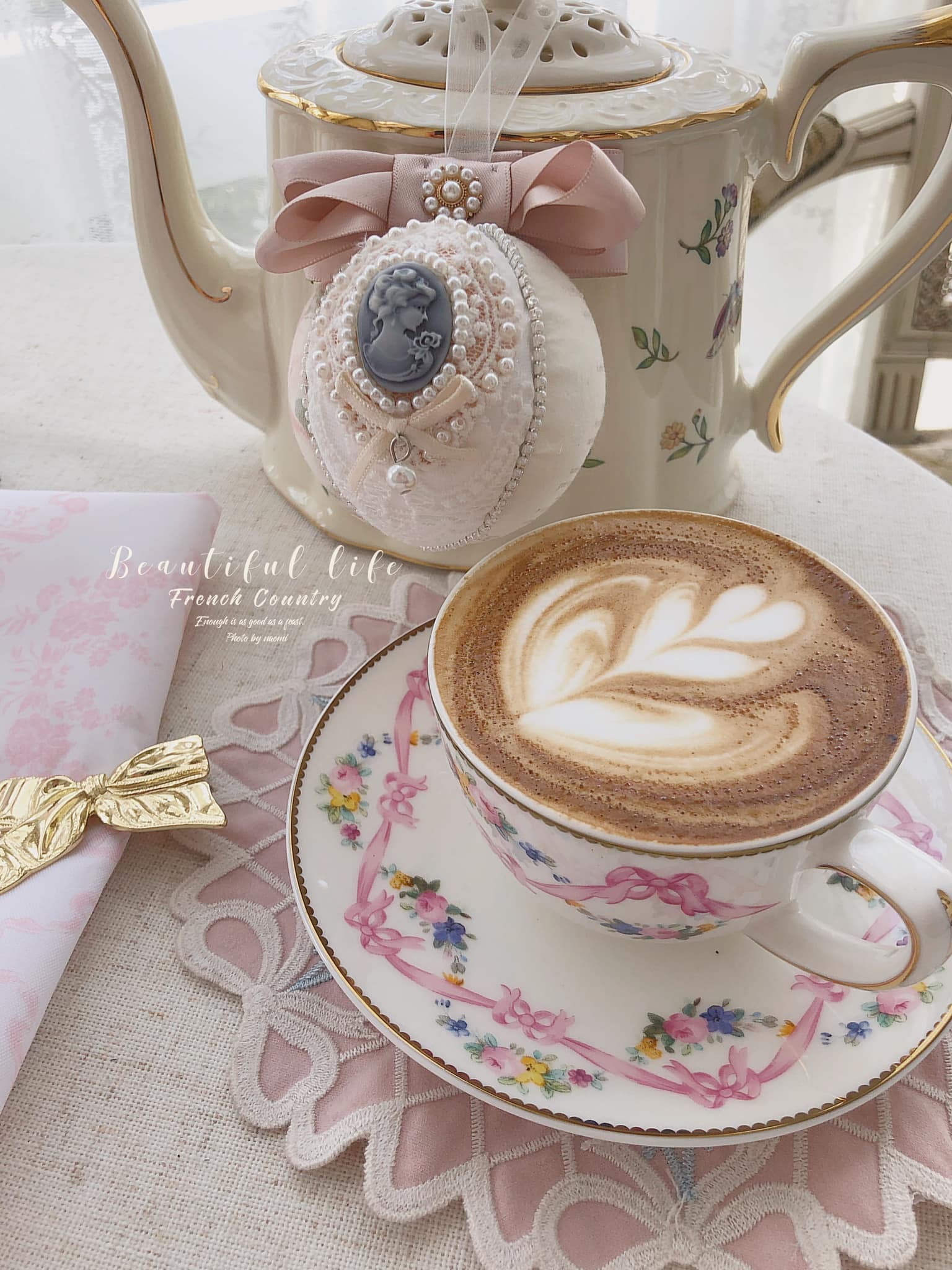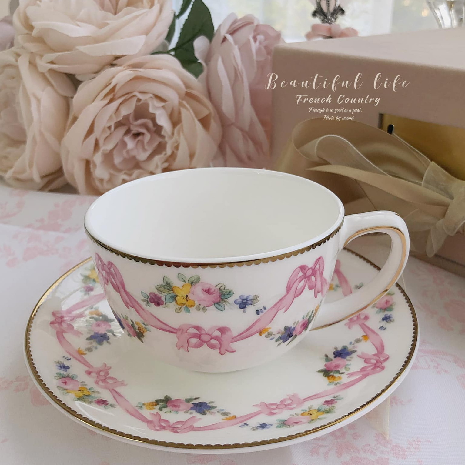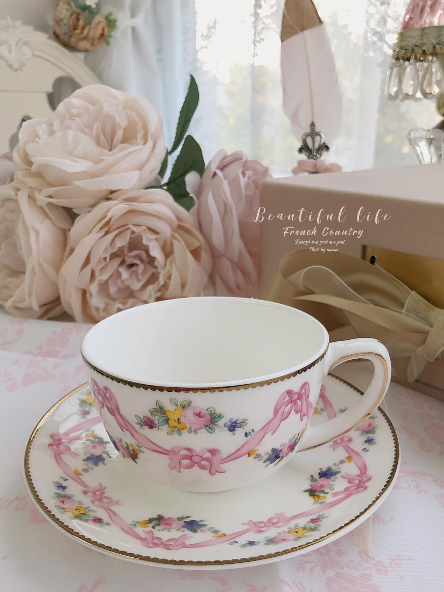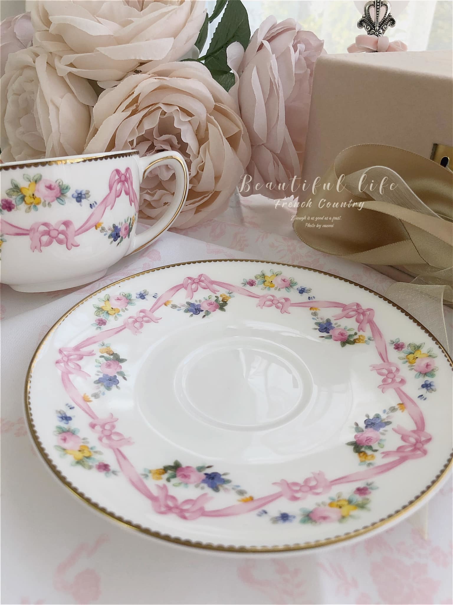 🎀復古粉色緞帶蝴蝶結花杯盤☑️商品內容:(杯盤x1)