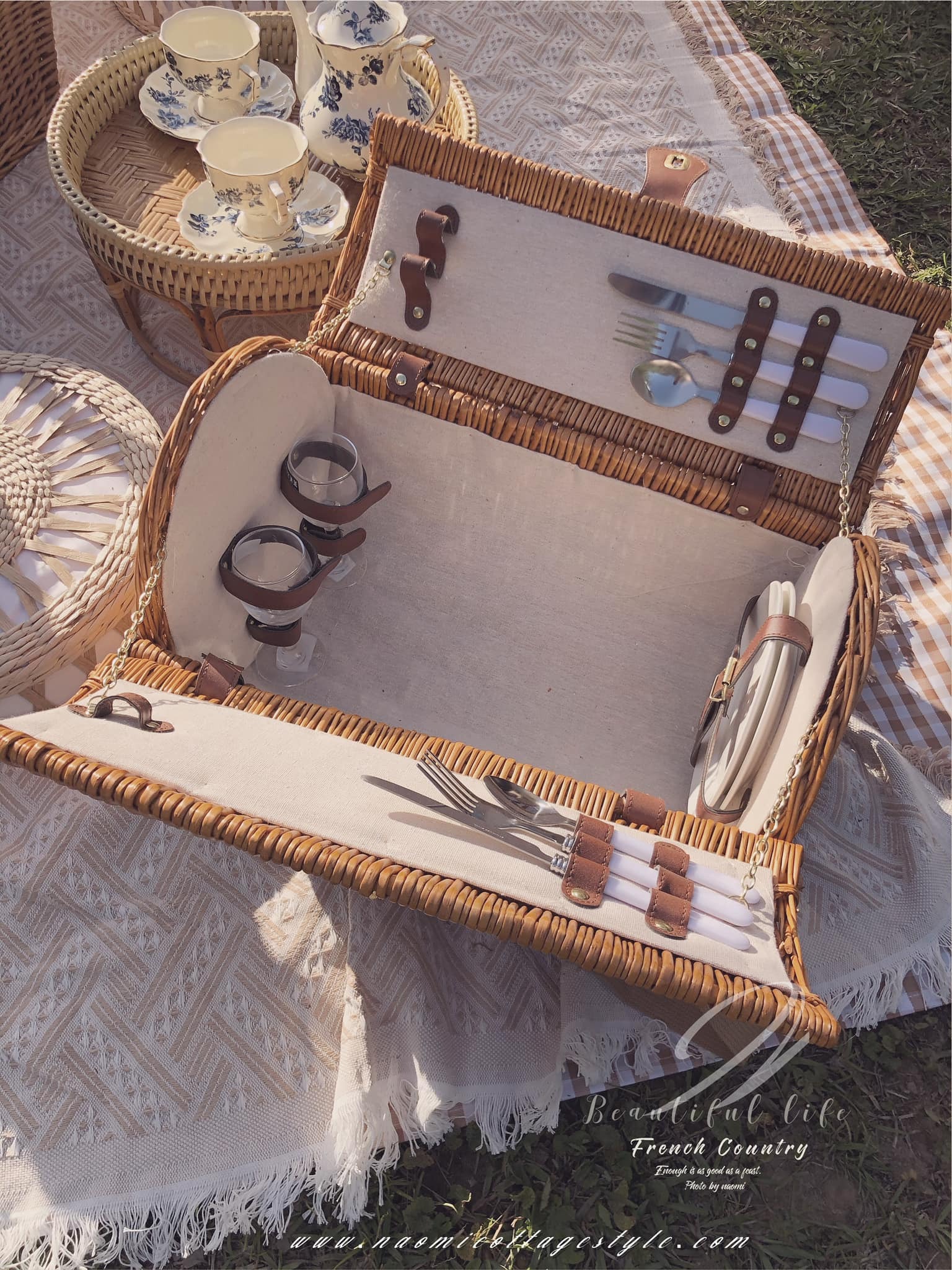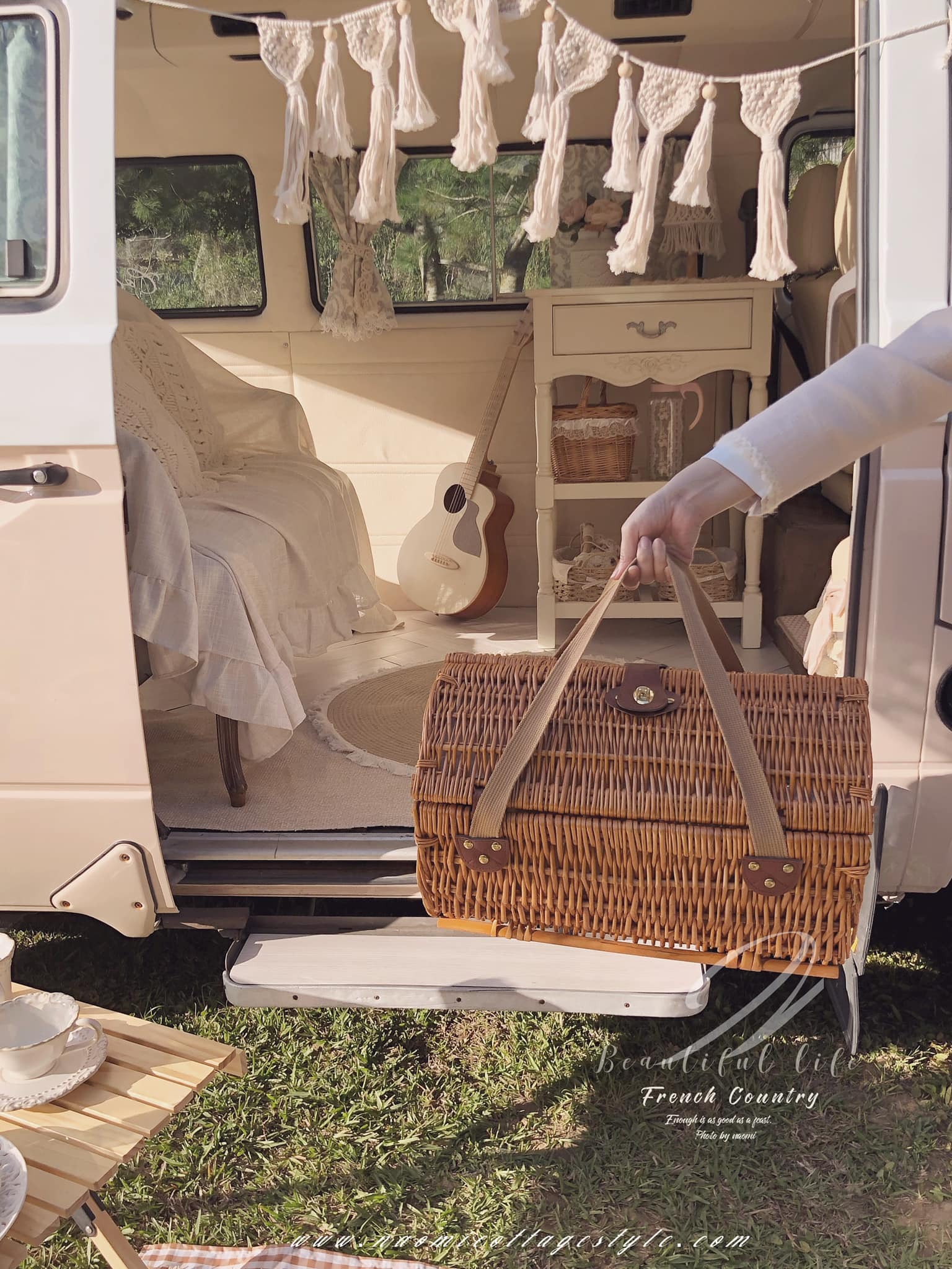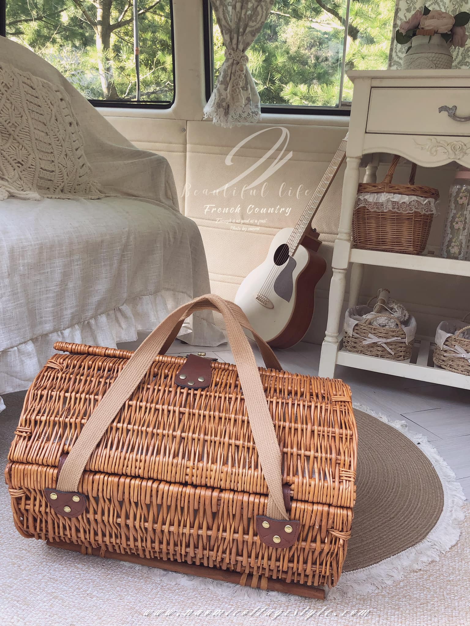 柳編皮革拼接手提設計,籃內收納空間大,還能多收納很多炊具。內置皮革扣環能穩固的將餐具保護與固定。