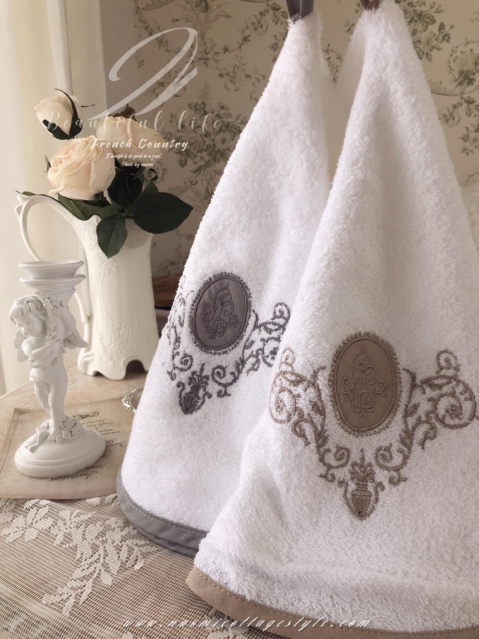 ⚜️法式優雅繡花圖騰掛式純棉毛巾 擦巾