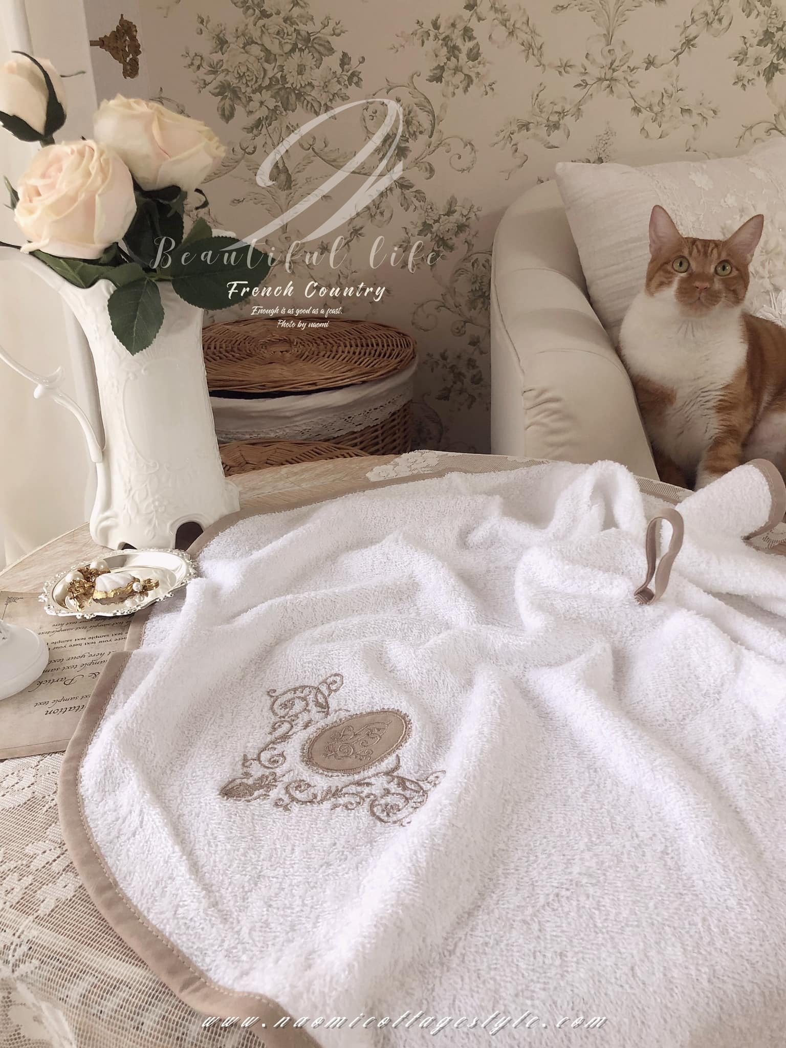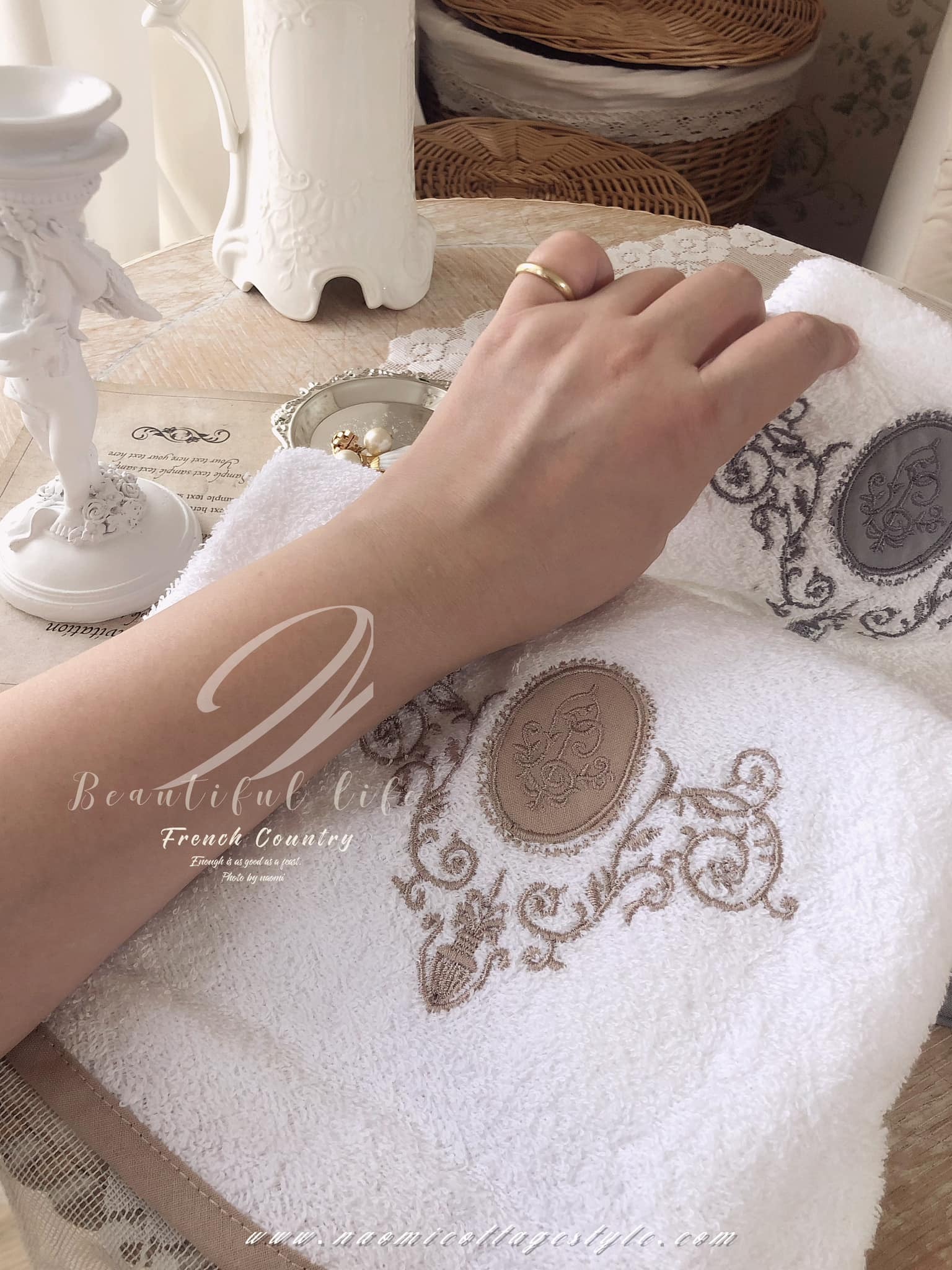 法式優雅掛式擦臉擦手巾,全棉毛巾柔軟吸水性好。攤開70cm廚房使用、廁所使用都很適合👍