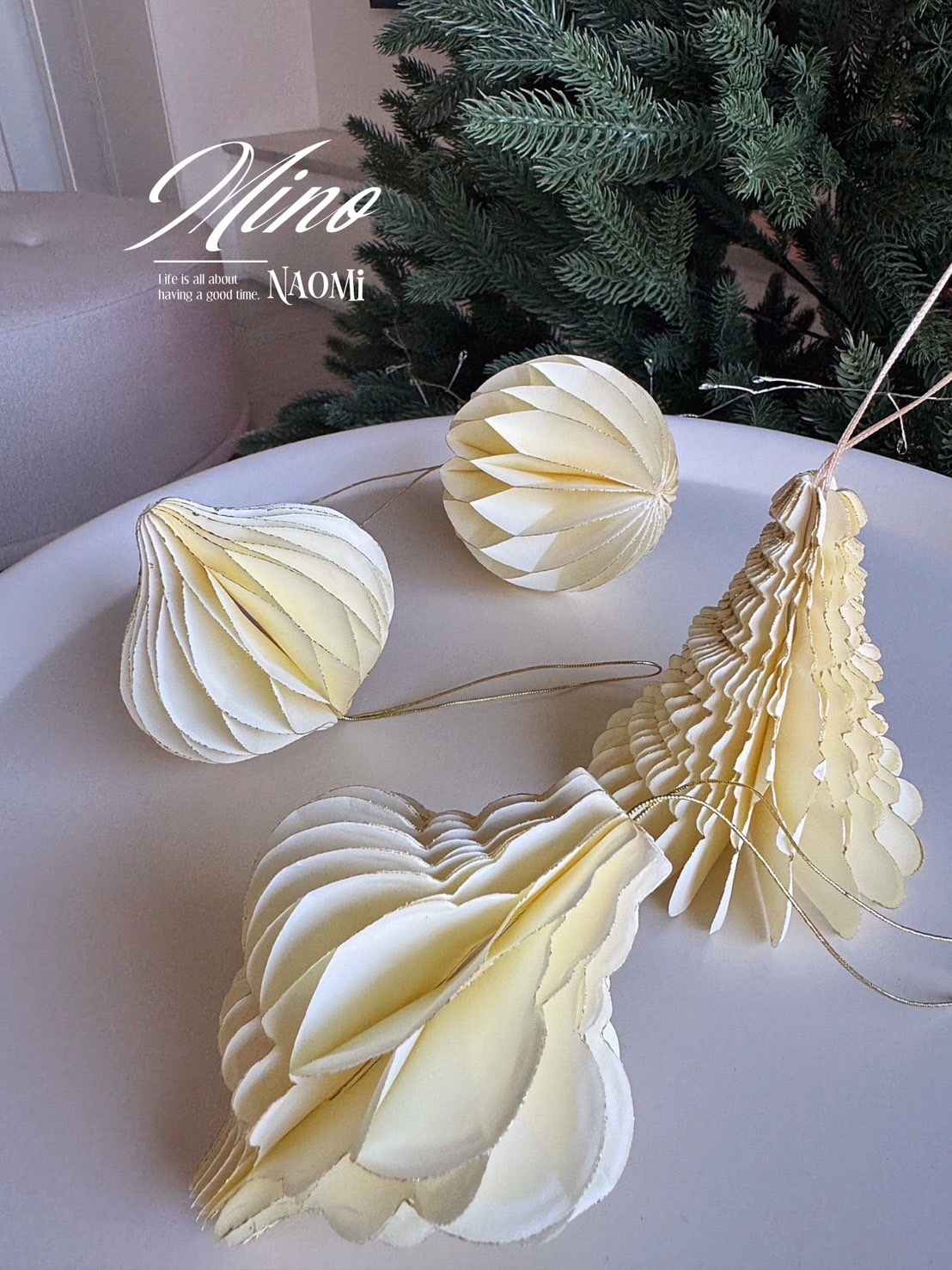 除了一般常見的整組掛飾外,不妨在樹梢加點手工褶紙的小掛件,為你的聖誕書增添別樣的風采與層次感🌟
