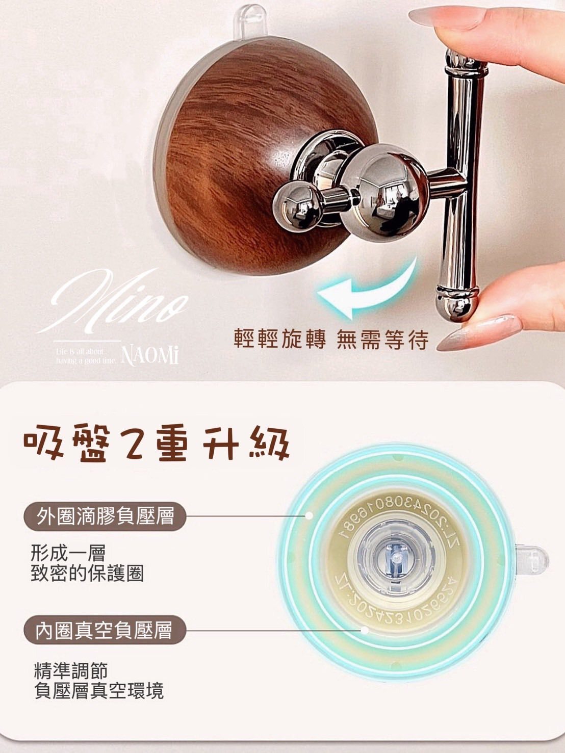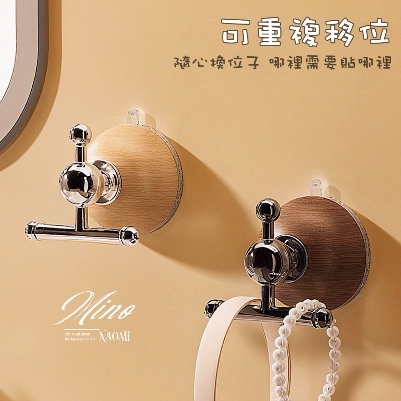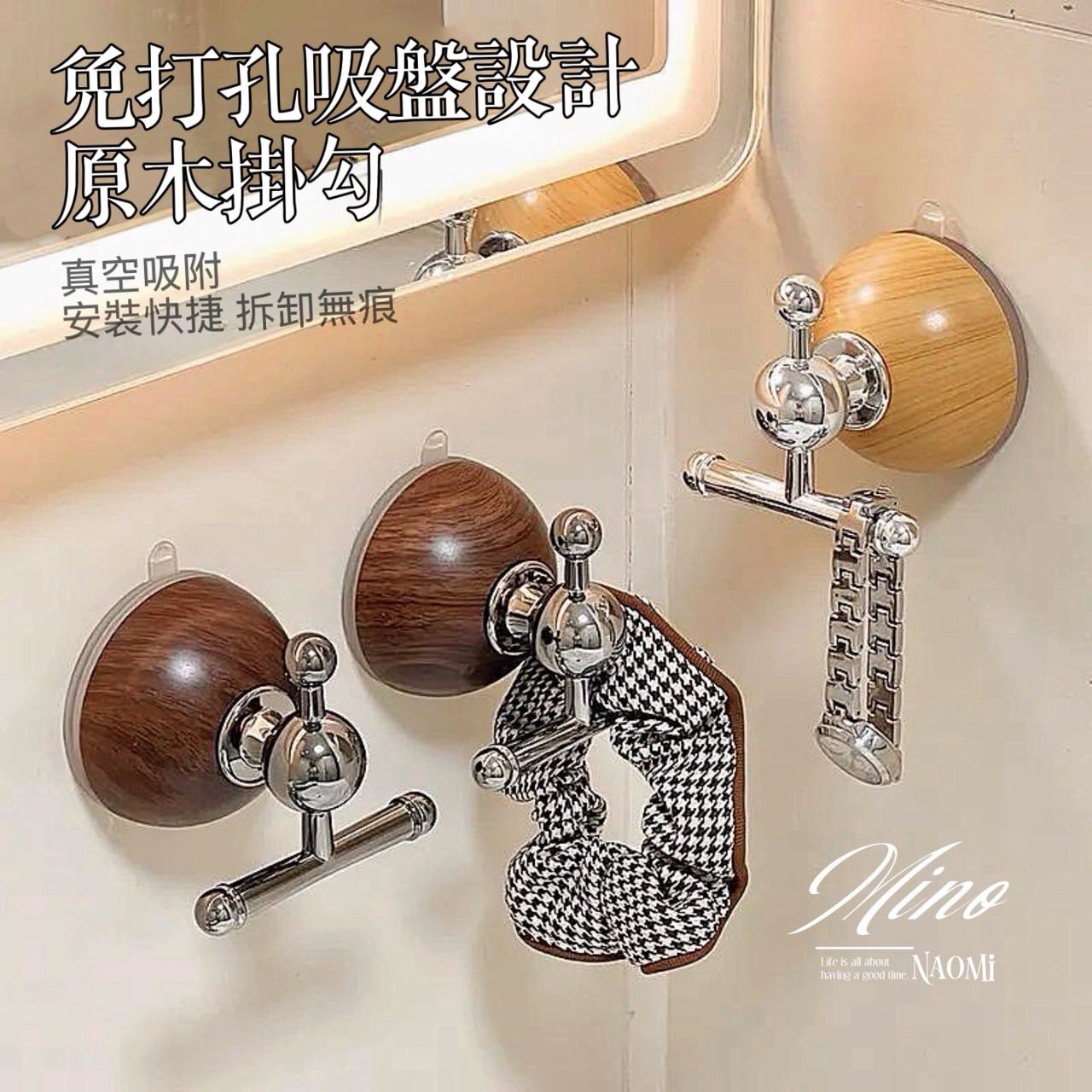 《免打孔木紋吸盤掛鉤 玄關浴室都實用》