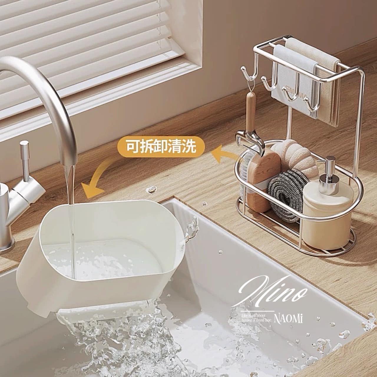 ✔️ 多功能收納區,可放洗碗精、海綿、刷具、鋼絲球,整齊有序