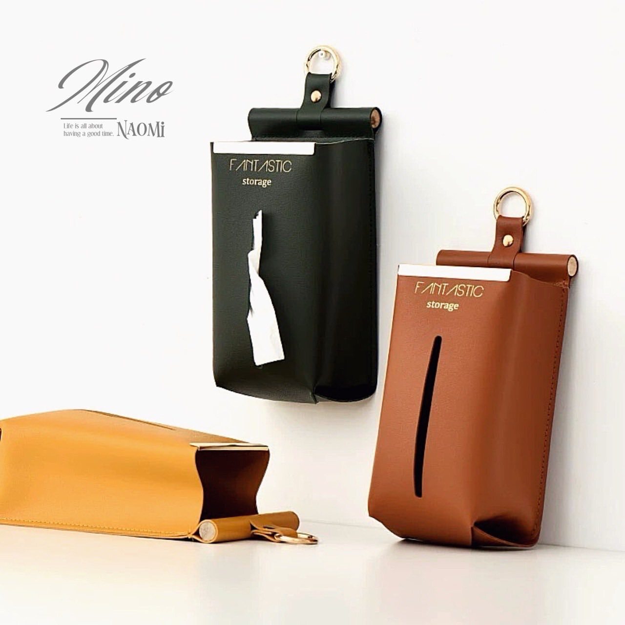 《復古皮革掛式紙巾收納袋|隨手抽取超方便》