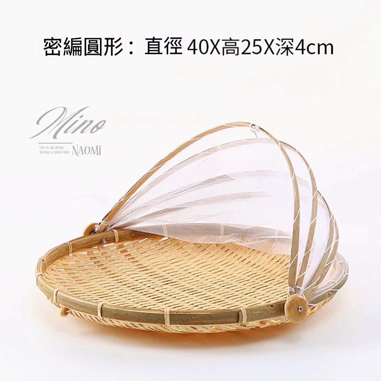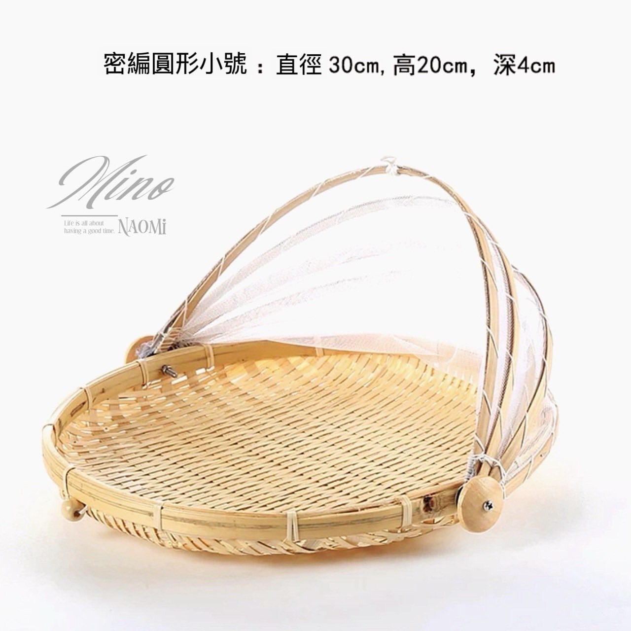 《手工竹編網蓋防塵籃|復古圓簸箕式收納筐》