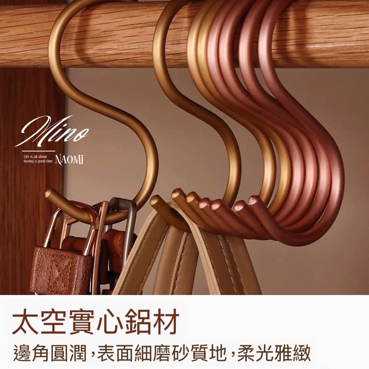 這款 實心鋁合金 S 鉤,細緻磨砂質感,光澤柔和不生鏽,不僅堅固耐用,更能點綴你的衣櫃、廚房、浴室空間,穩固承重、不傷物品,讓收納變得更有品味!