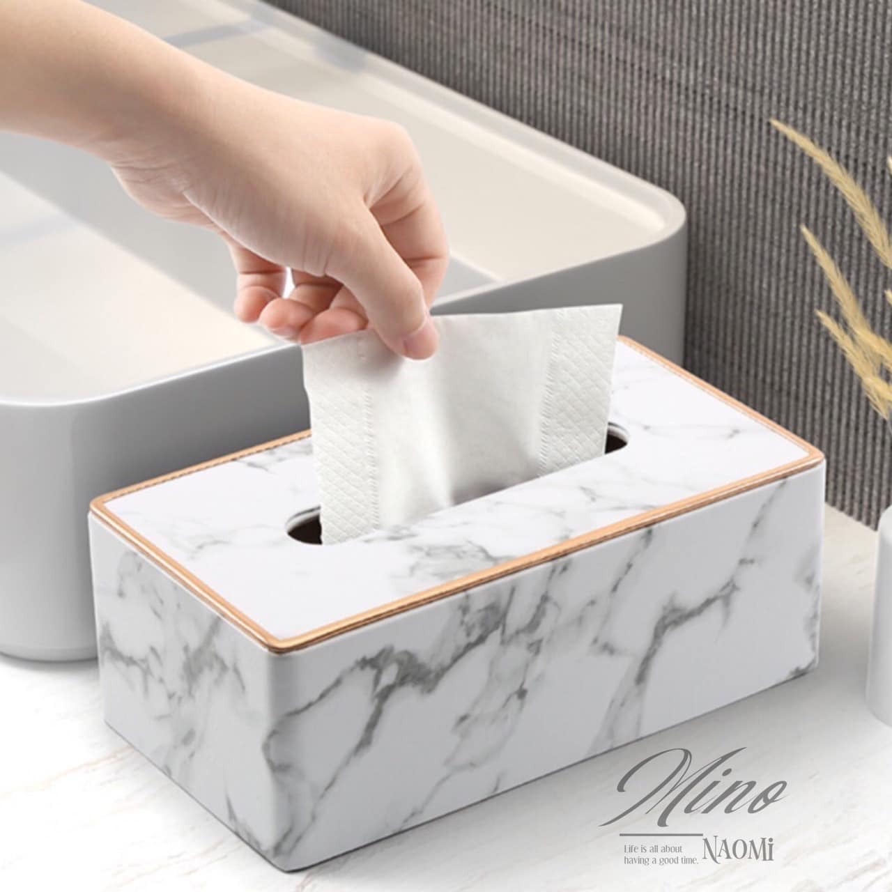 《歐式輕奢感大理石金框皮革紋手工面紙盒》