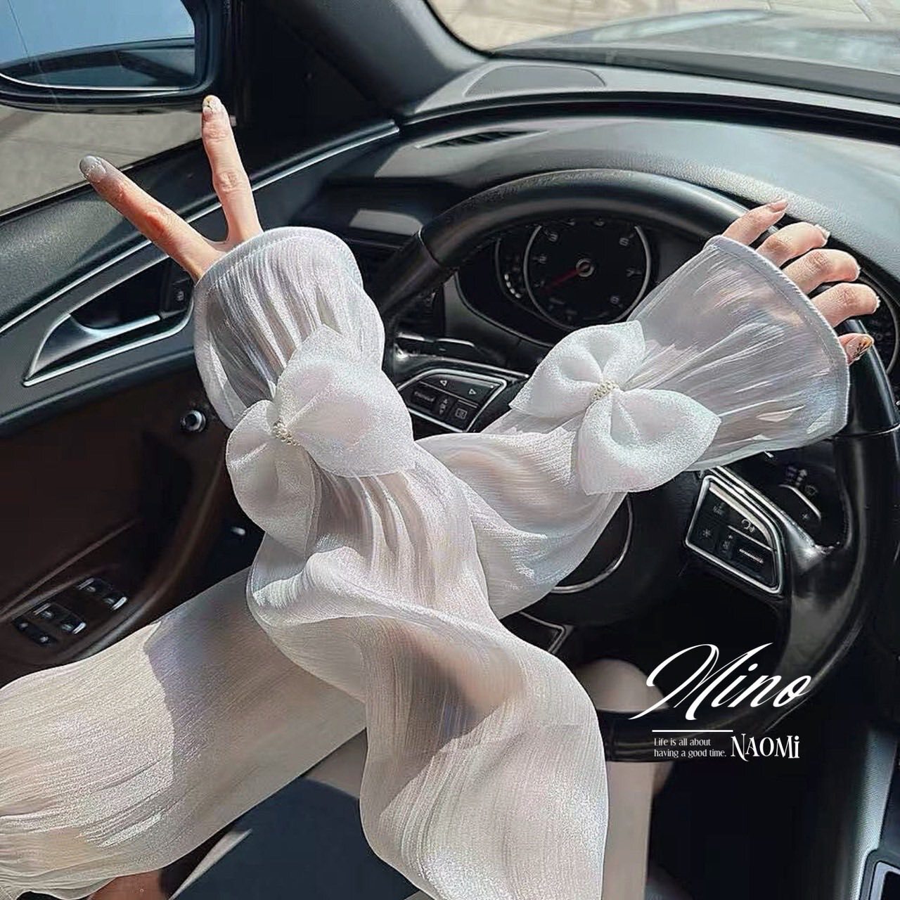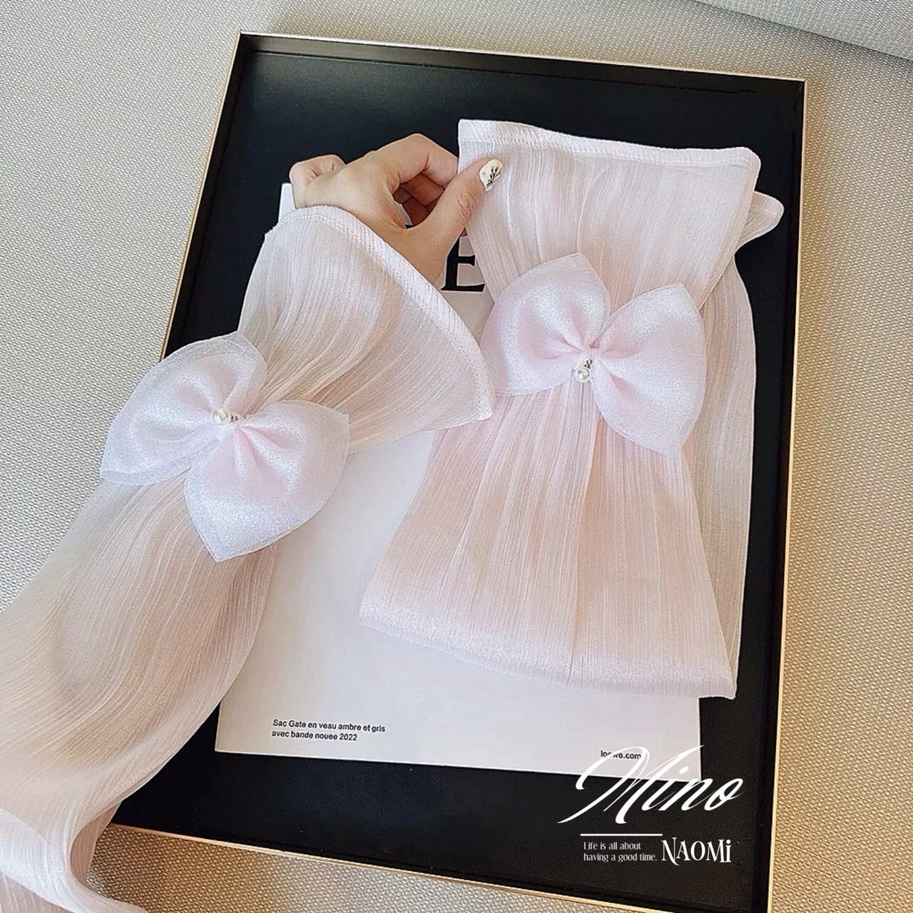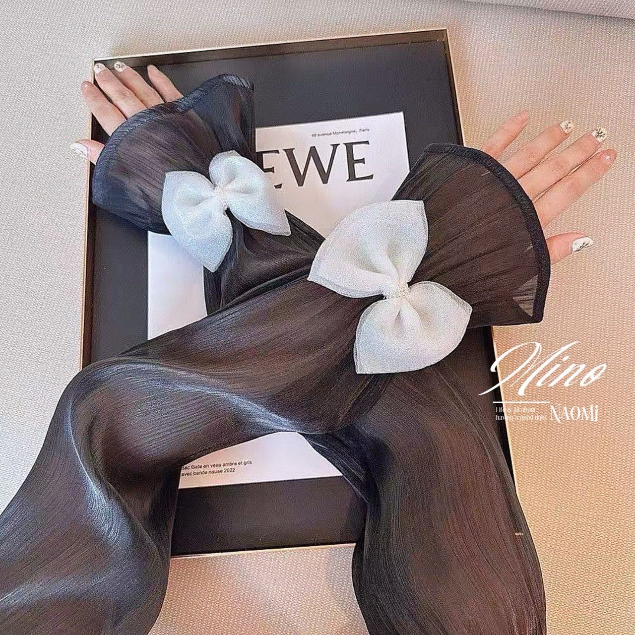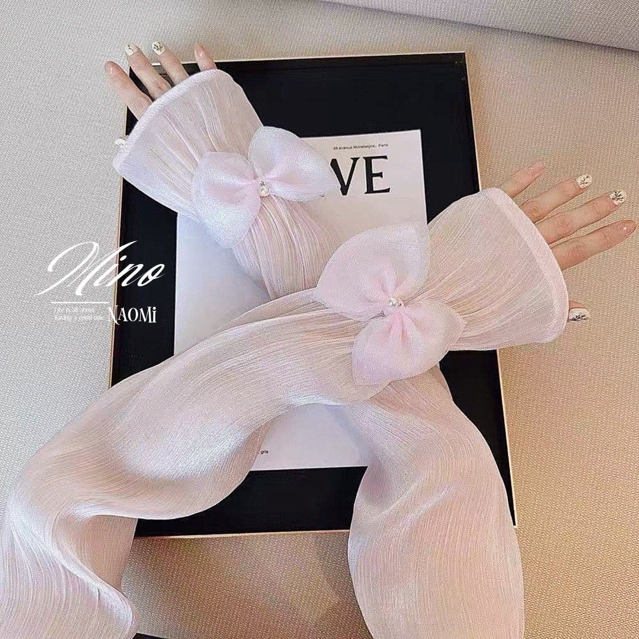 《法式優雅緞面泡泡袖🫧蝴蝶結防曬袖套》