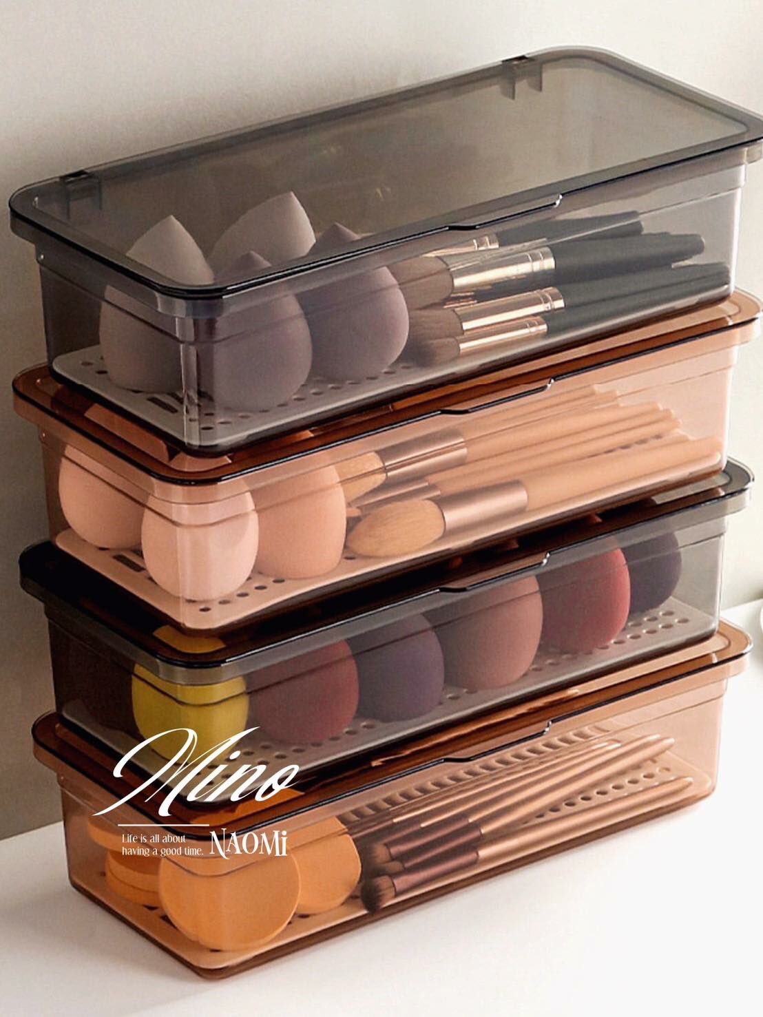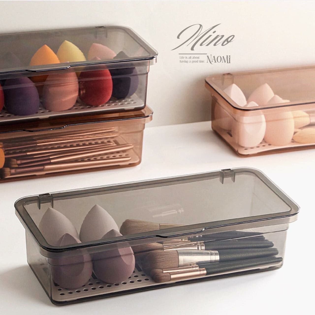 ✔ 瀝水隔板:底部瀝水設計,剛清潔完的美妝蛋、化妝刷、粉撲等都能直接放入,保持乾爽不發霉!