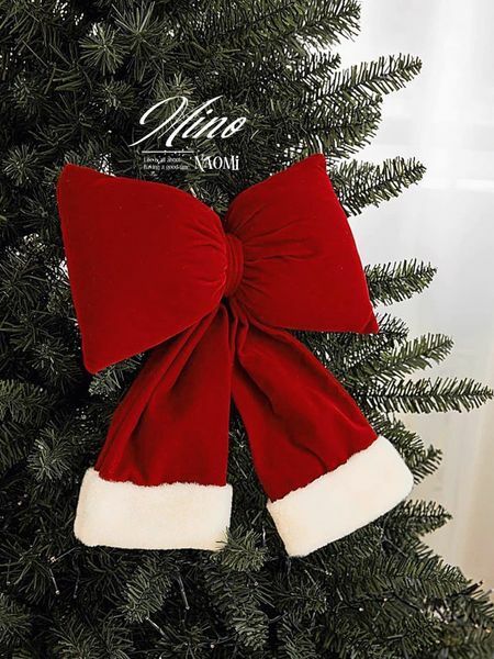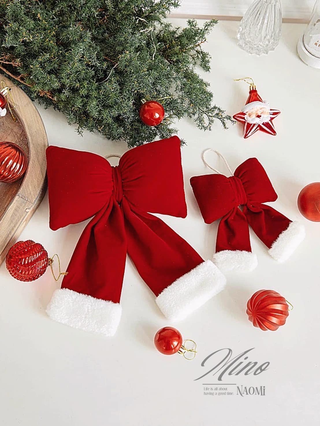 《聖誕🎀短兔絨紅緞帶掛飾 門上掛飾 聖誕樹掛飾 櫥窗掛飾 居家擺飾》