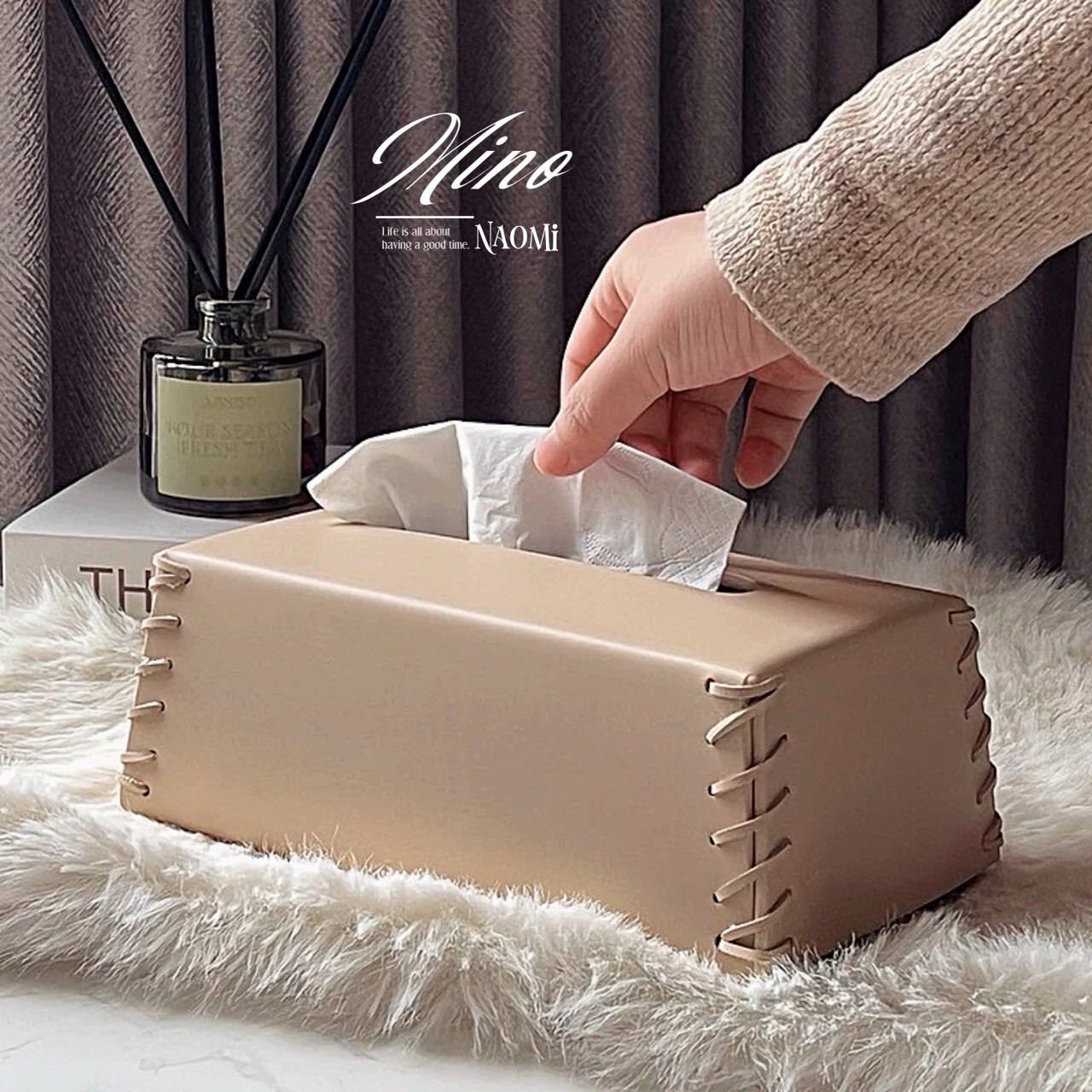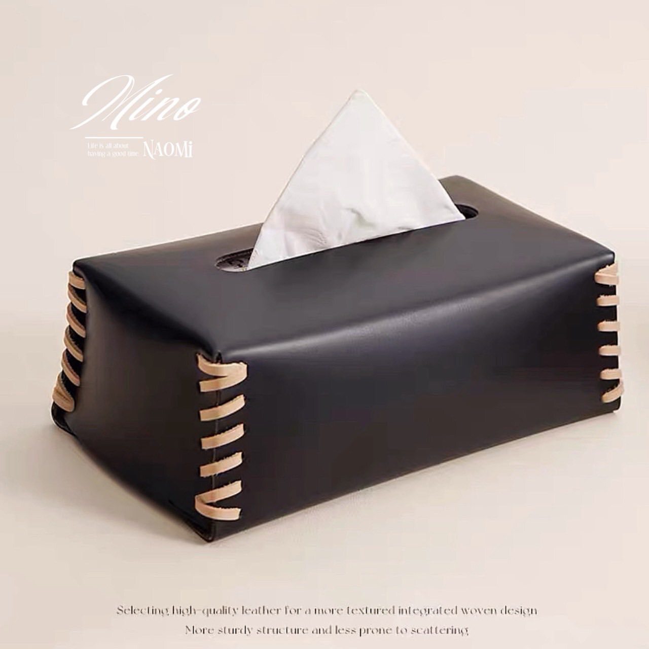 《輕奢縫線交織皮革紙巾盒|質感桌面美學首選》