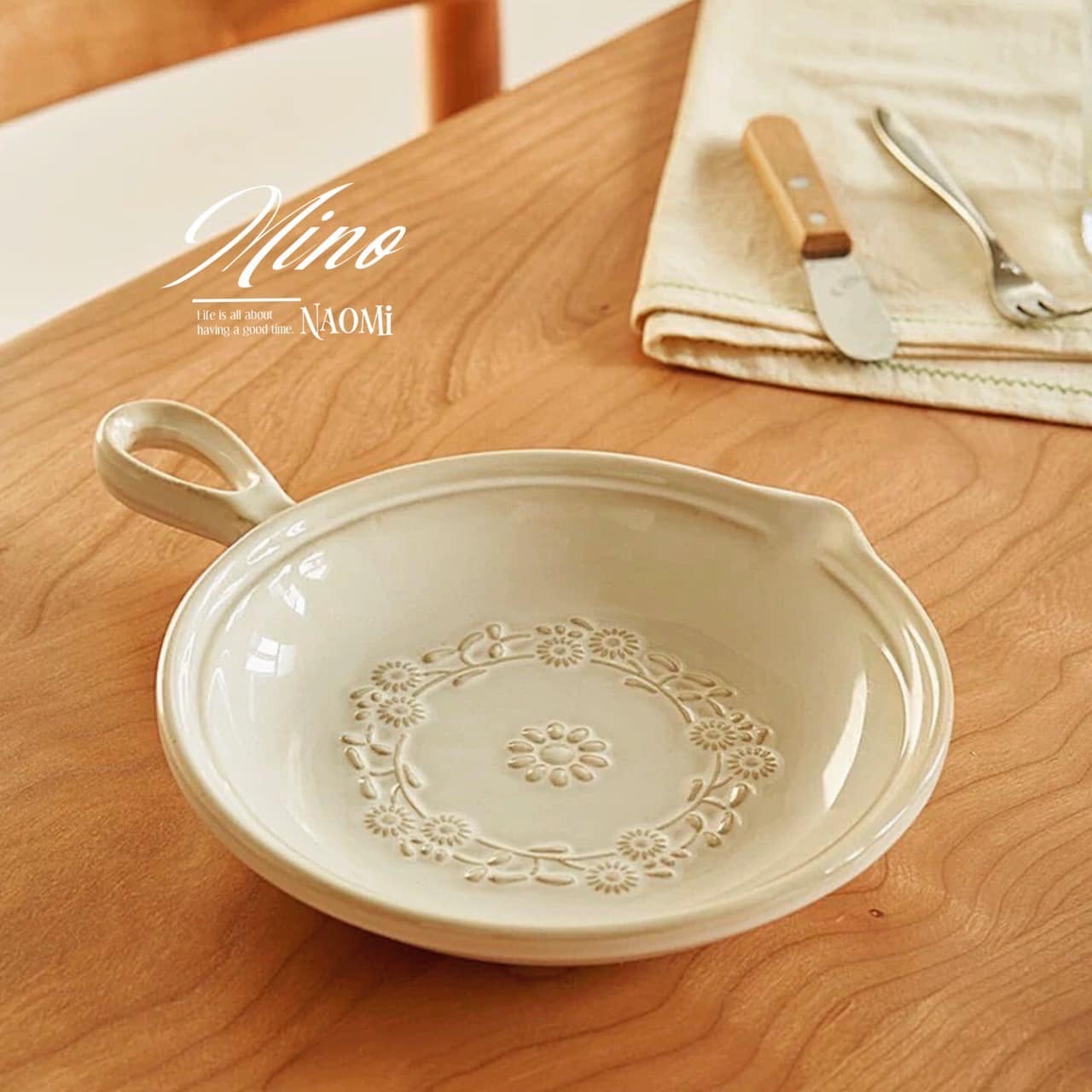 🌼鄉村復古窯變感手工握柄陶瓷烤盤、牛排盤》