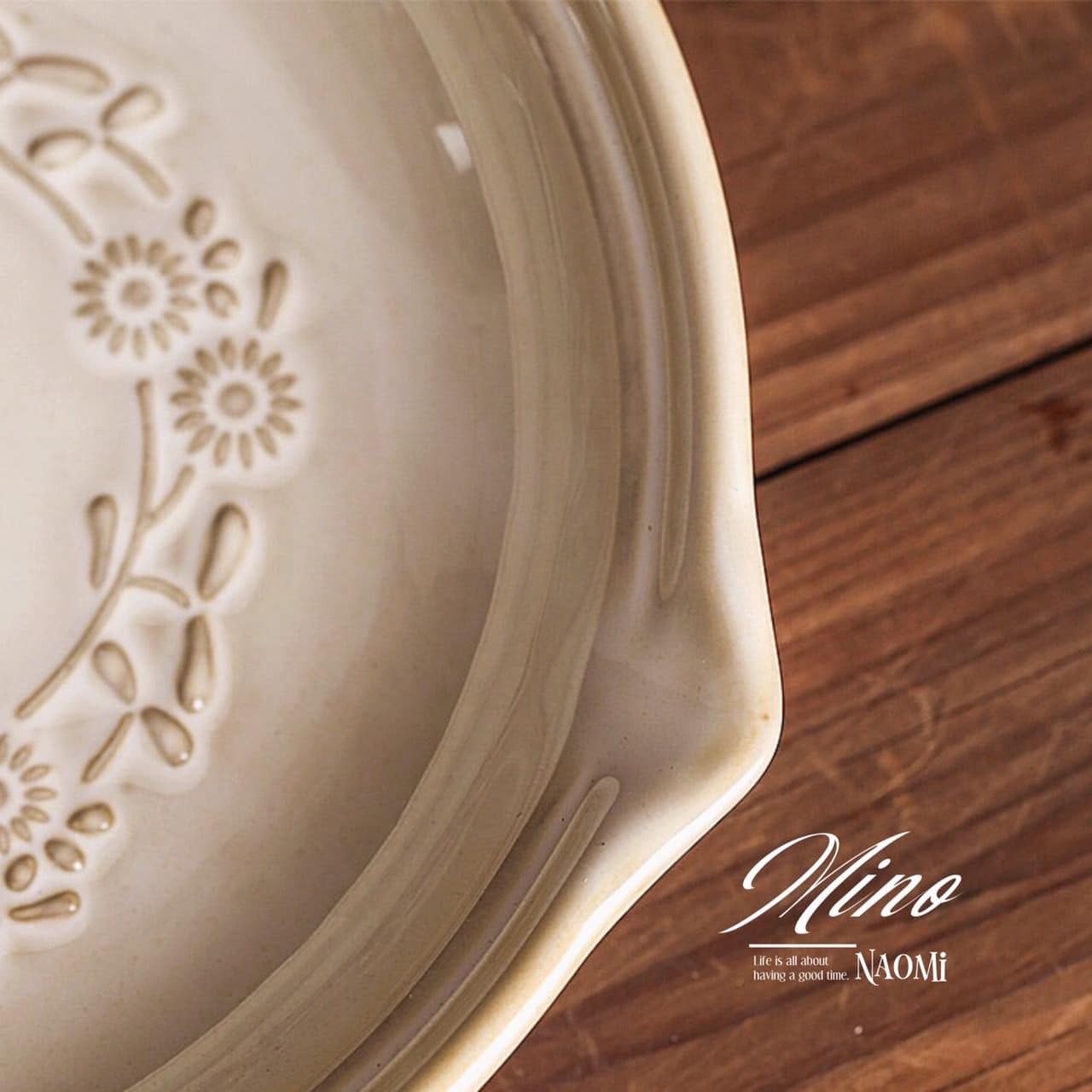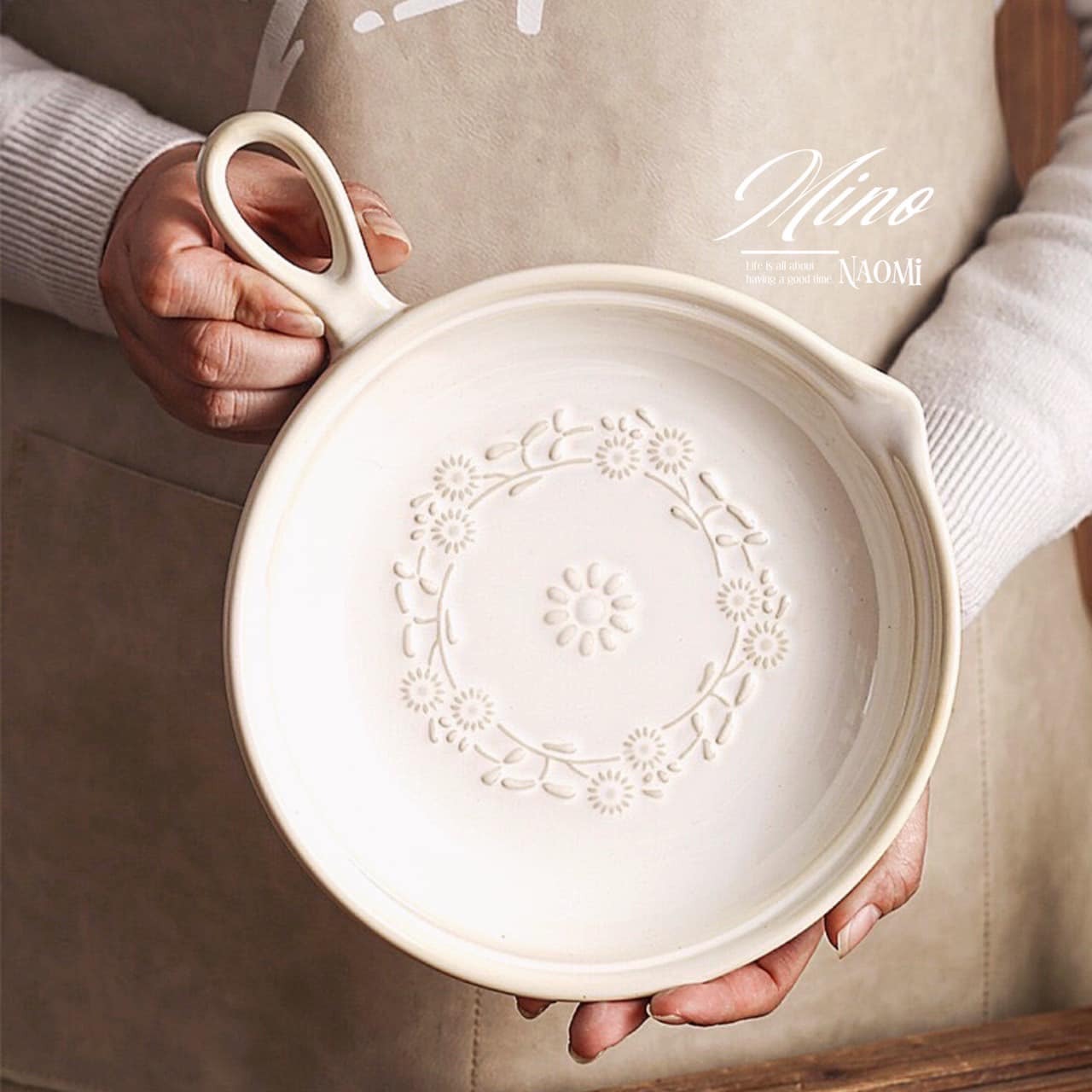 手工自然窯變的奶油色搭配經典的鄉村復古雛菊造型,清晰自然的浮凸紋理,讓你的餐桌大菜溫暖又充滿了儀式感✨