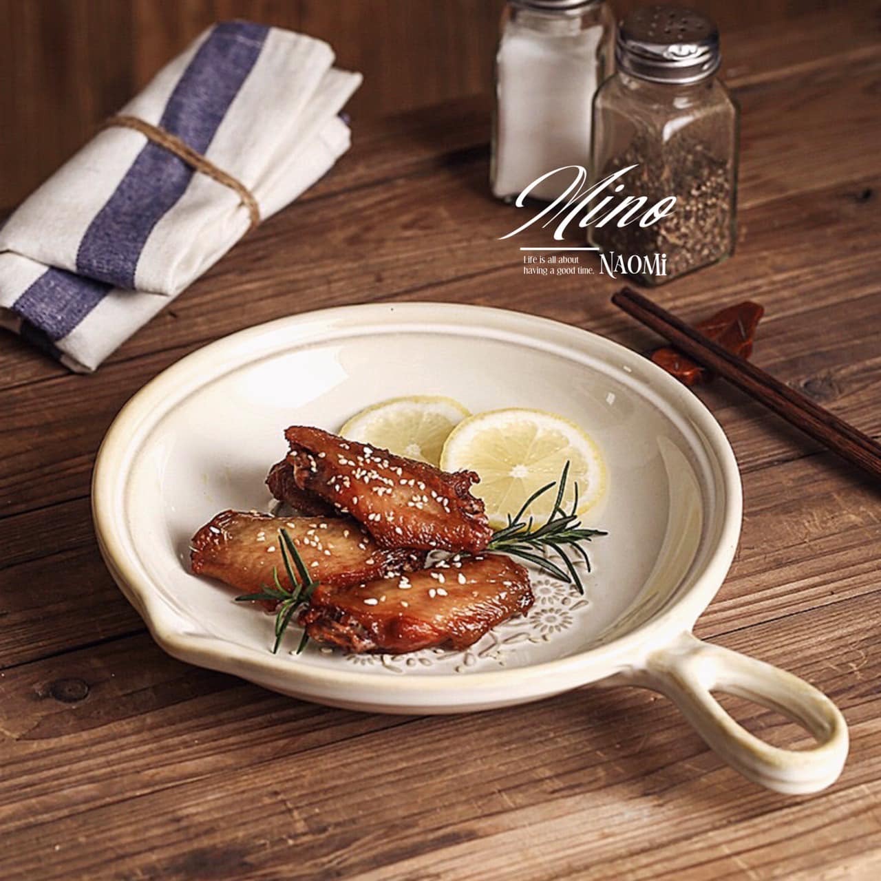 《🌼鄉村復古窯變感手工握柄陶瓷烤盤、牛排盤》