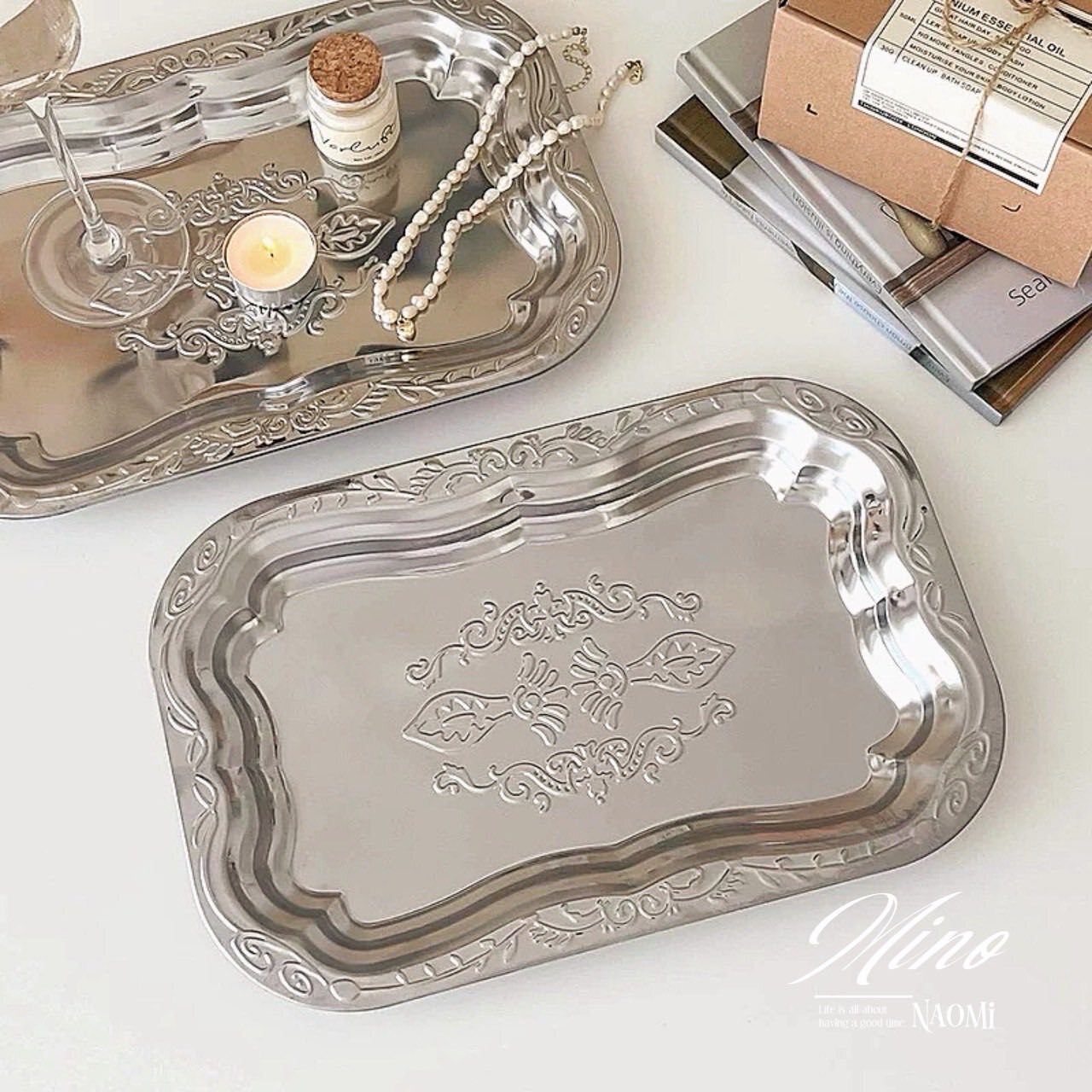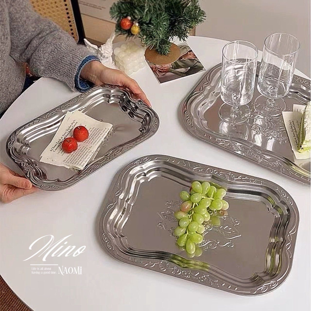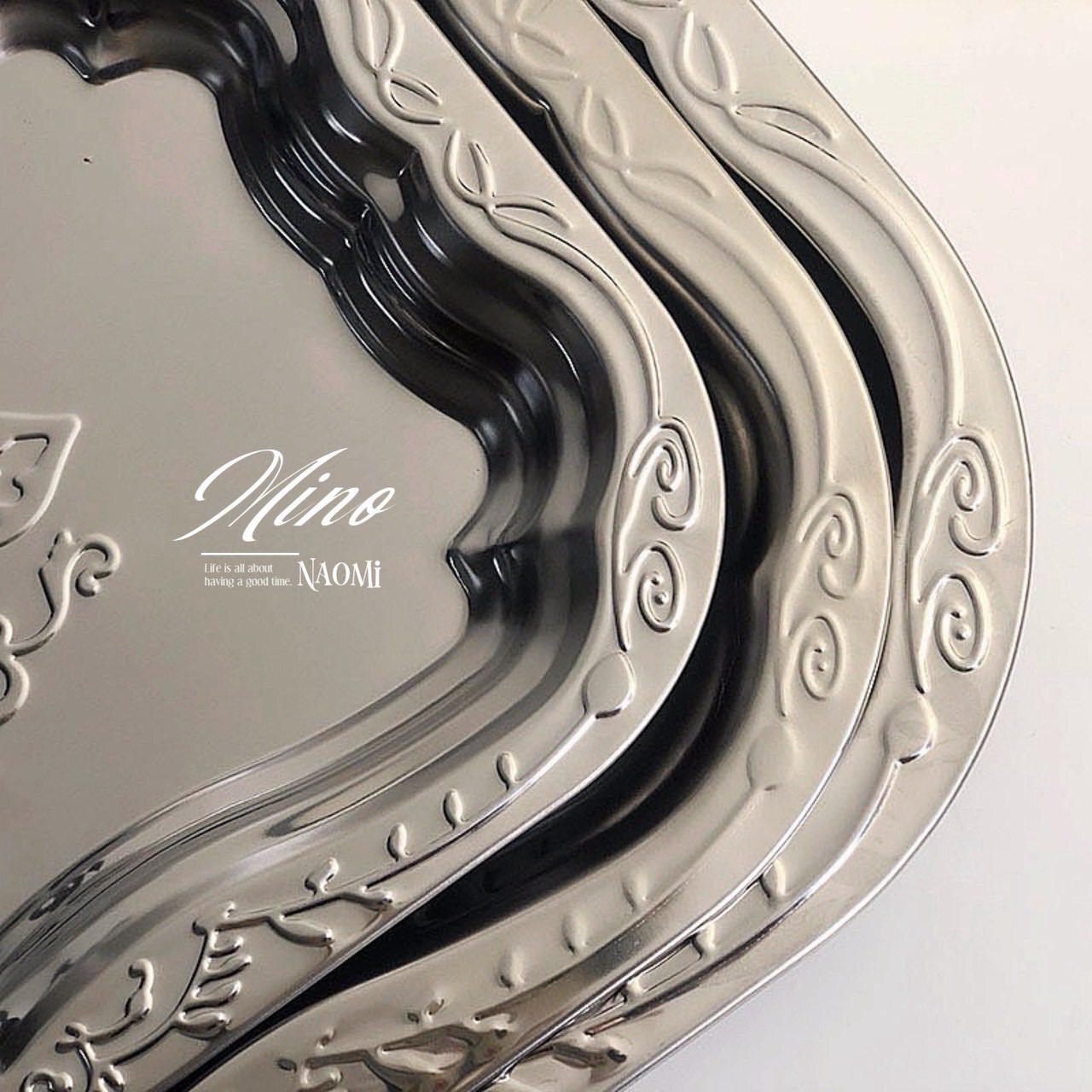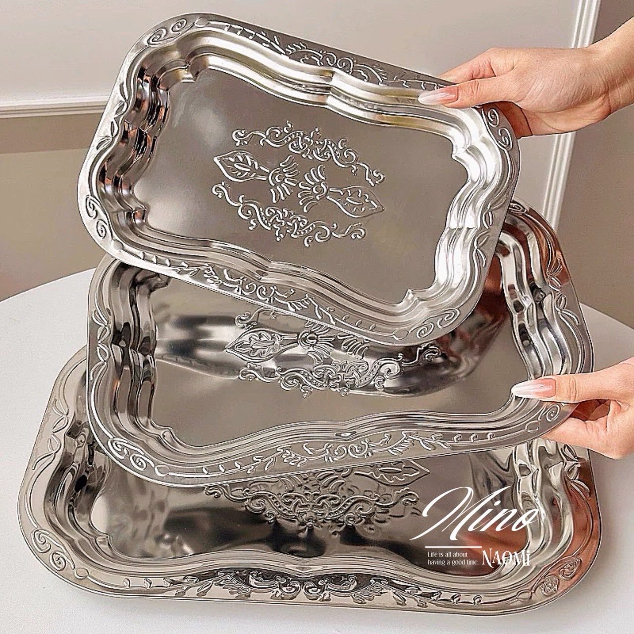 英式復古托盤花紋不鏽鋼金屬點心水果盤(三件組)大中小》