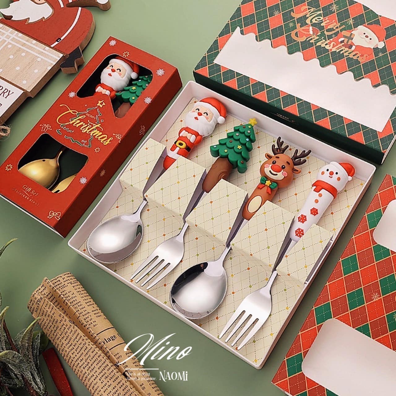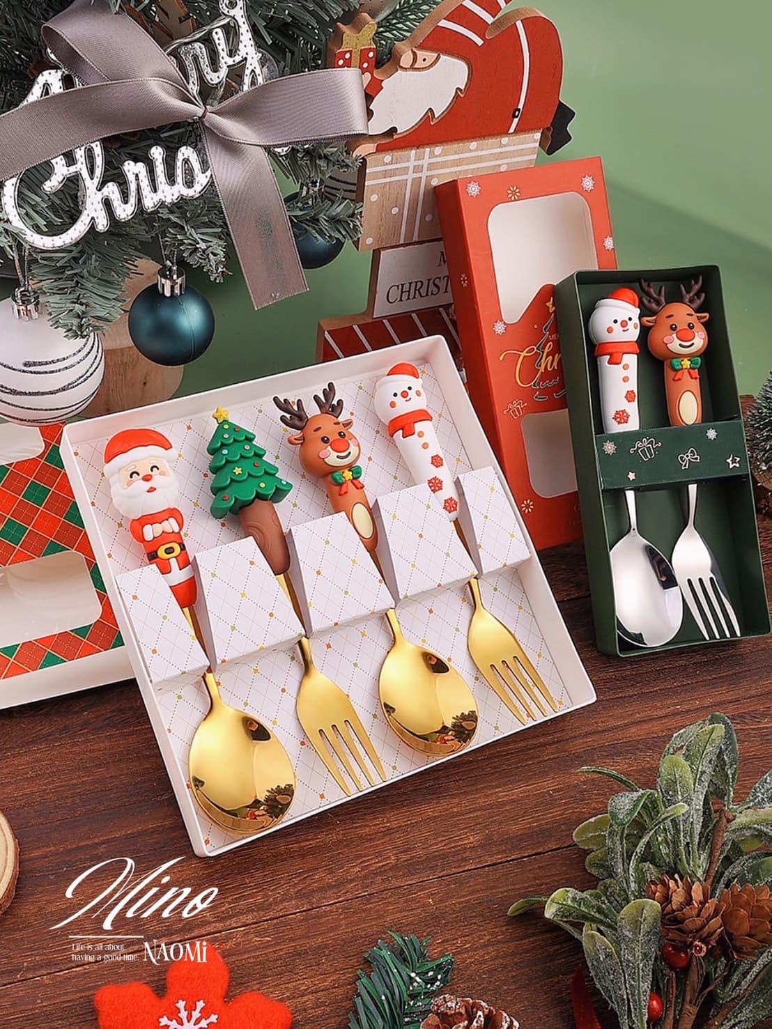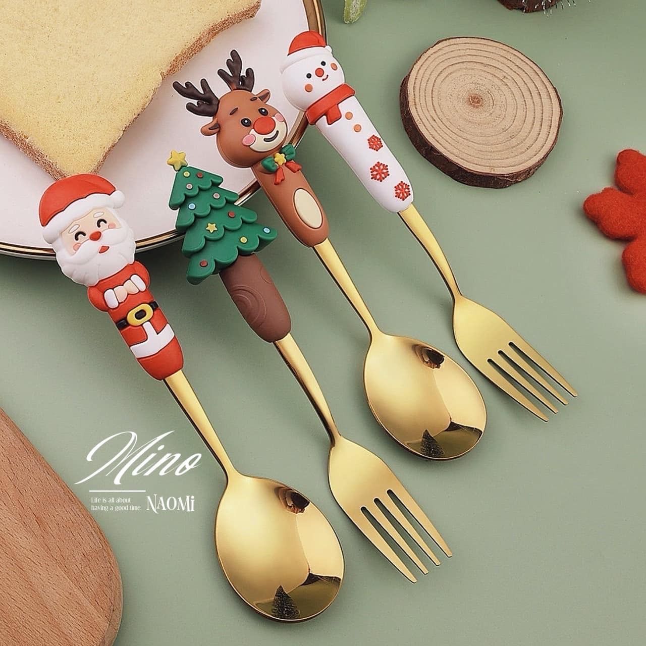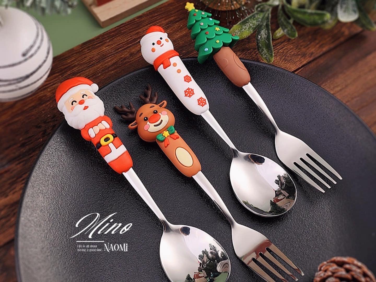 🎅🏻Q版聖誕🫎叉勺二入組、四件餐具組|咖啡勺、點心勺、水果叉》