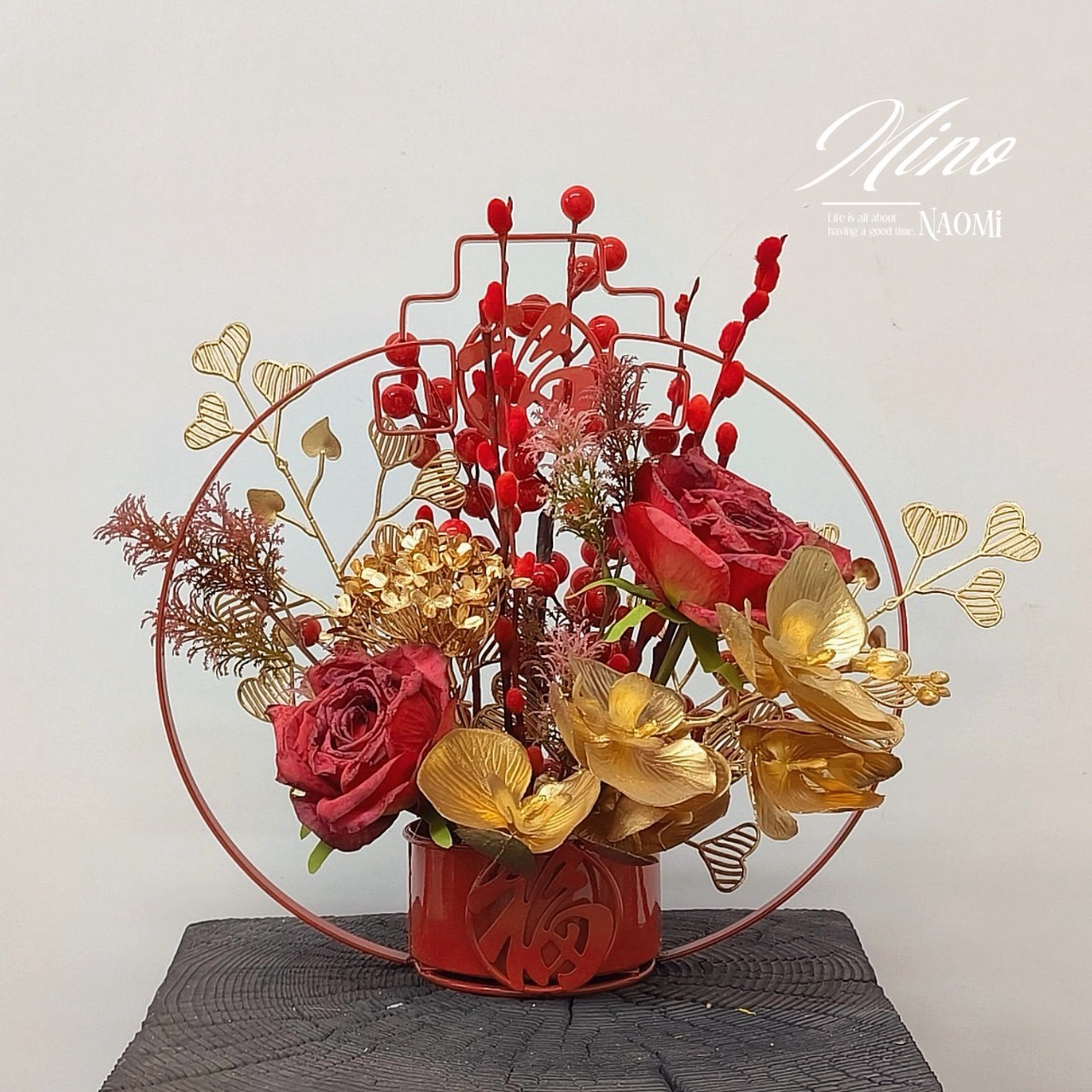 🏮 富貴迎春・新中式年宵花擺件|新年中式花|鐵藝花器|仿真花擺件》