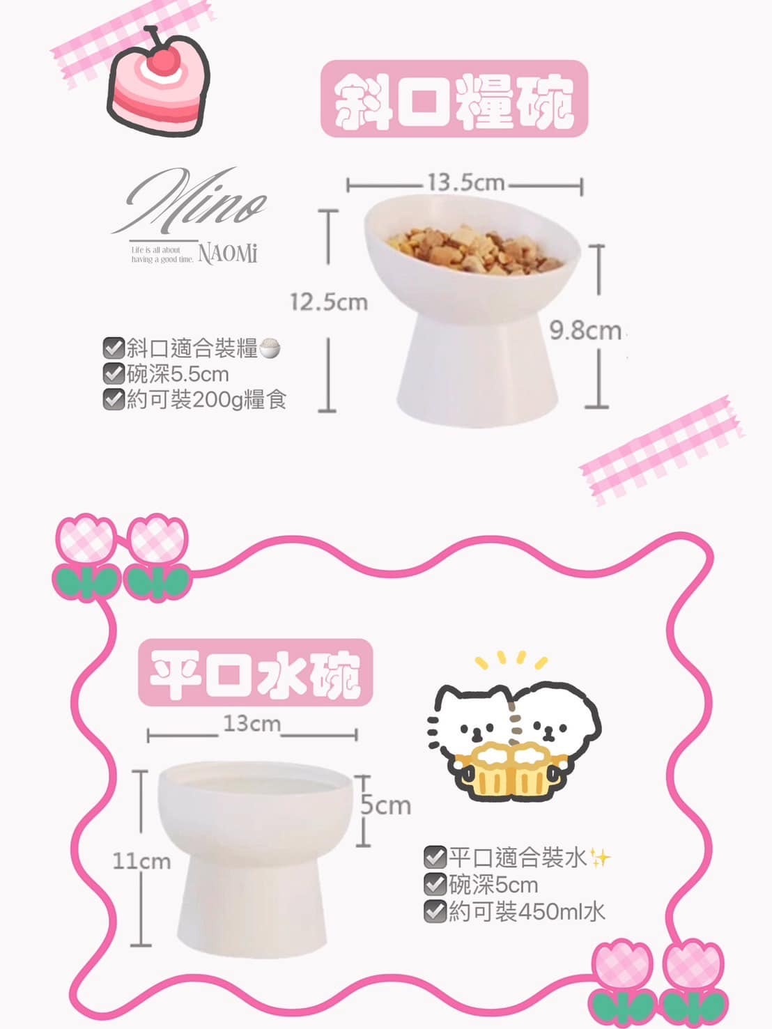 《🐱精緻毛孩🐶貼心斜口高腳護頸陶瓷食器、糧碗、水碗》