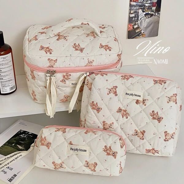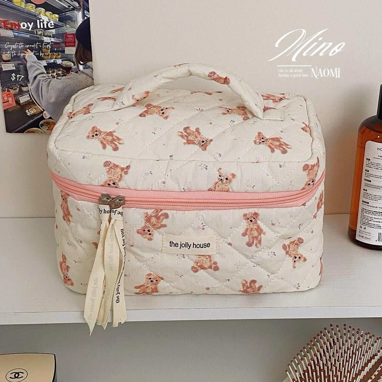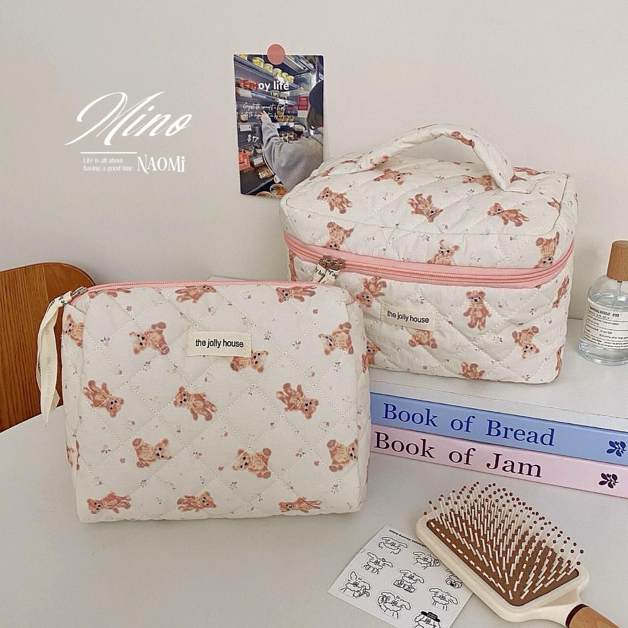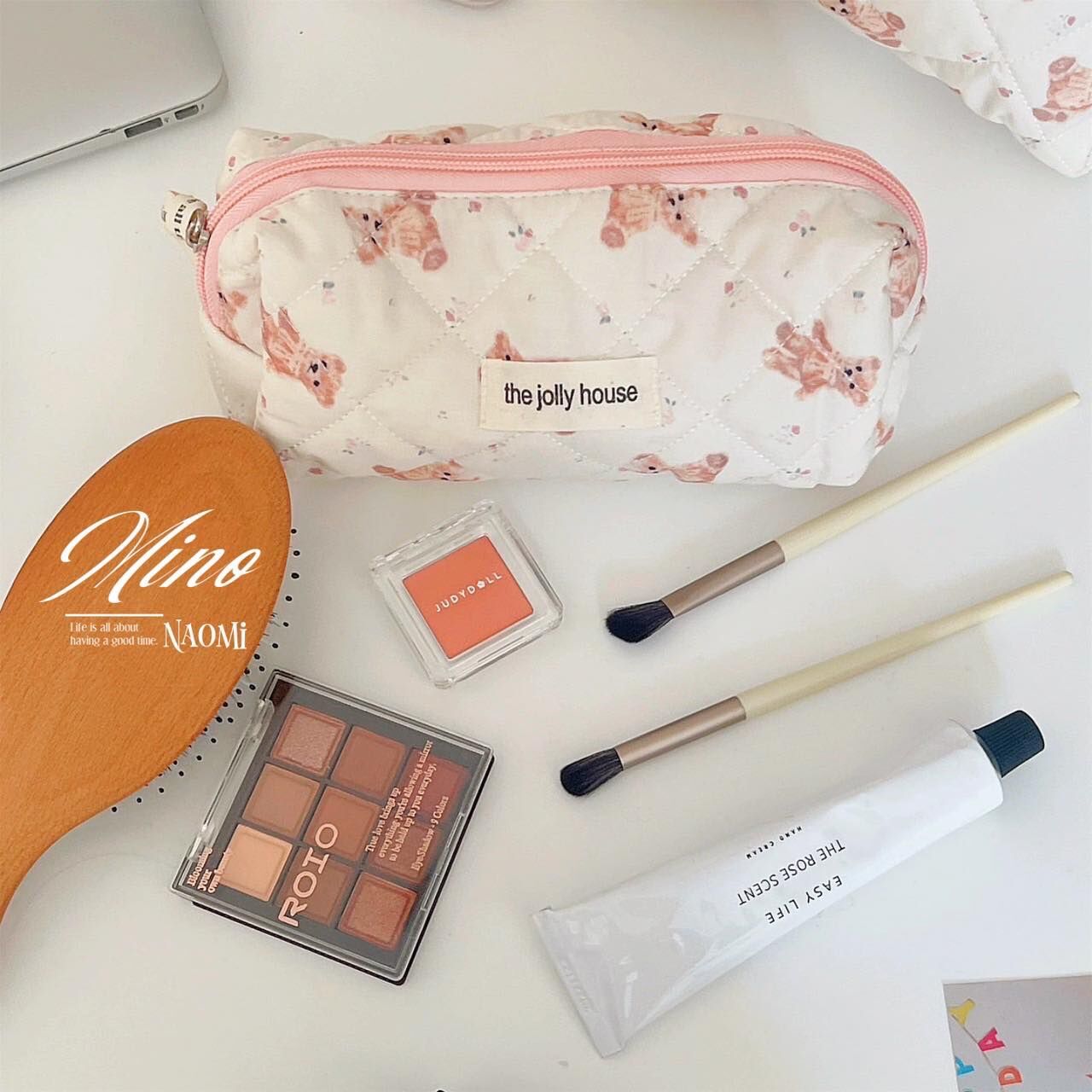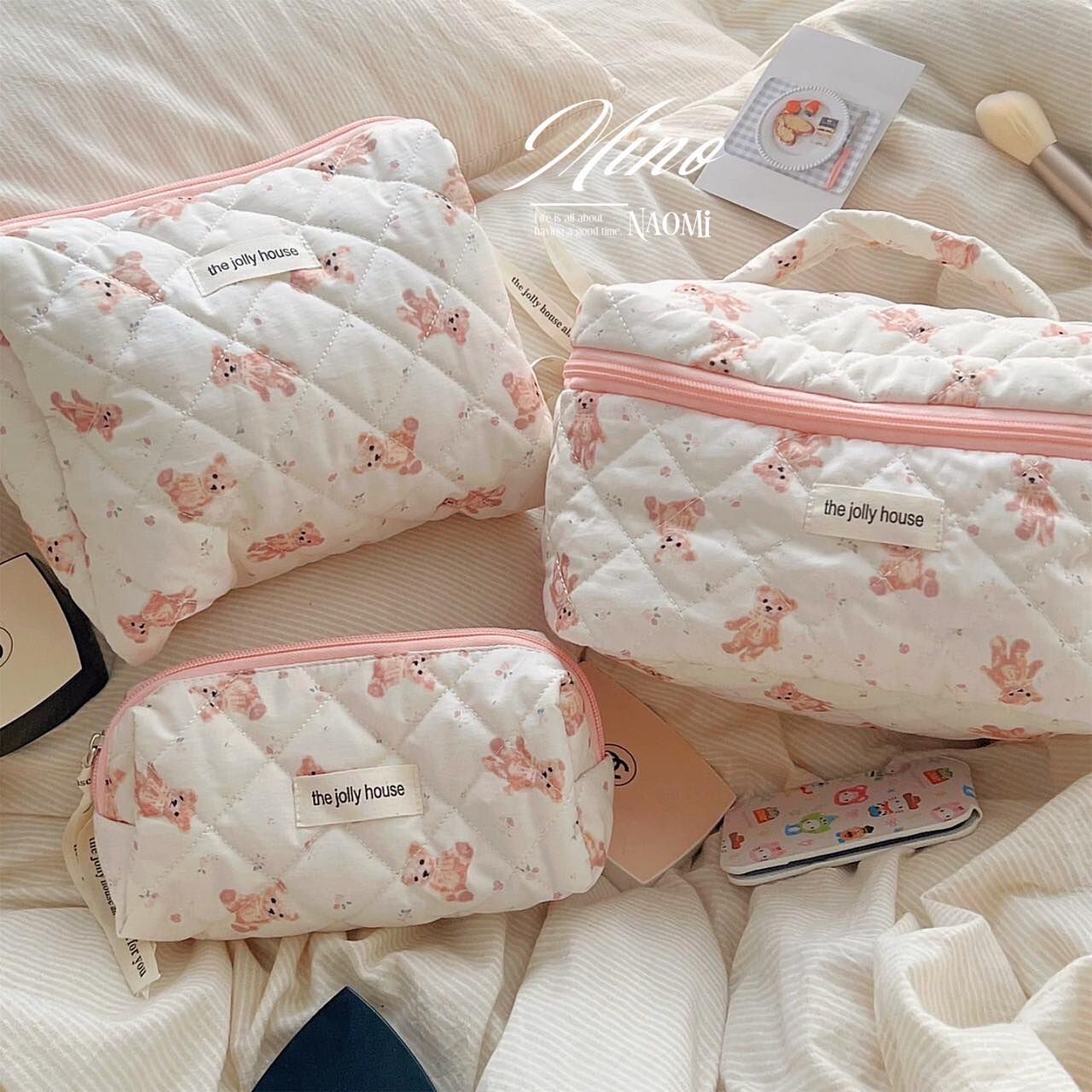 這款 粉色小熊化妝包 超萌來襲!可愛復古小熊設計搭配質感絎縫棉,手感柔軟,質感滿分。
