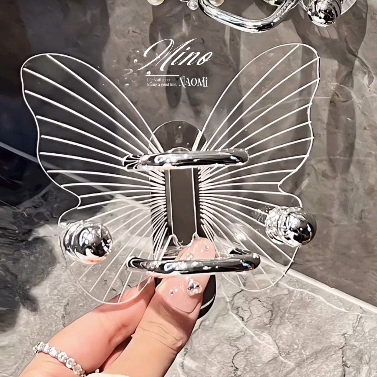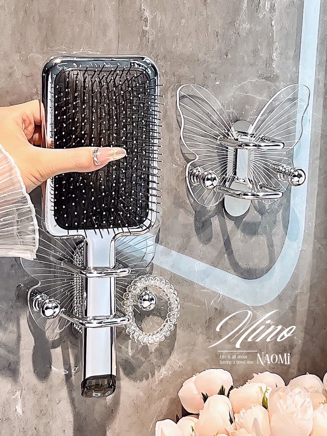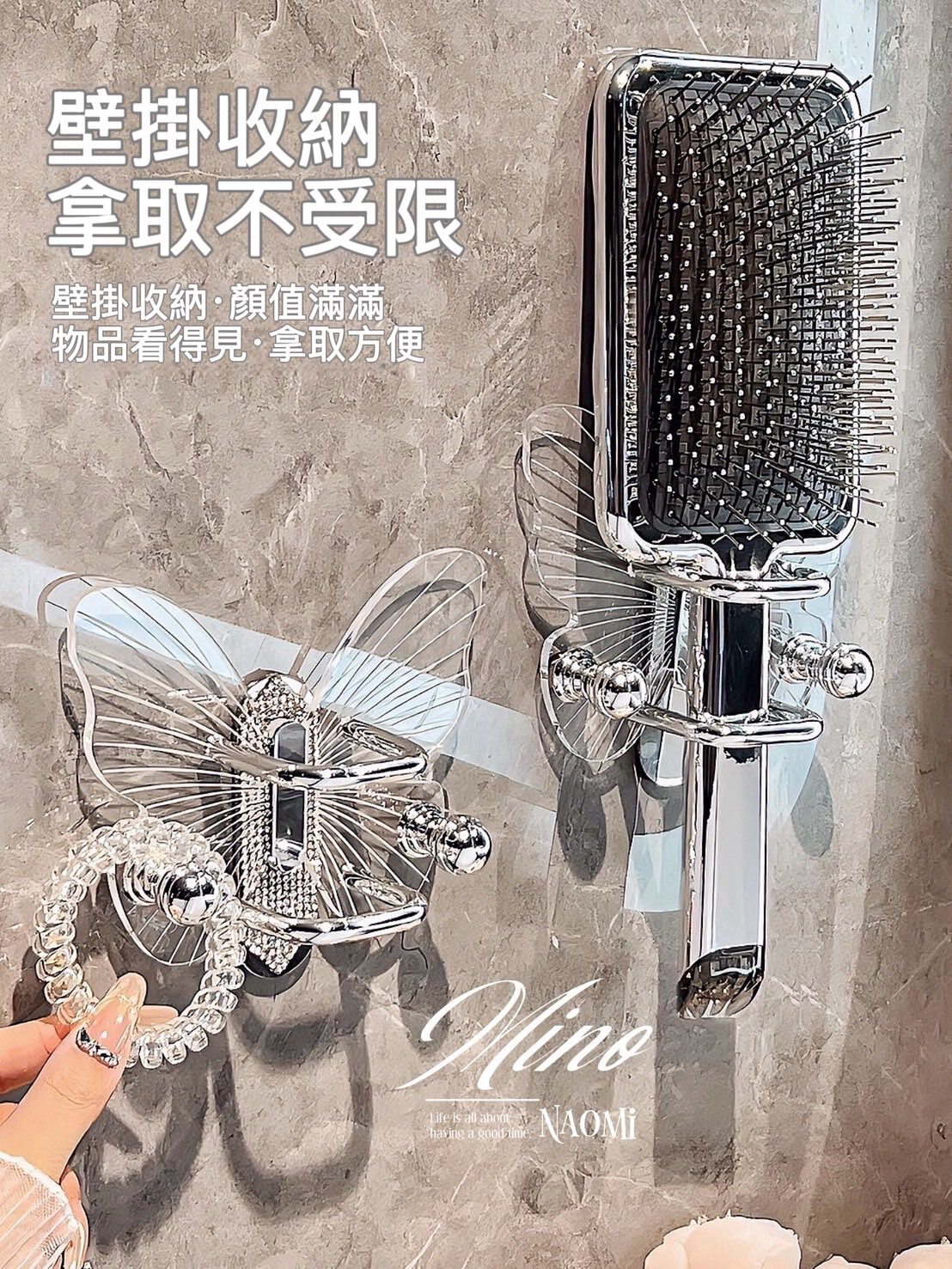 產品附贈免釘膠,亦可搭配自行準備的3M無痕膠替換使用 優雅蝴蝶翅膀造型,點亮浴室氛圍,增添精緻感。可掛梳子、發圈、髮箍、小物件,讓你每天洗漱時都心情超好