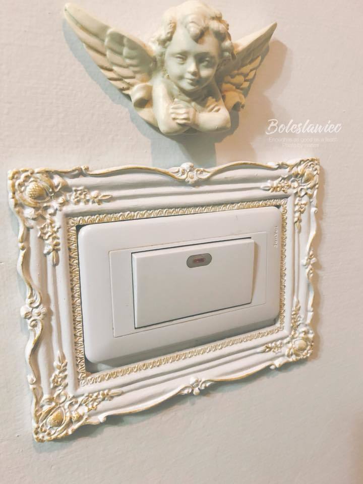 🌹歐式描金;純白電源開關貼,牆壁壁飾