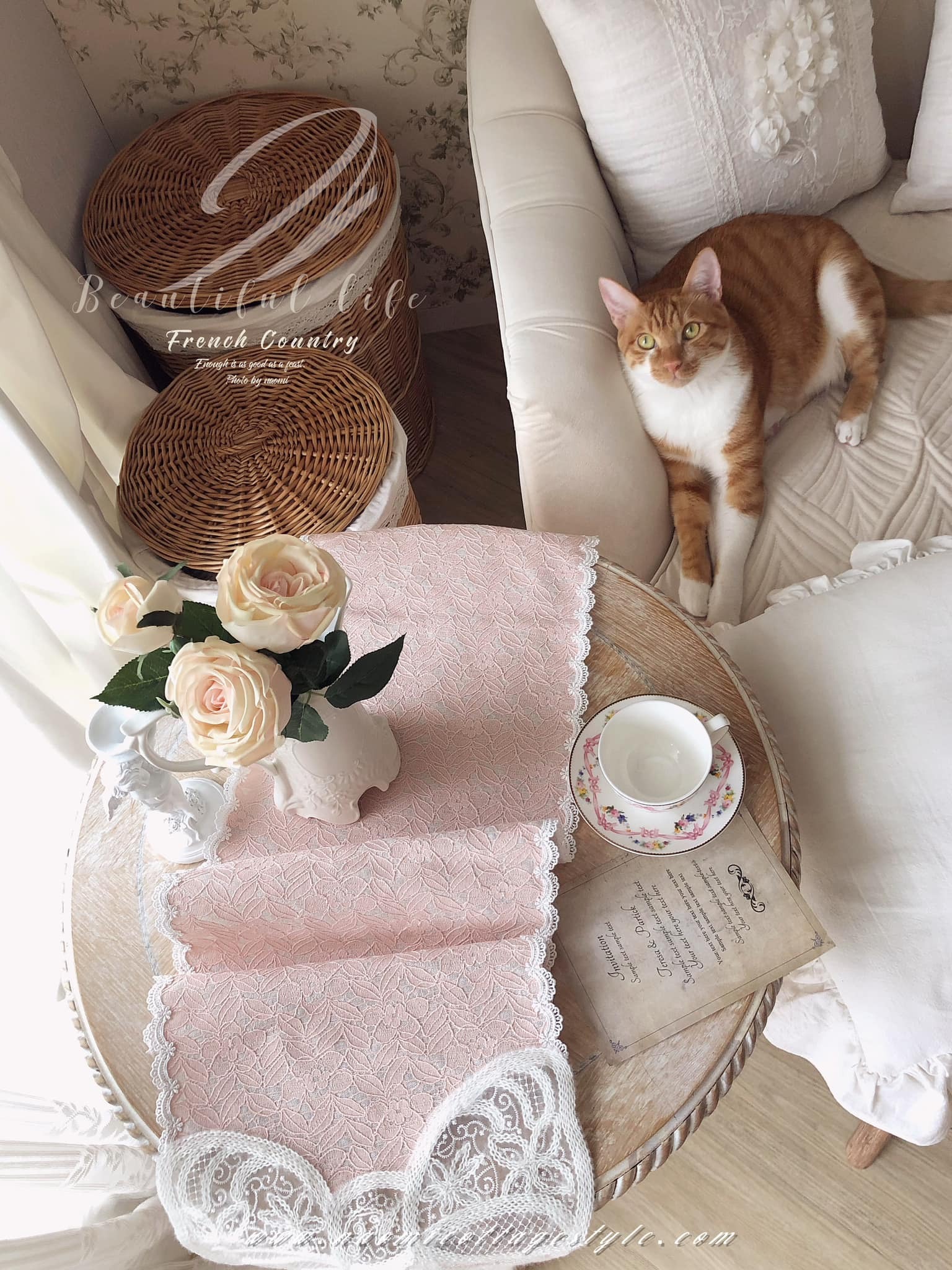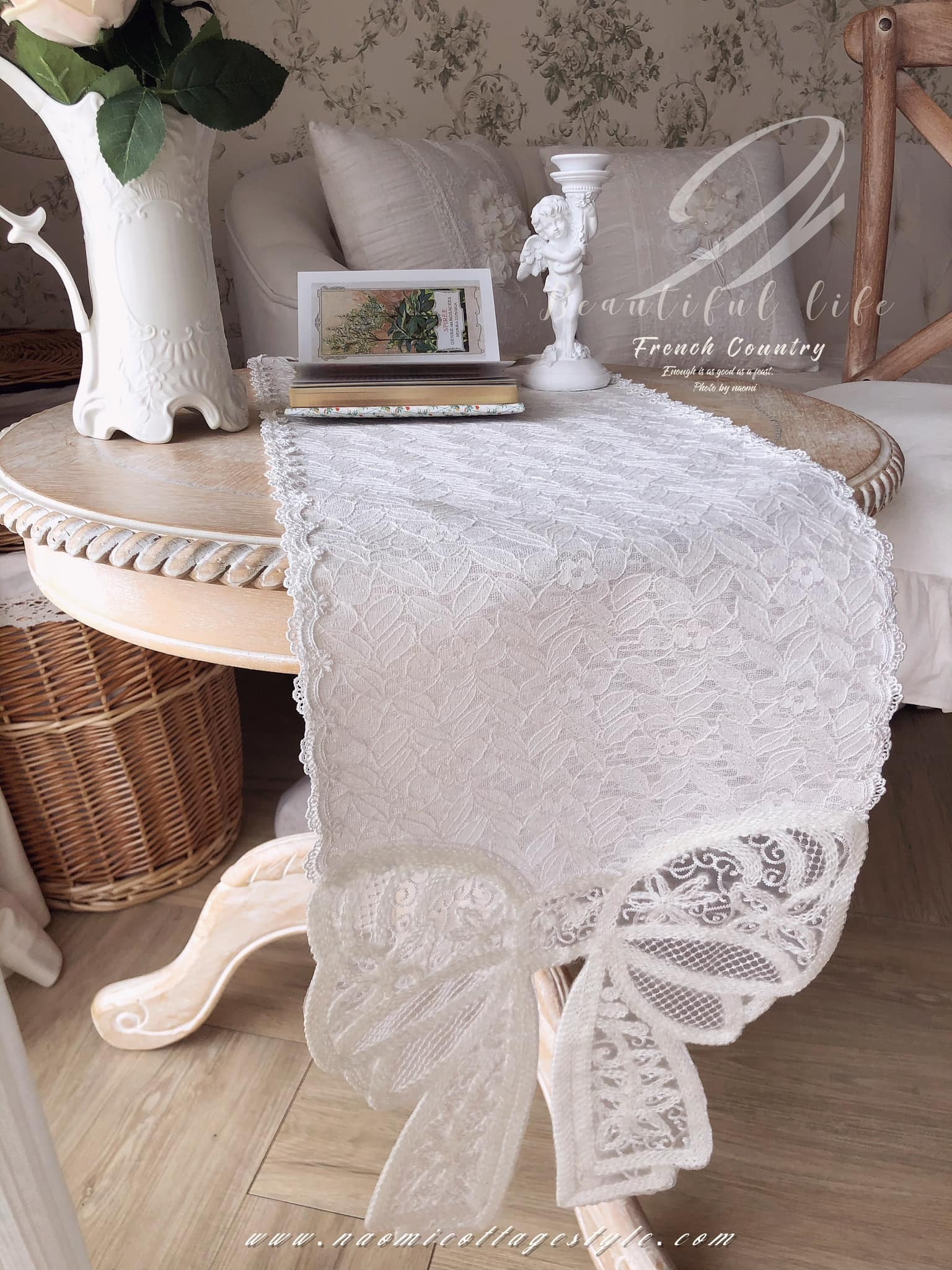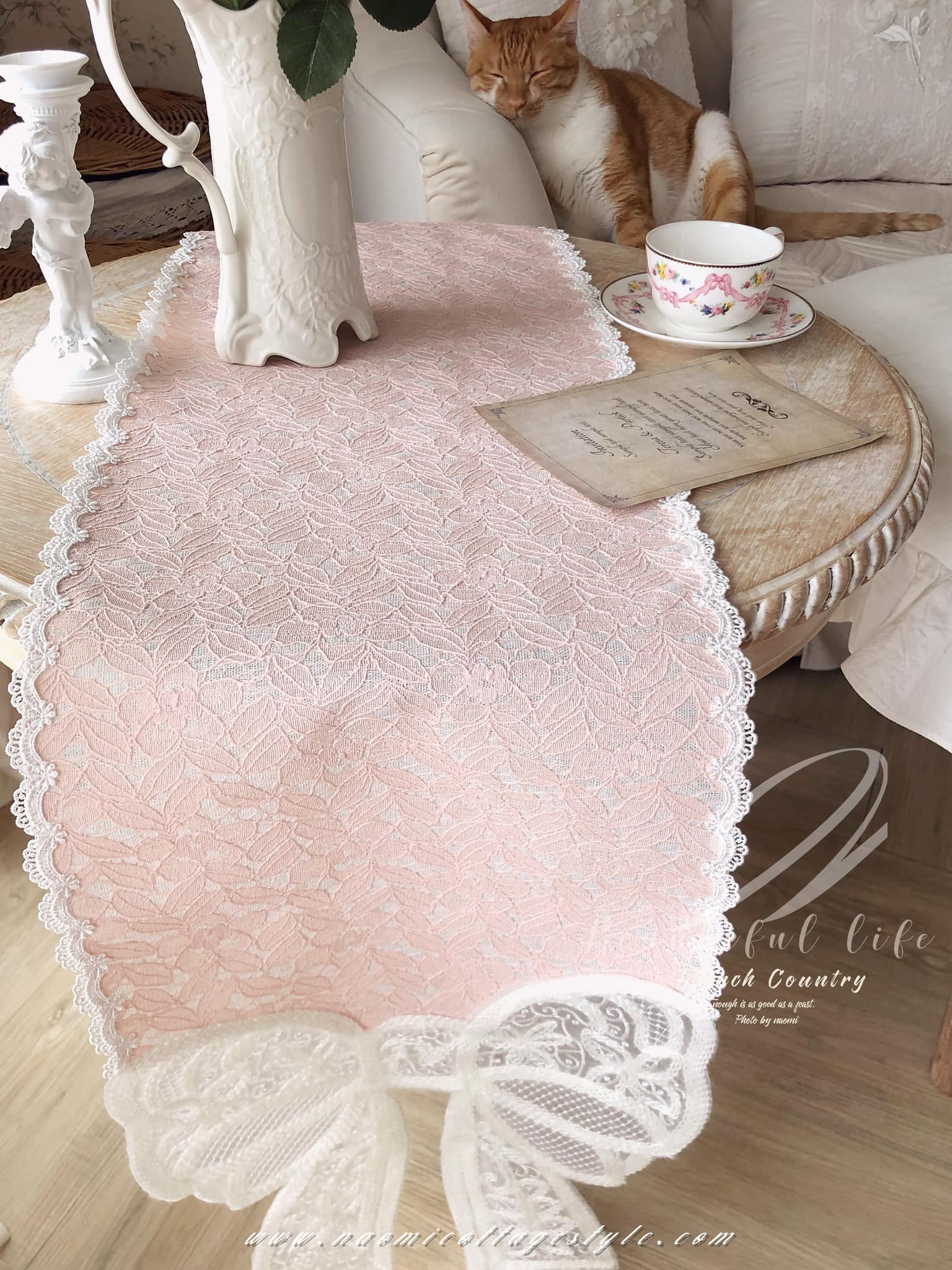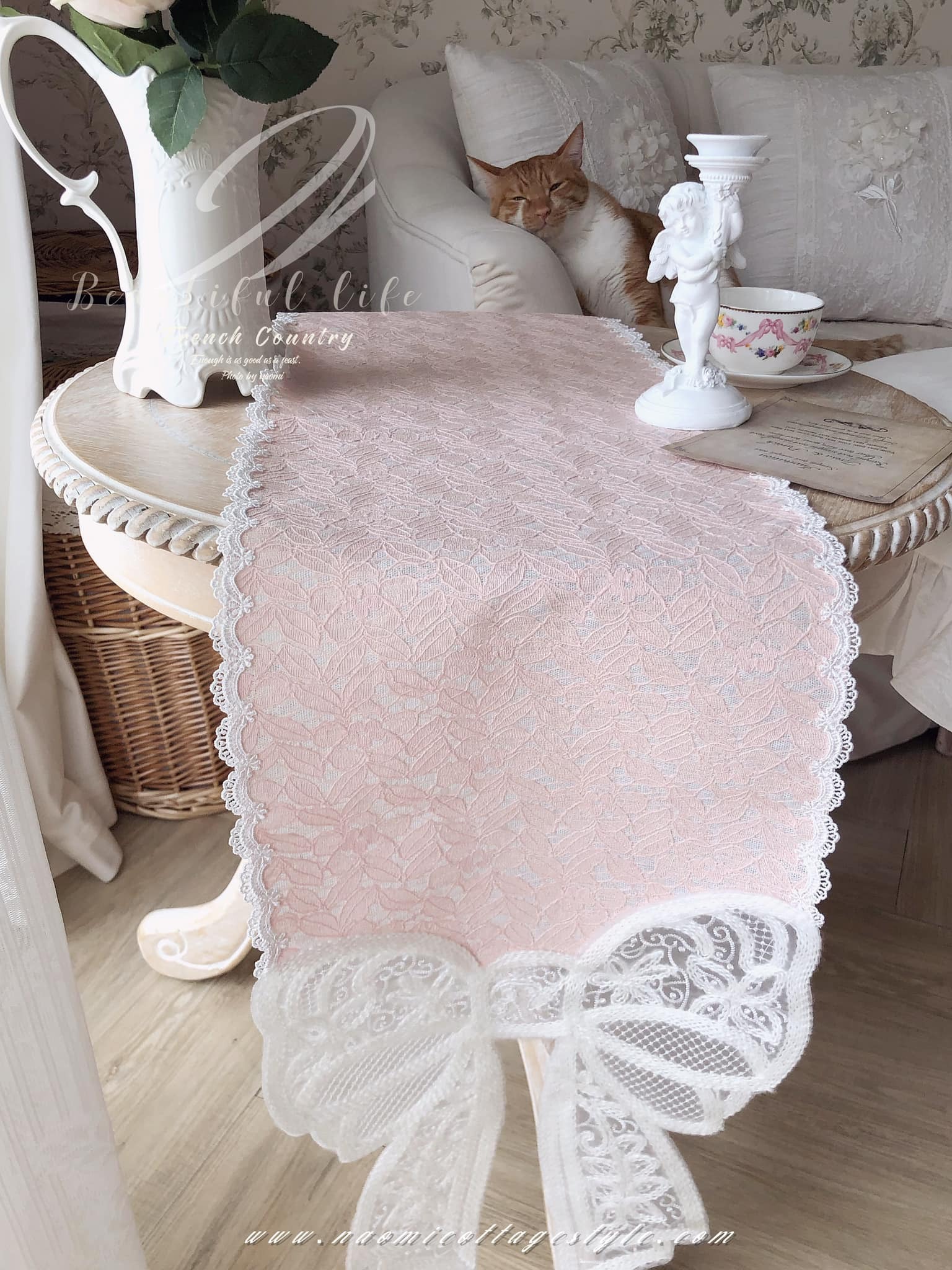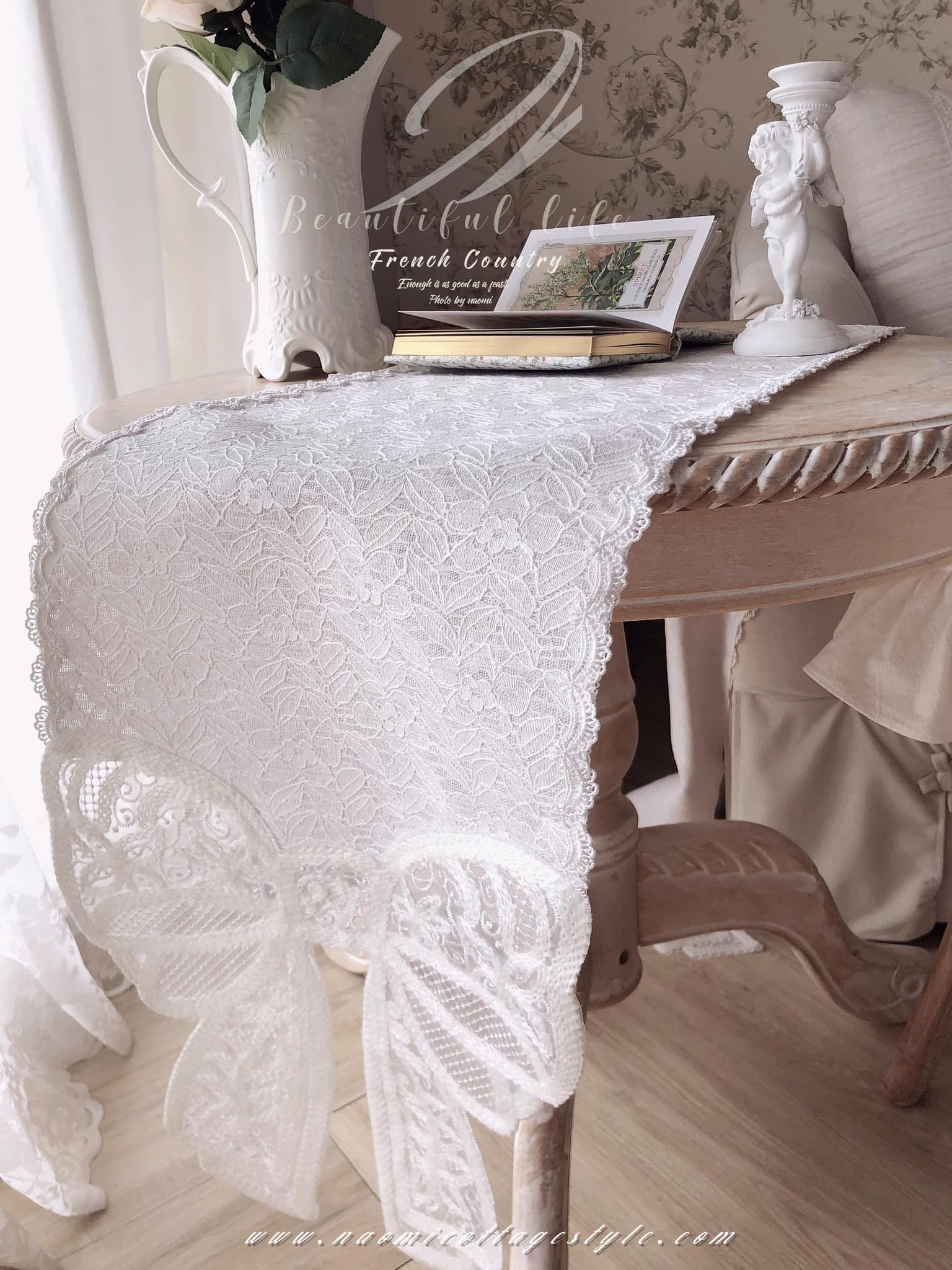 🎀法式浪漫系列大蝴蝶結蕾絲裝飾桌旗