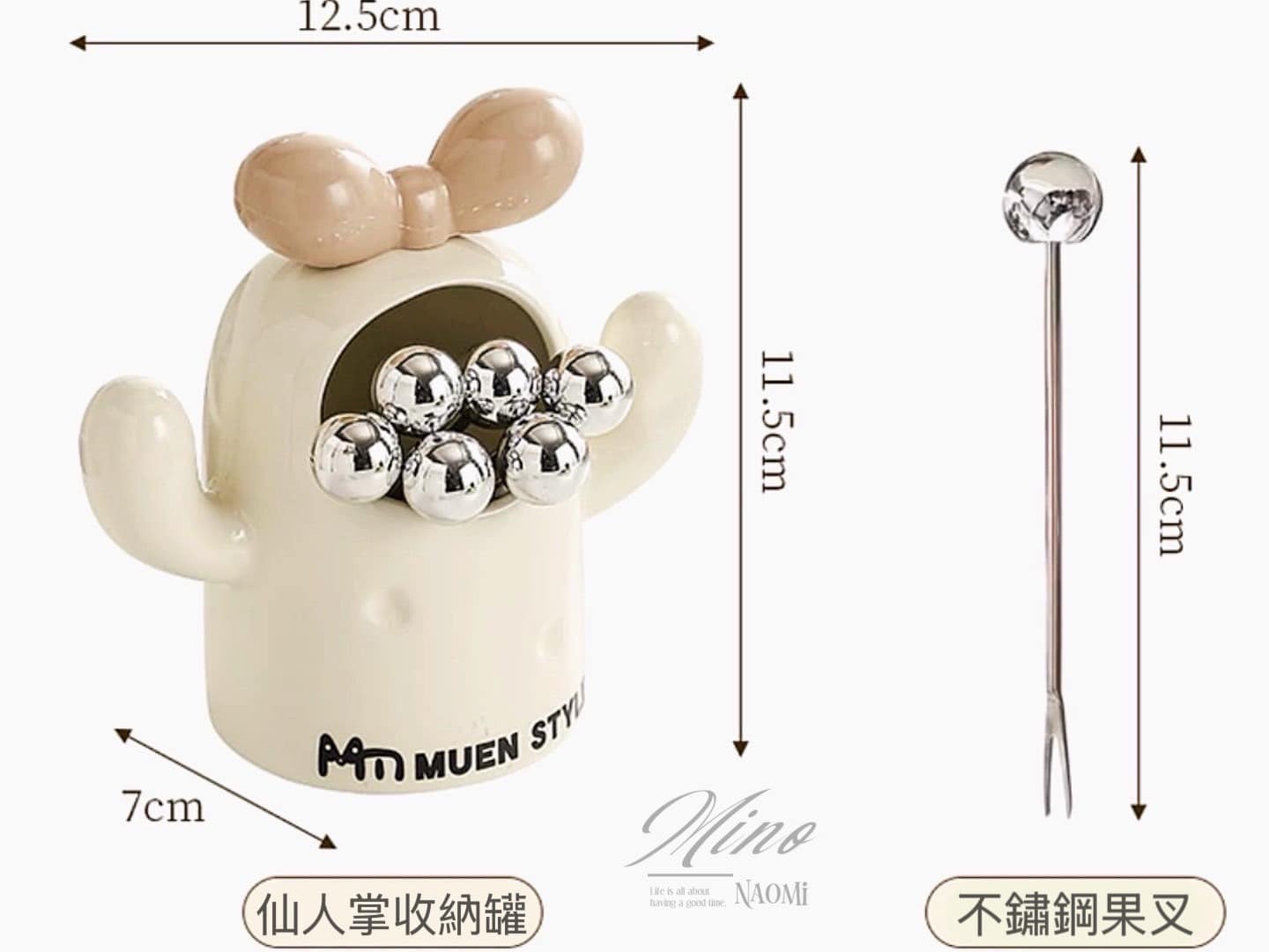 ✔ 尺寸:果叉長 11.5cm / 仙人掌收納罐 12.5cm x 7cm x 11.5cm
