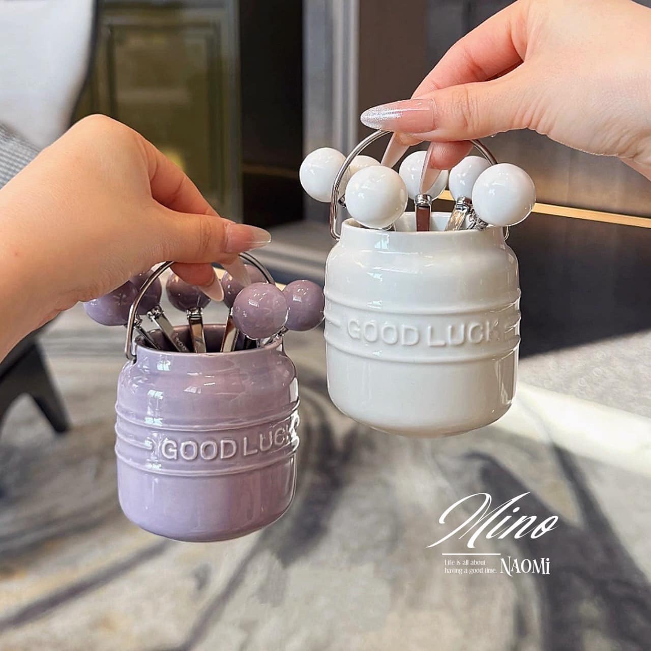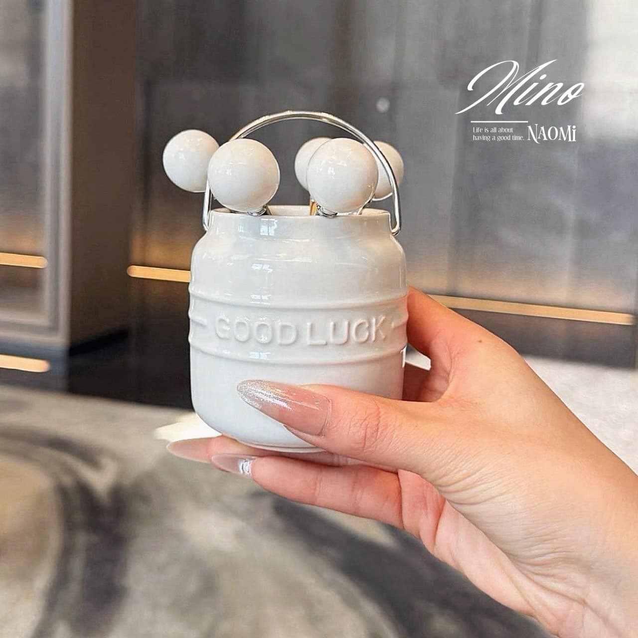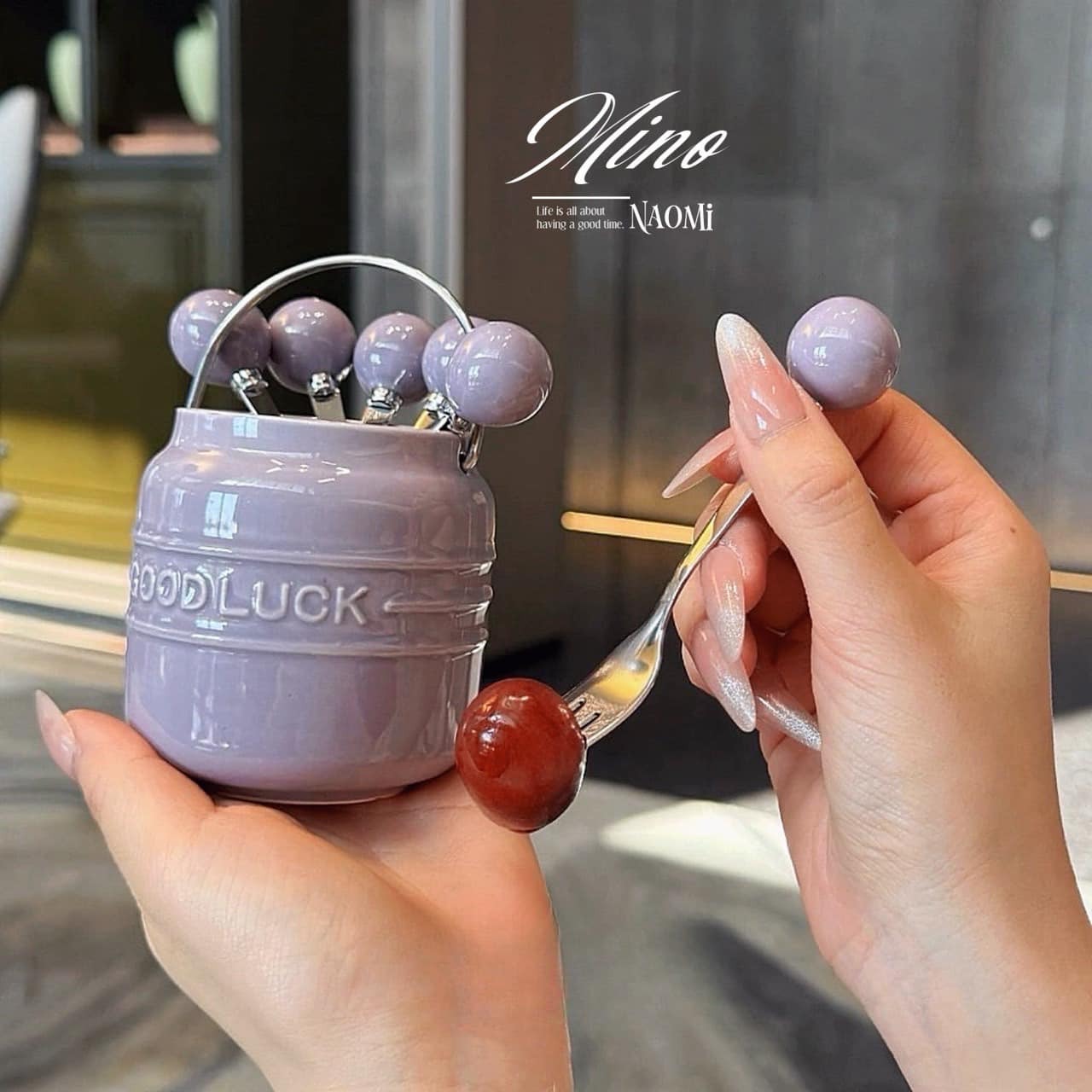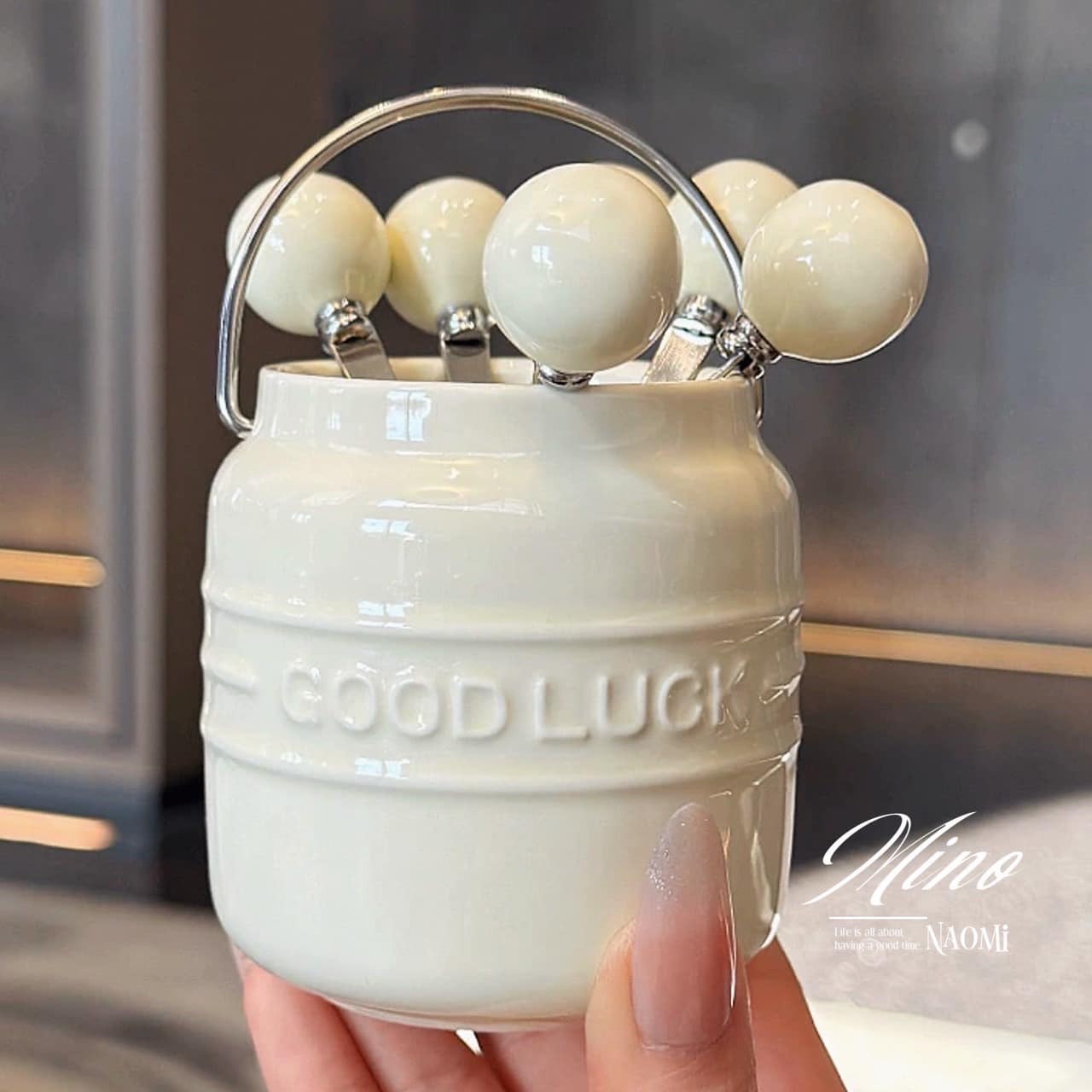 「GOOD LUCK」 字樣設計,寓意好運滿滿,搭配 圓球手柄 的水果叉,手感舒適,放在家裡、辦公桌、餐桌上都超有氛圍感✨