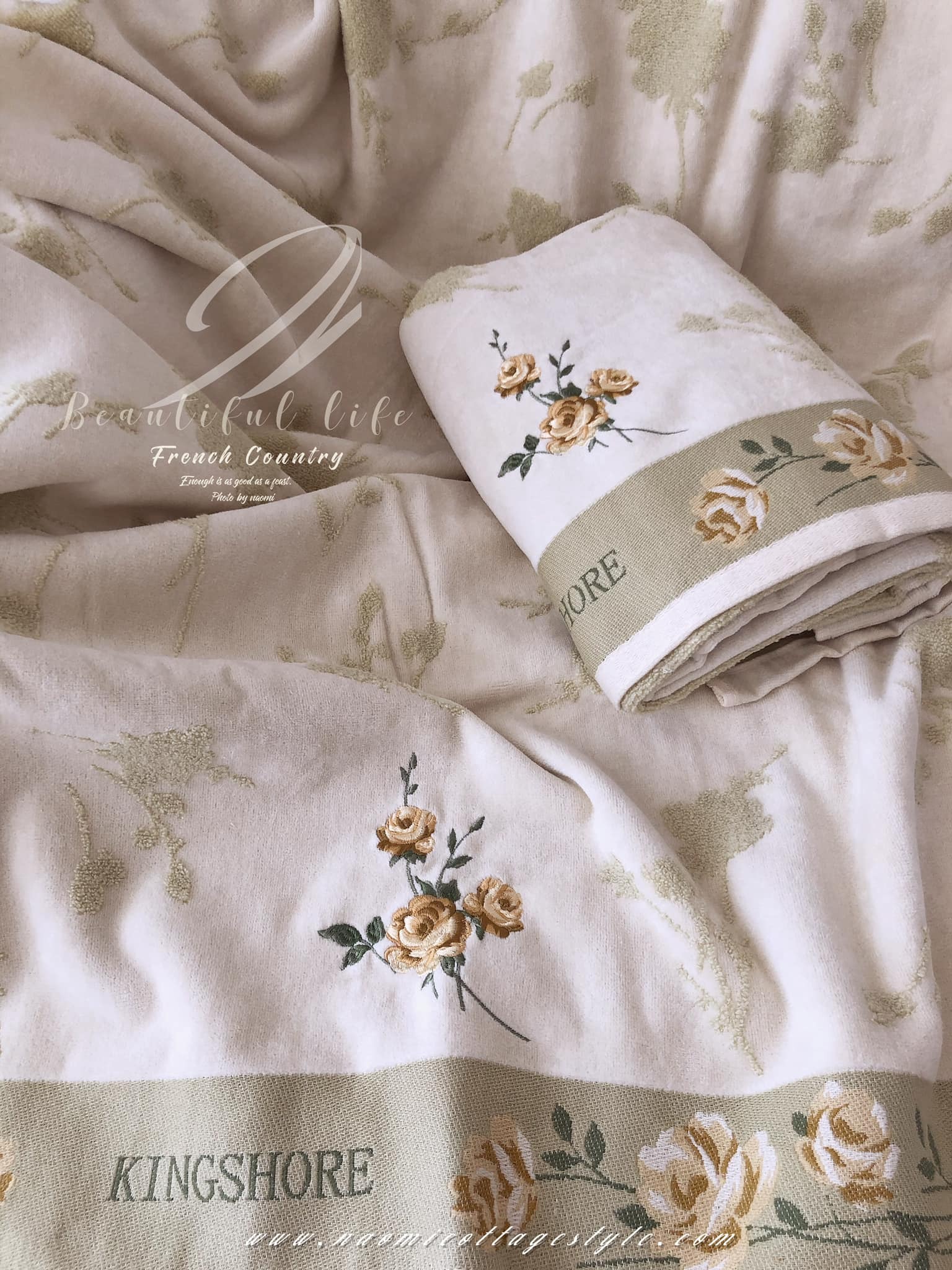 🔸復古黃玫瑰純棉加厚吸水浴巾